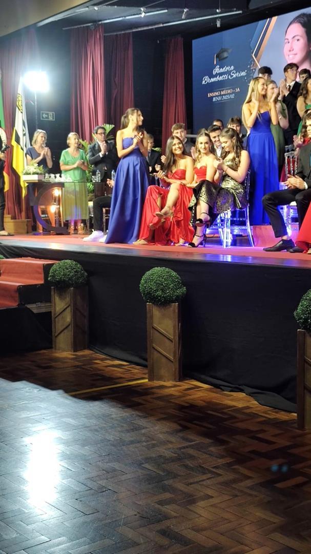 Durante a entrega dos diplomas, também foi realizada uma homenagem especial aos estudantes que fazem parte da IENH desde a Educação Infantil ou desde o 1º ano do Ensino Fundamental do Currículo Internacional Bilíngue, reconhecendo a longa trajetória construída dentro da Instituição. Um dos destaques da noite foi a menção à formanda Margherita Longhi, que veio da Itália para realizar intercâmbio na IENH e optou por estender sua permanência para concluir o Ensino Médio na escola.