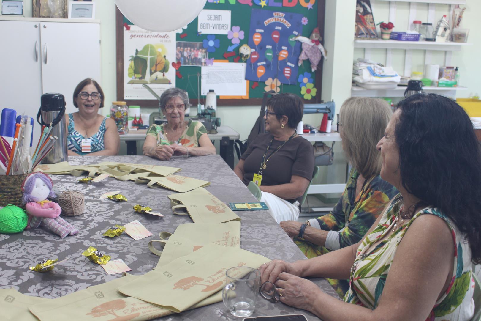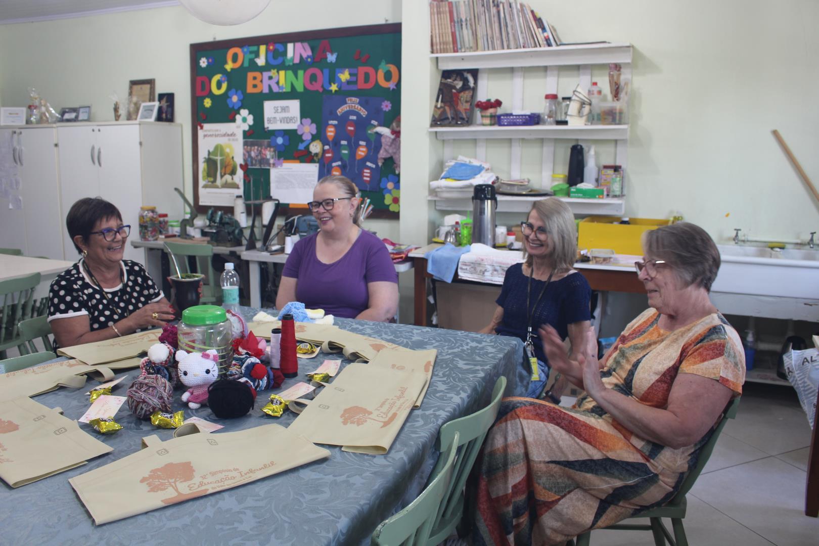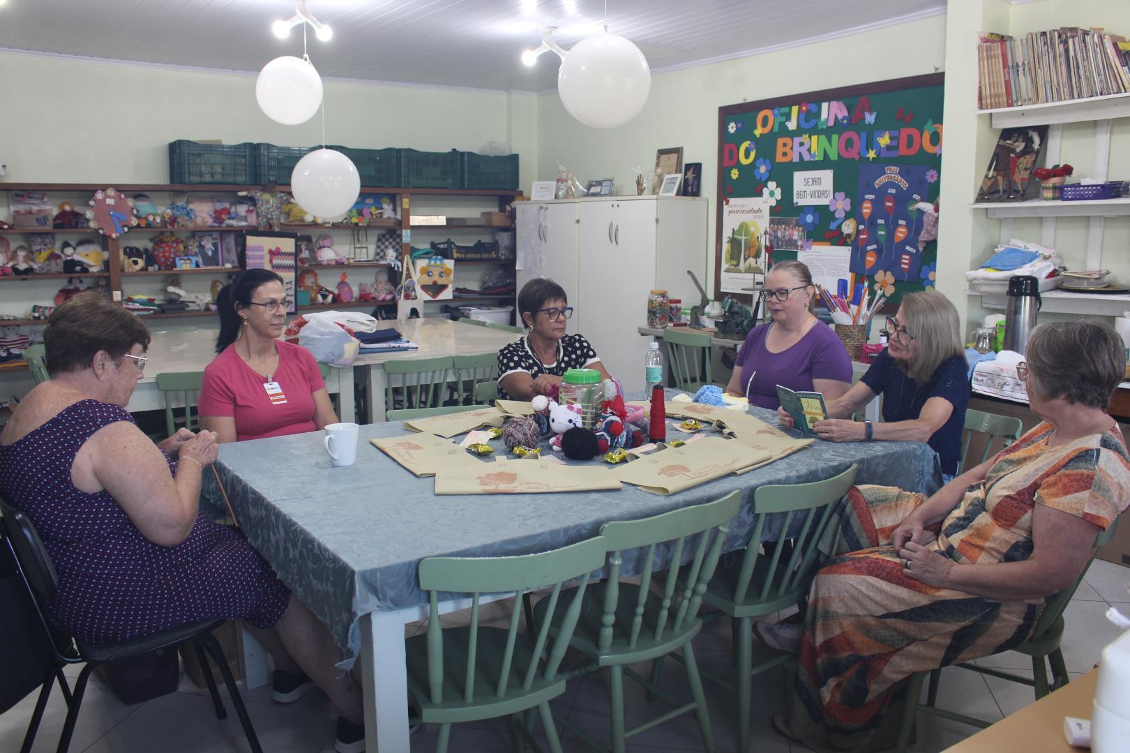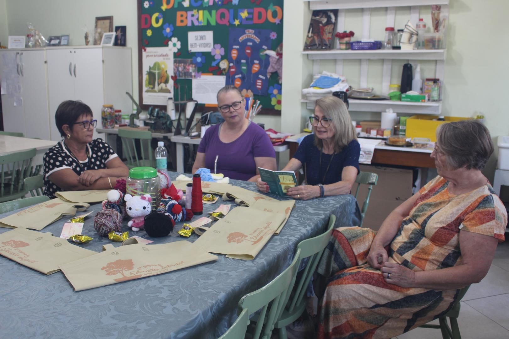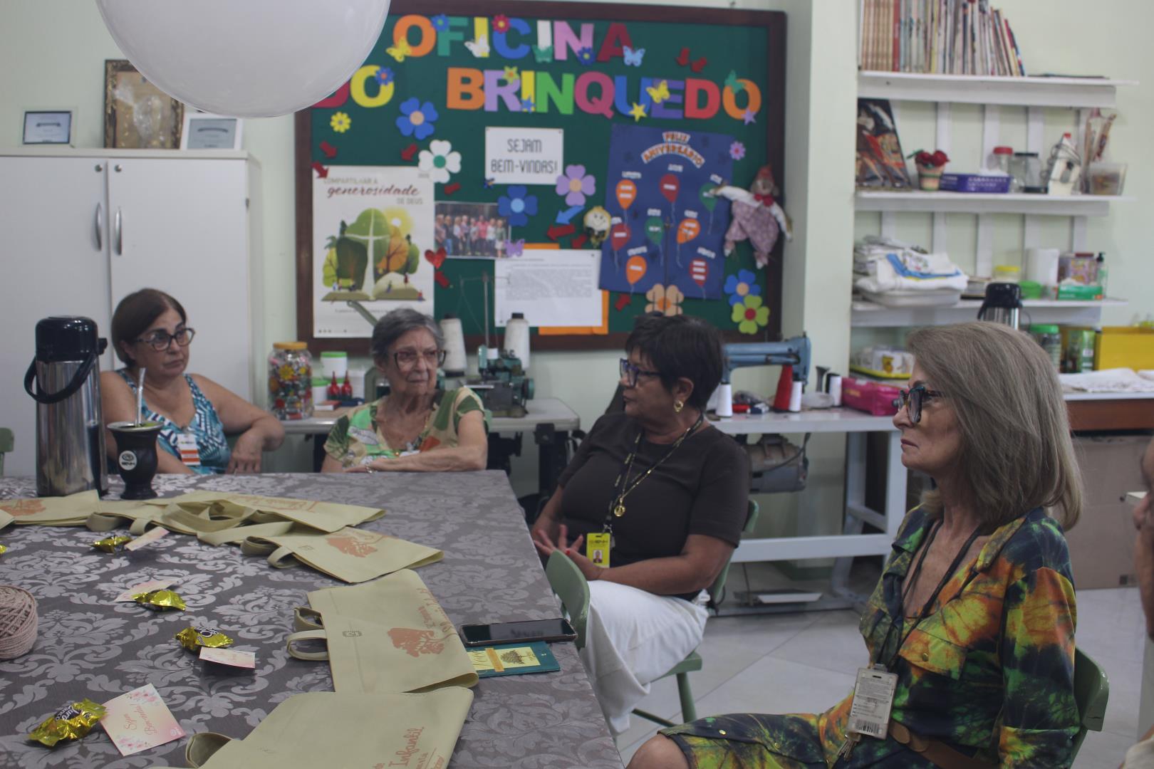 Já na Oficina do Brinquedo, as voluntárias conversaram sobre os brinquedos que serão confeccionados em 2026, organizando as próximas etapas do trabalho.