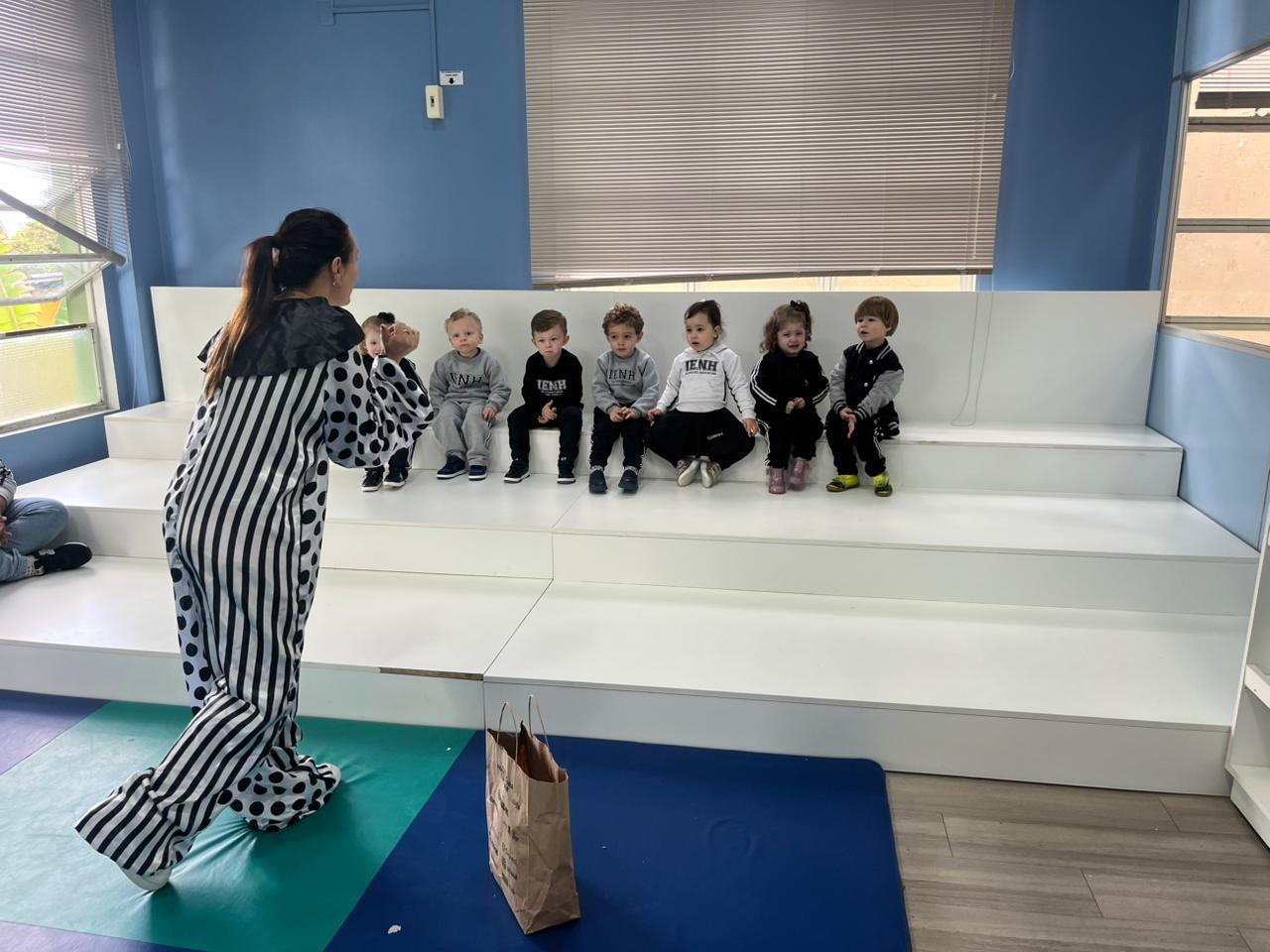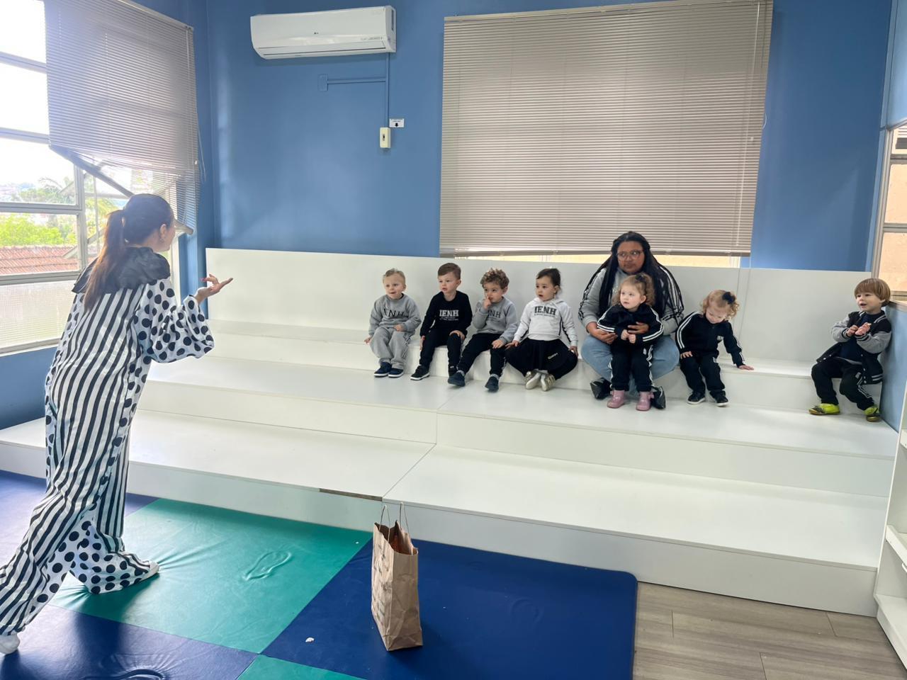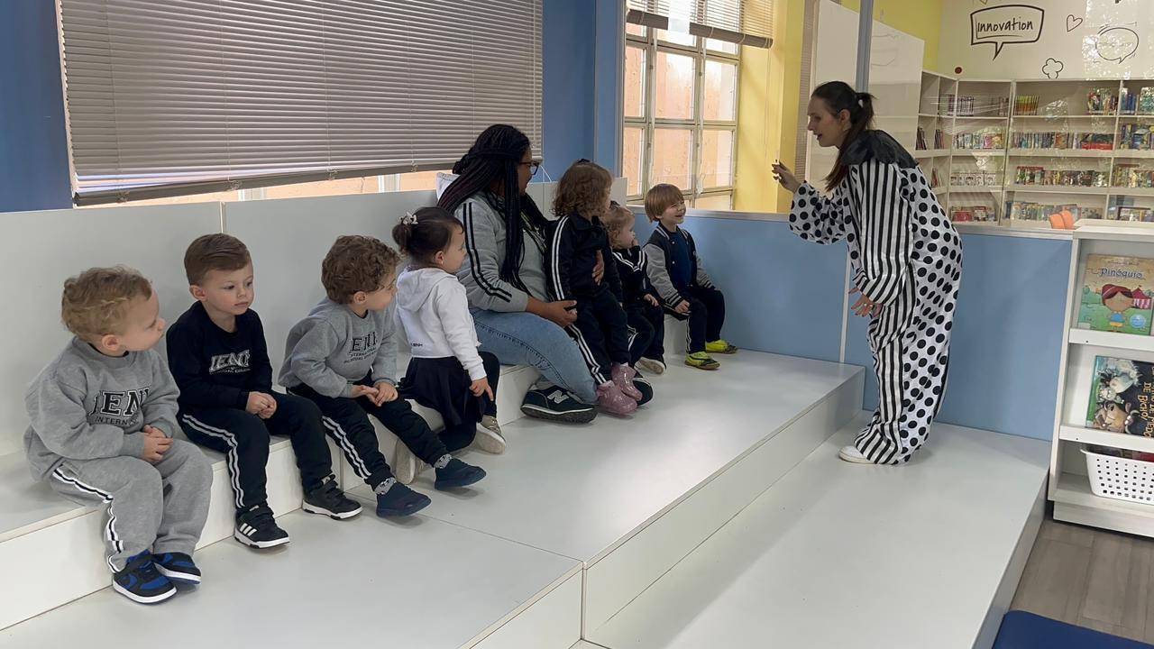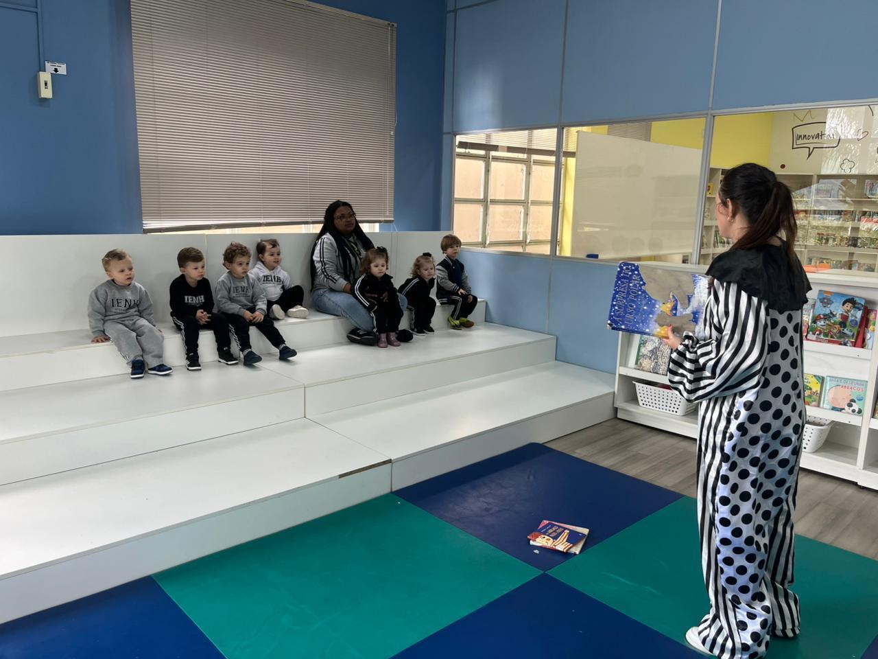 Caracterizada de palhaço, a Profe Amanda conquistou os pequenos leitores com muita alegria, expressão corporal e criatividade, transformando a contação em um momento único. A iniciativa estimulou o interesse pela literatura infantil, despertou a imaginação e favoreceu a participação ativa dos alunos.