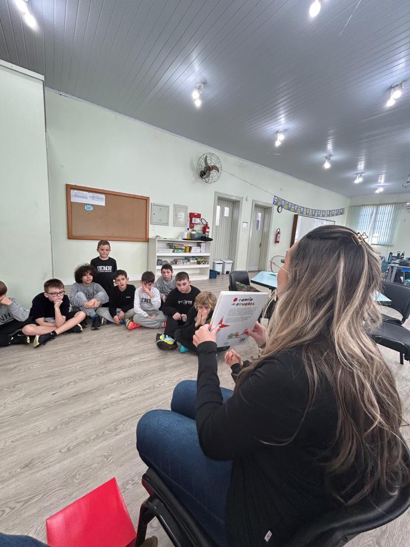 Durante a leitura, os estudantes acompanharam atentos e curiosos as descobertas da personagem, reagindo com empatia e identificação. Em seguida, participaram de rodas de conversa e atividades práticas, utilizando recursos lúdicos como novelos de lã, desenhos e dinâmicas em grupo. O objetivo foi reconhecer e expressar emoções pessoais, além de compreender como cada uma delas exerce um papel importante na vida.