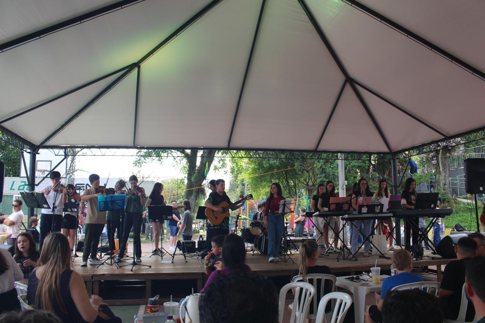 Ao longo do dia, o público aproveitou a variedade de comidas e bebidas disponíveis para venda, como trufas, docinhos, picolés, salsipão, batata rústica, pizzas, pastéis e bebidas em geral. As crianças se divertiram muito com as várias opções de brinquedos infláveis, pintura de rosto e espaços de recreação. Além disso, a trilha sonora do evento ficou por conta do Conjunto Instrumental da IENH, que embalou a tarde com muita música, a partir das 15h.