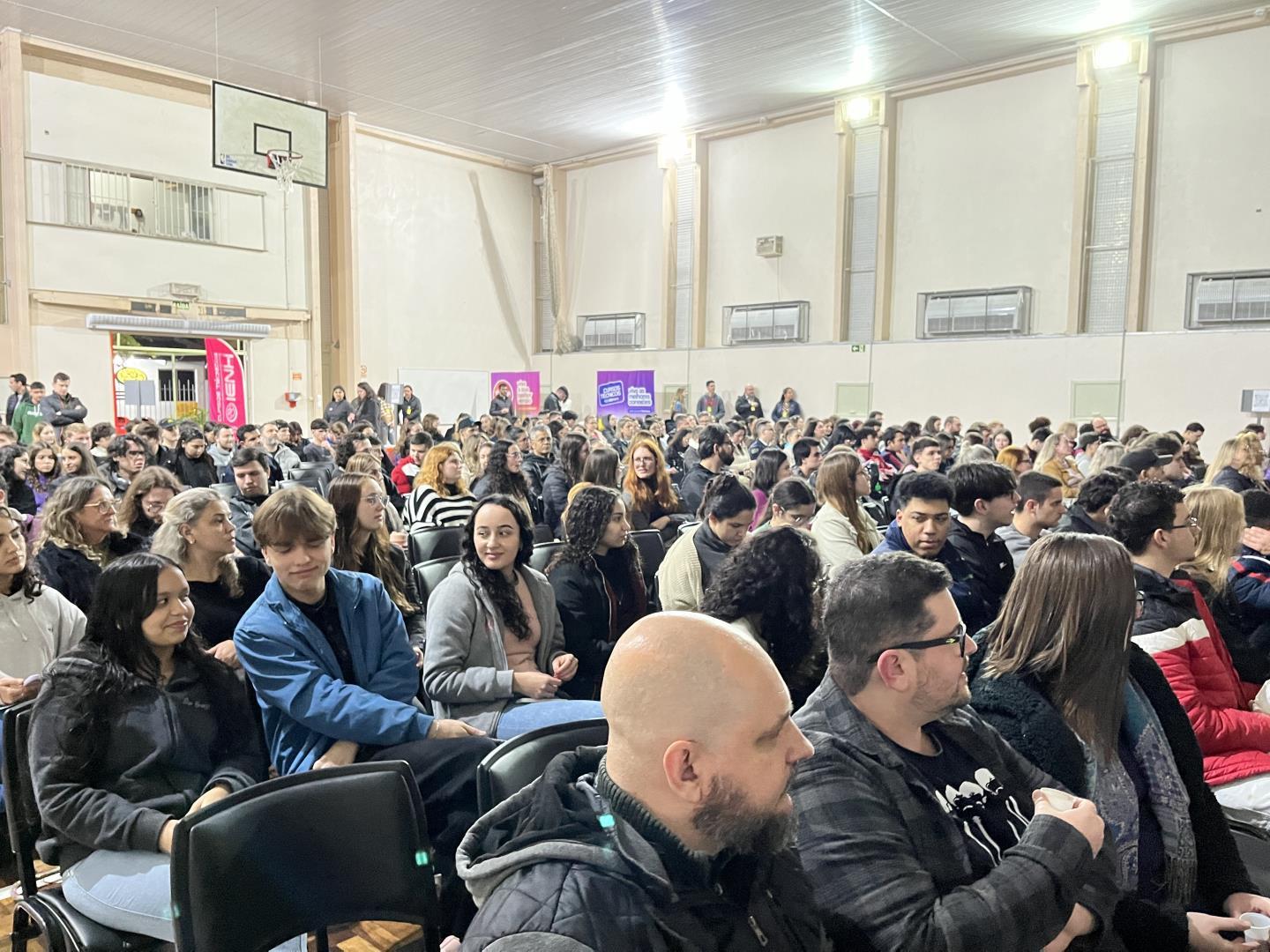 A programação contou com apresentação do programa “Estamos JUNTOS” de saúde mental, lançamento da Jornada de Inovação e inscrições para o Ideathon “Projeto Vamos Juntos”. Um painel com especialistas abordou temas como tecnologia e sustentabilidade, além de sorteios, pipoca e muita música para celebrar o início do semestre.