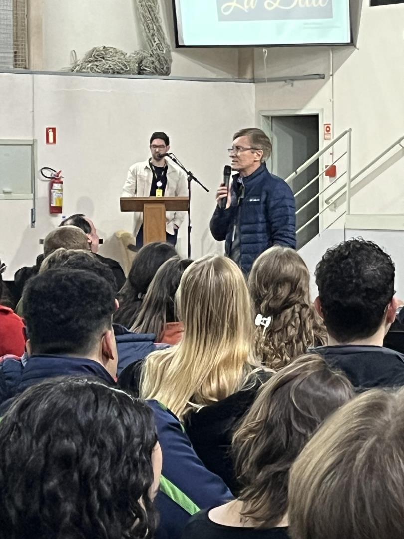 Organizado pelo Diretório Acadêmico Gestão 2024, com apoio dos padrinhos Angelita Leite e Gian Jantsch, o evento reuniu direção, coordenação, professores, funcionários e estudantes em um momento de acolhimento e boas-vindas. O diretor geral da IENH, Sr. Seno Leonhardt, também deu as boas-vindas oficiais à comunidade acadêmica.