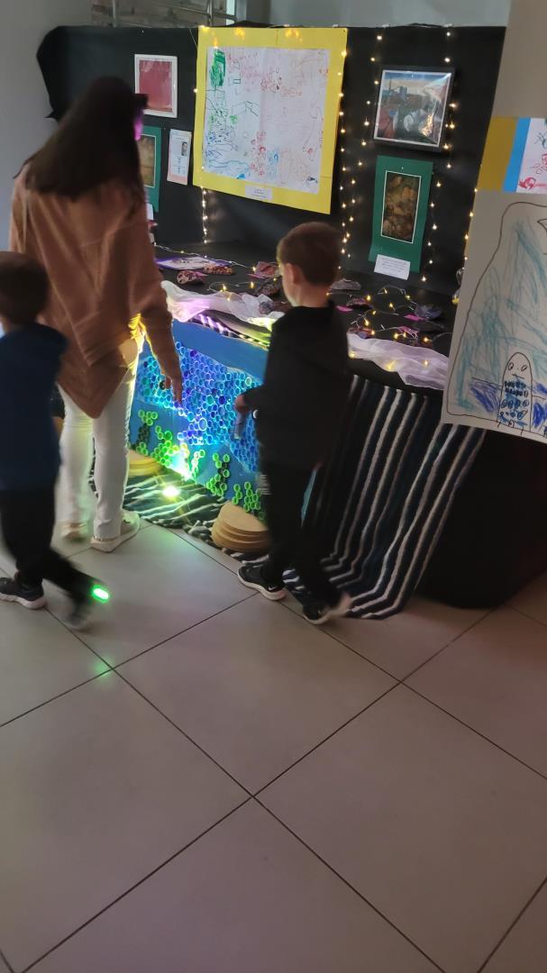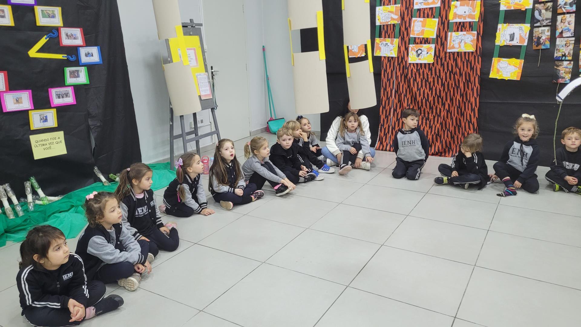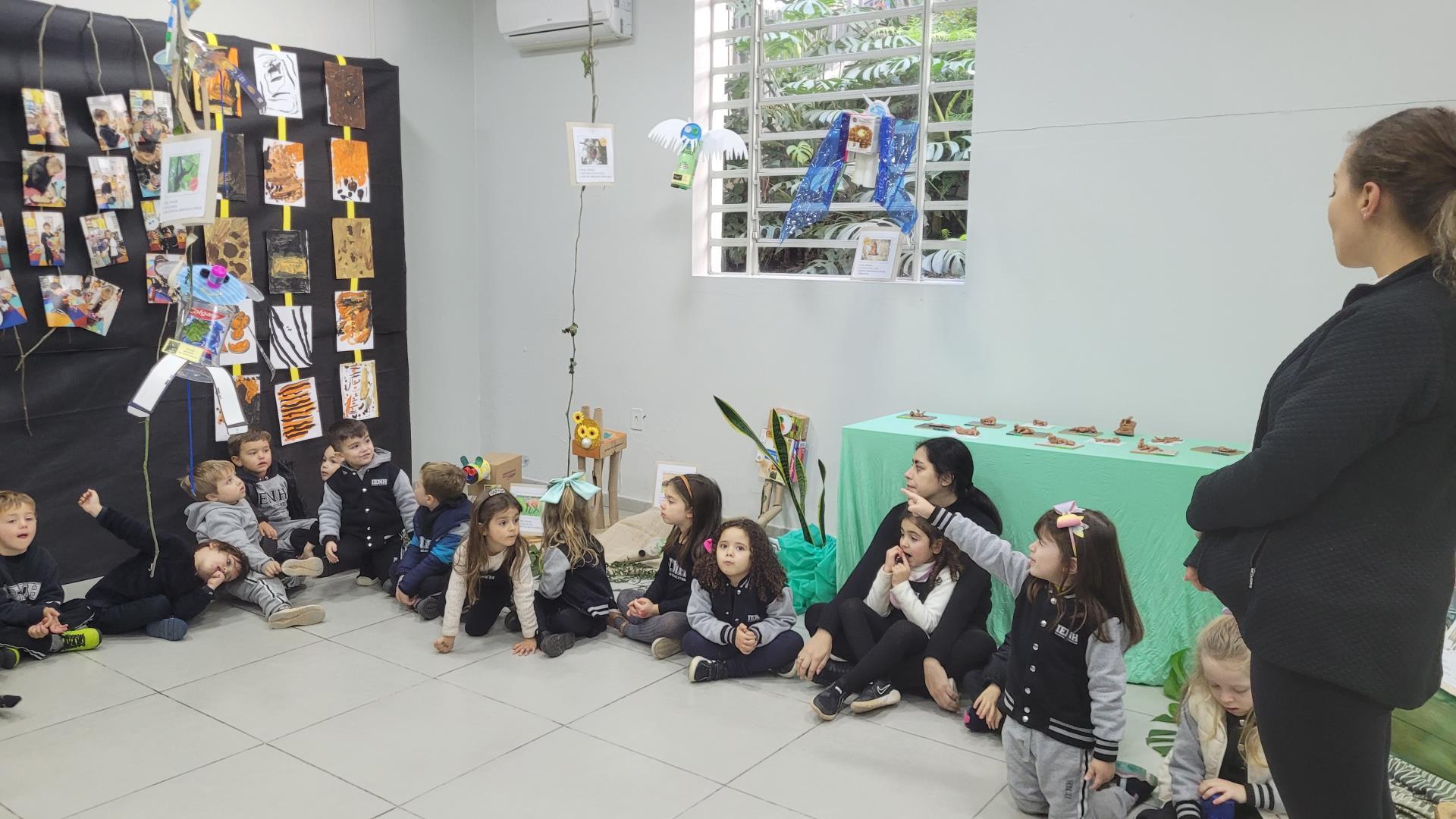 No sábado letivo, dia 5 de julho, as famílias puderam visitar a instalação, apreciar as produções das crianças e participar desse momento de conexão com o processo de aprendizagem. As turmas também se reuniram para trocar impressões e experiências exploradas durante a exposição, consolidando o aprendizado coletivo.