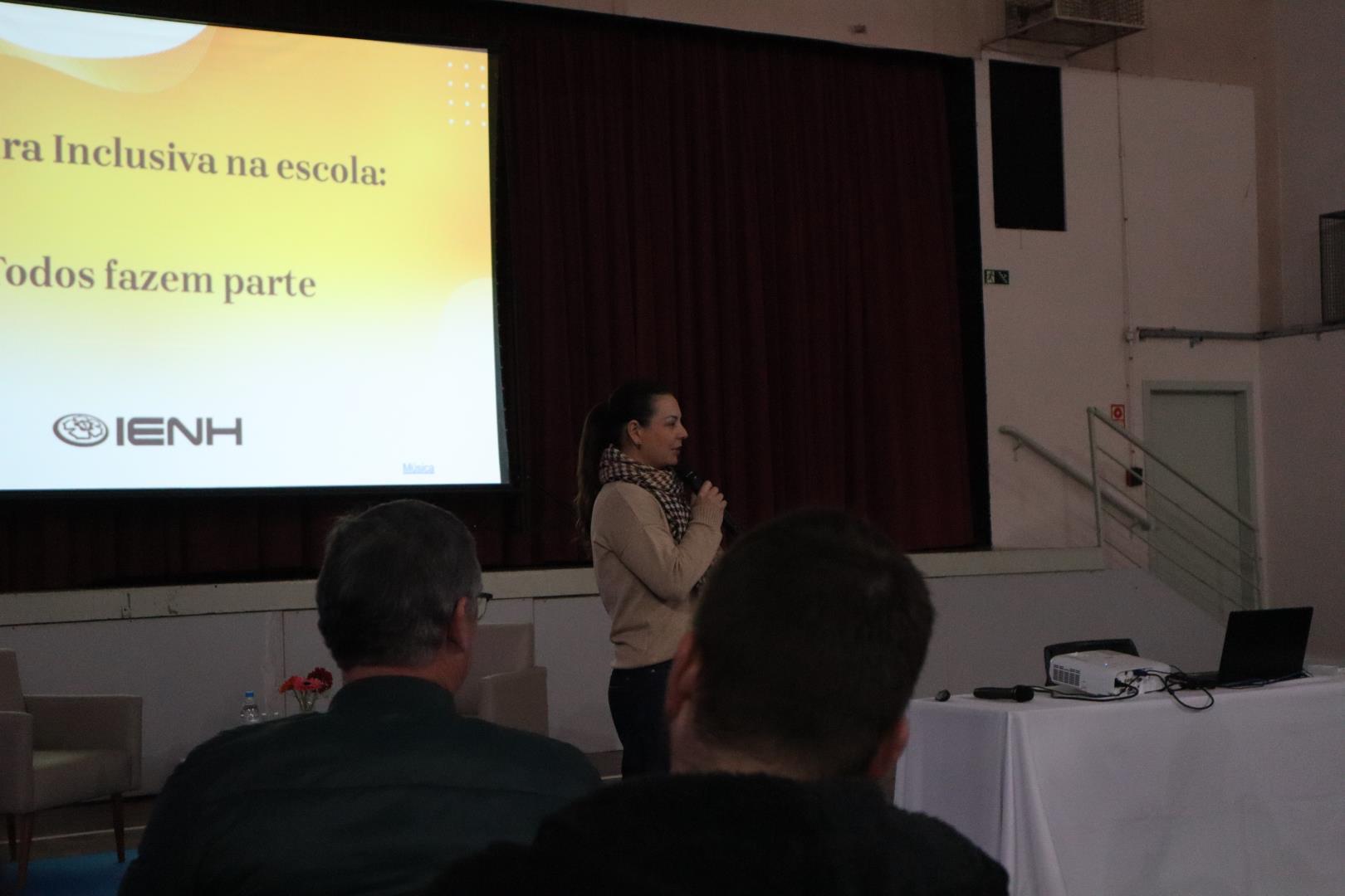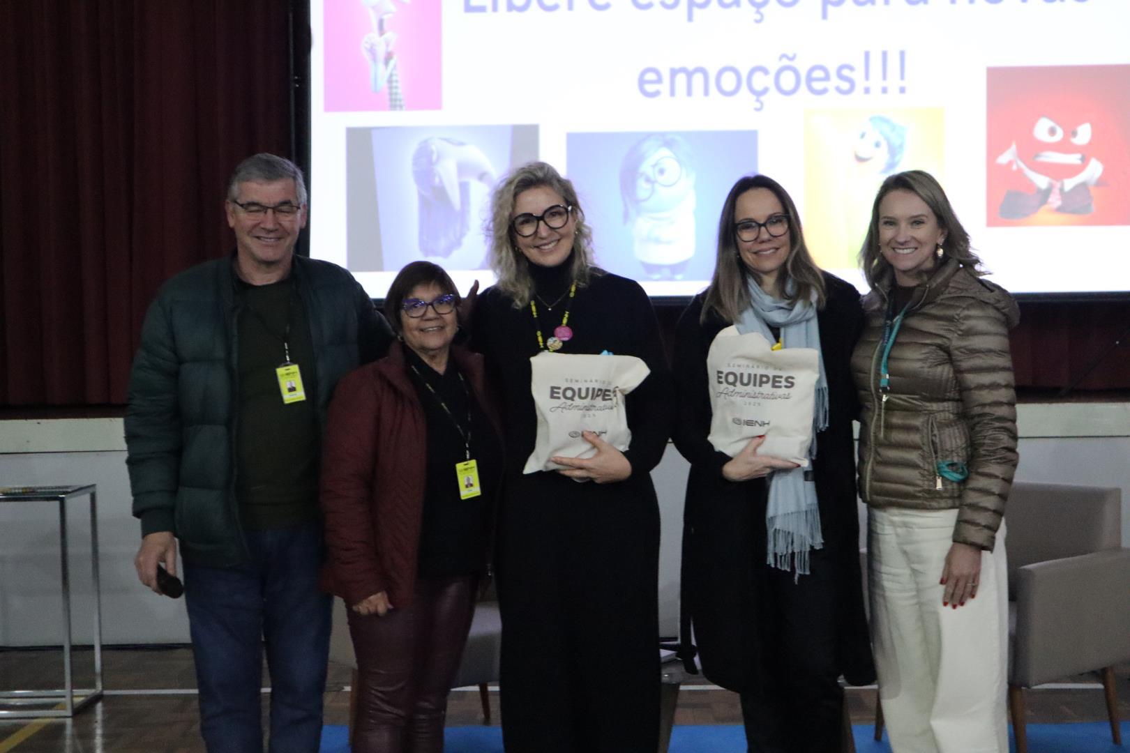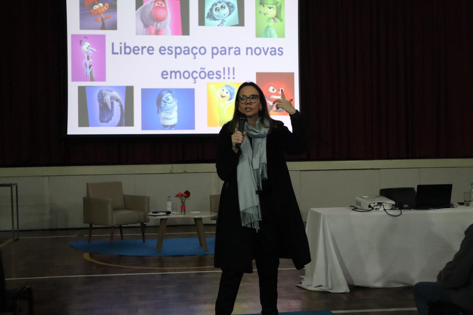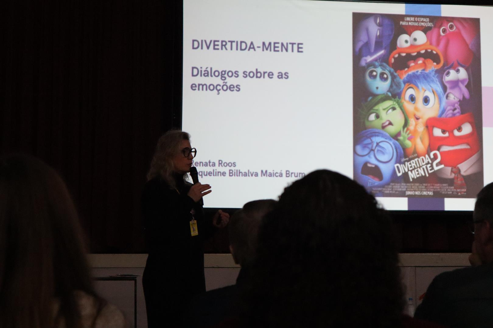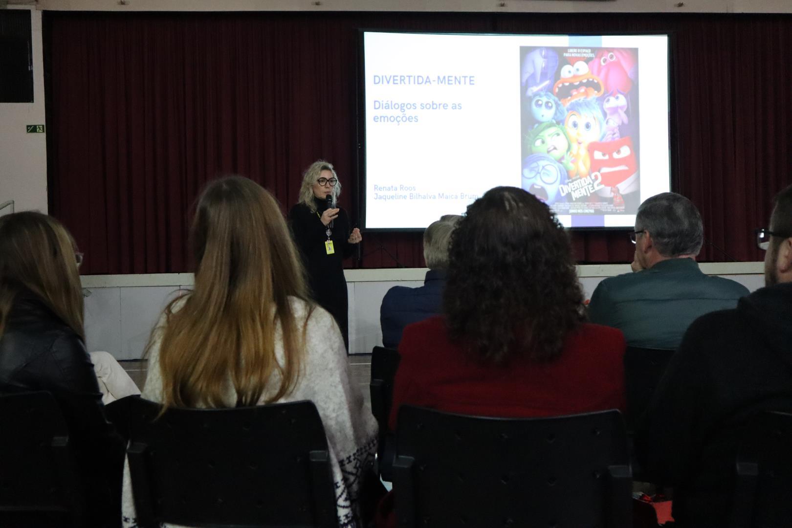 A programação iniciou com recepção e café da manhã, seguida das boas-vindas da Equipe Diretiva e um momento de reflexão. Em seguida, os participantes assistiram ao filme “Divertidamente 2”, que serviu de base para um diálogo profundo sobre as emoções, conduzido por Renata Roos, vice-diretora do Ensino Superior e dos Cursos Técnicos da IENH, e Jaqueline Bilhalva Maicá, professora do Curso de Psicologia da Faculdade IENH.