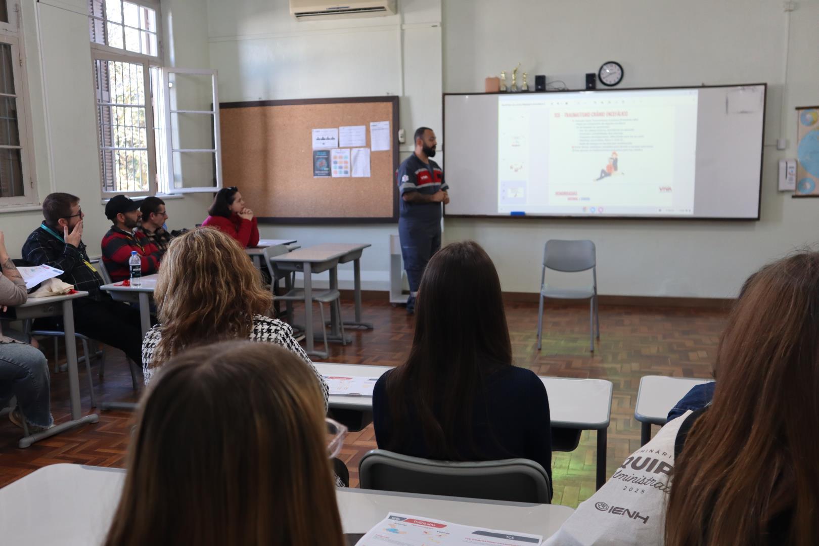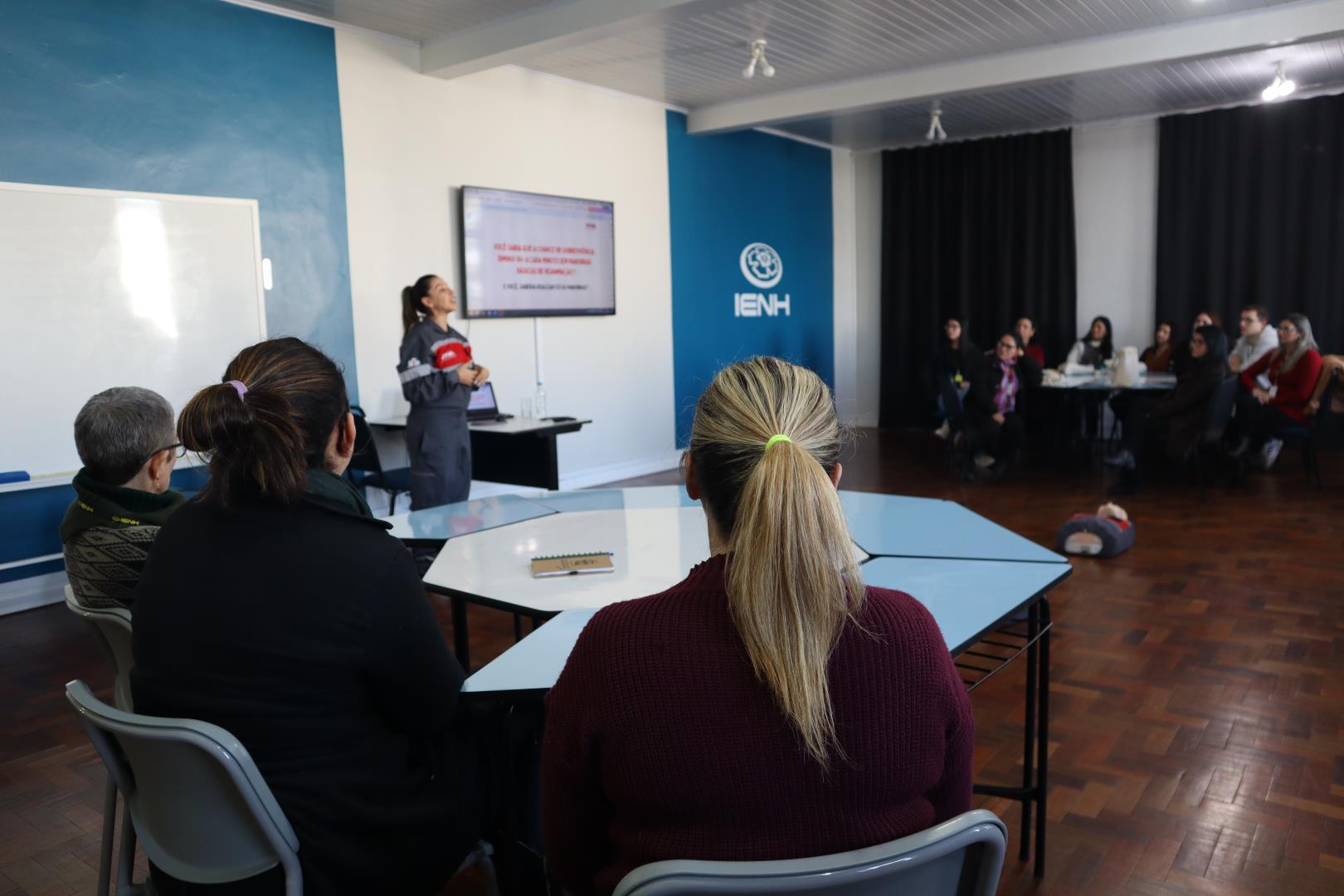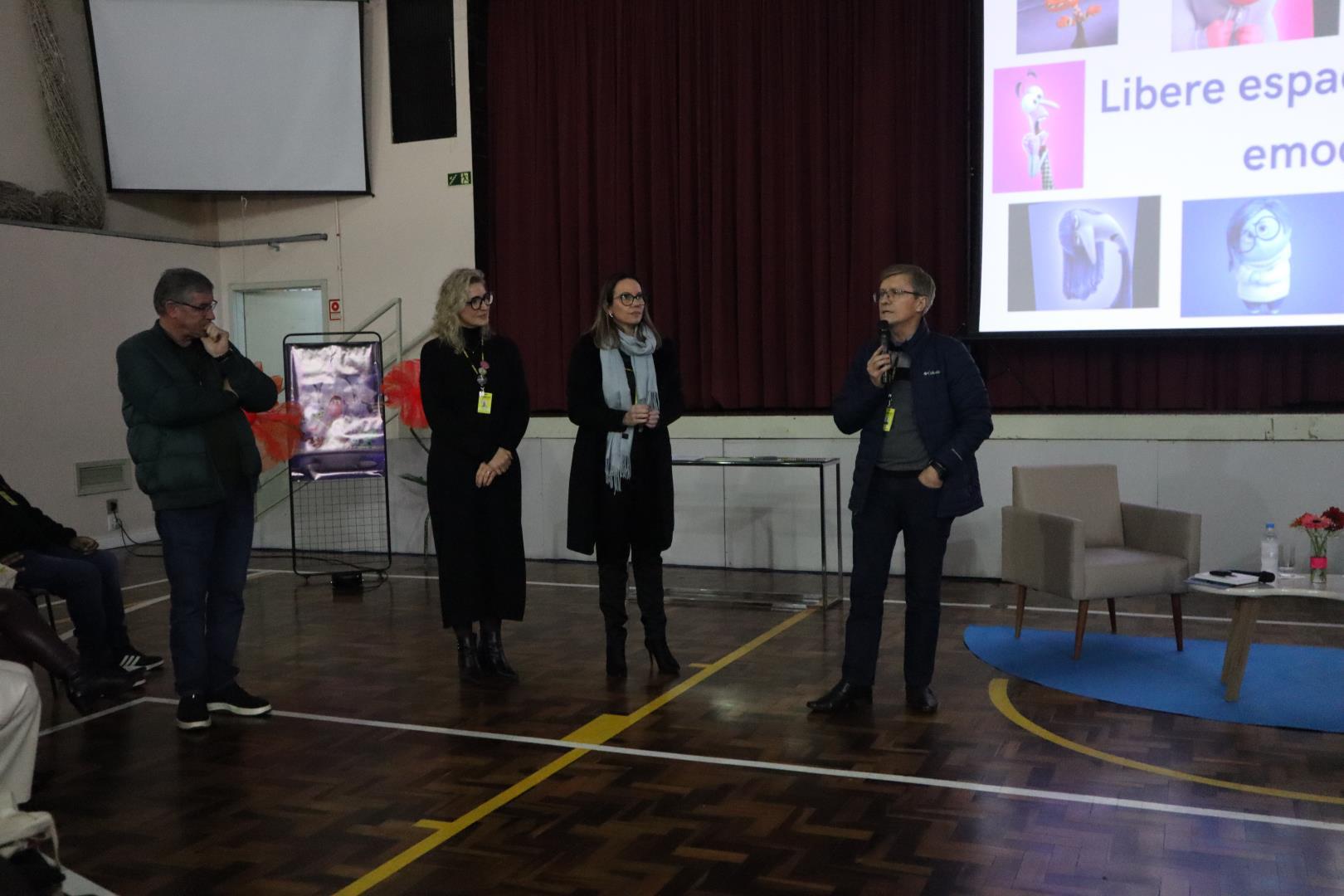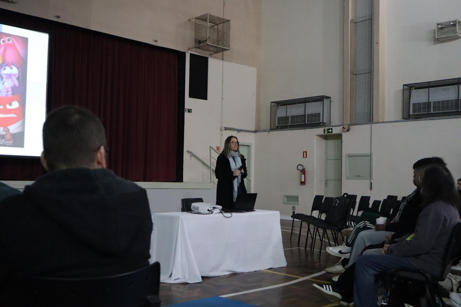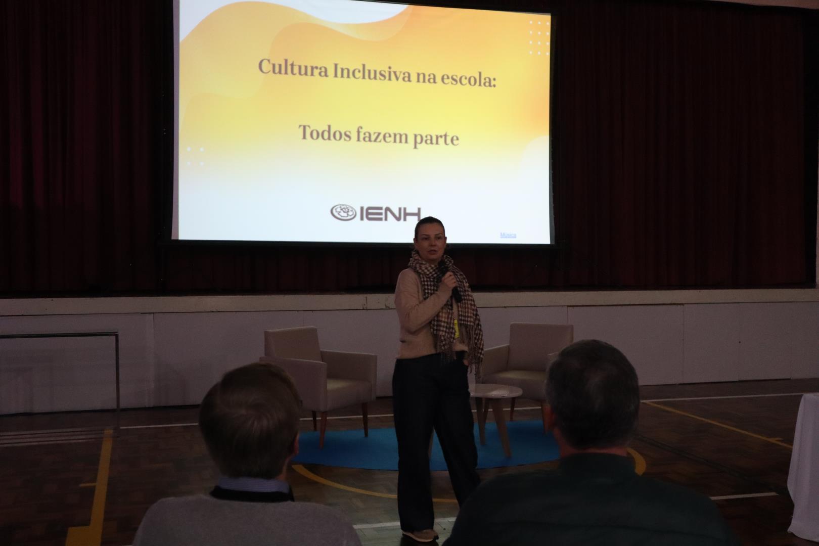 A programação iniciou com recepção e café da manhã, seguida das boas-vindas da Equipe Diretiva e um momento de reflexão. Em seguida, os participantes assistiram ao filme “Divertidamente 2”, que serviu de base para um diálogo profundo sobre as emoções, conduzido por Renata Roos, vice-diretora do Ensino Superior e dos Cursos Técnicos da IENH, e Jaqueline Bilhalva Maicá, professora do Curso de Psicologia da Faculdade IENH.