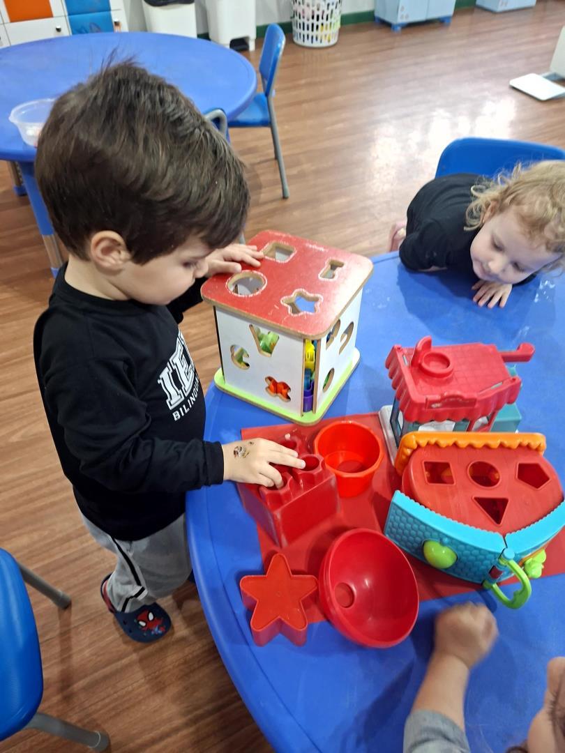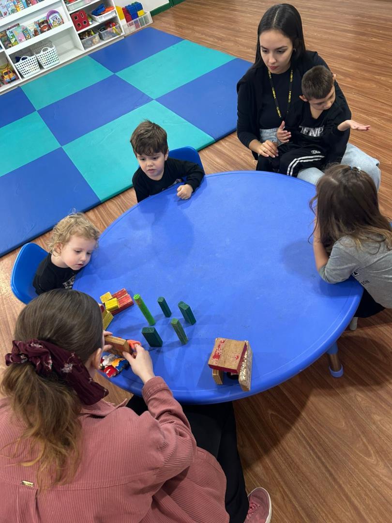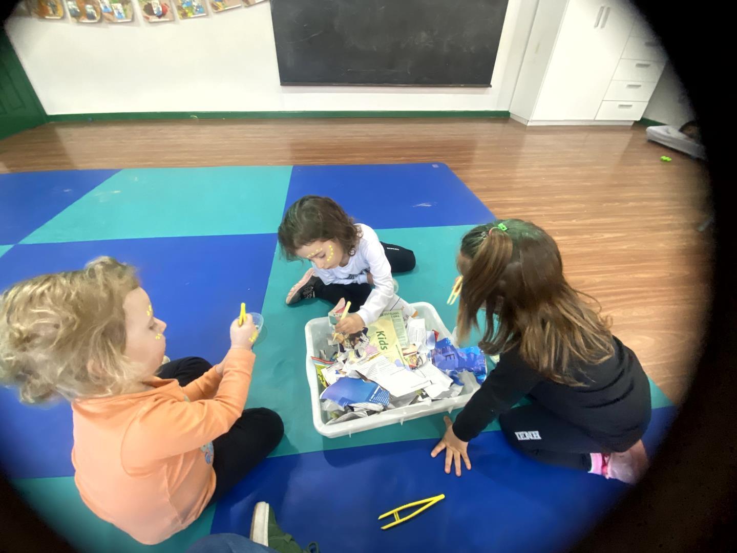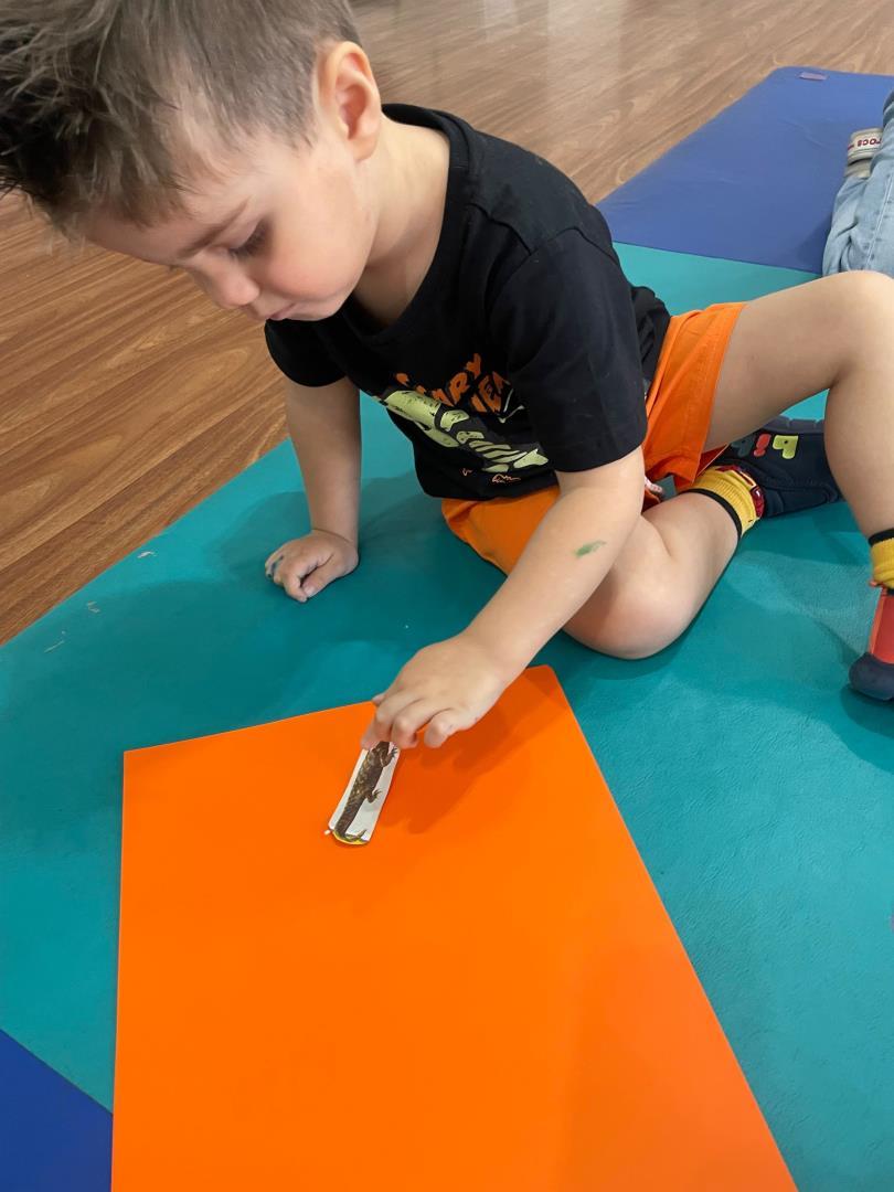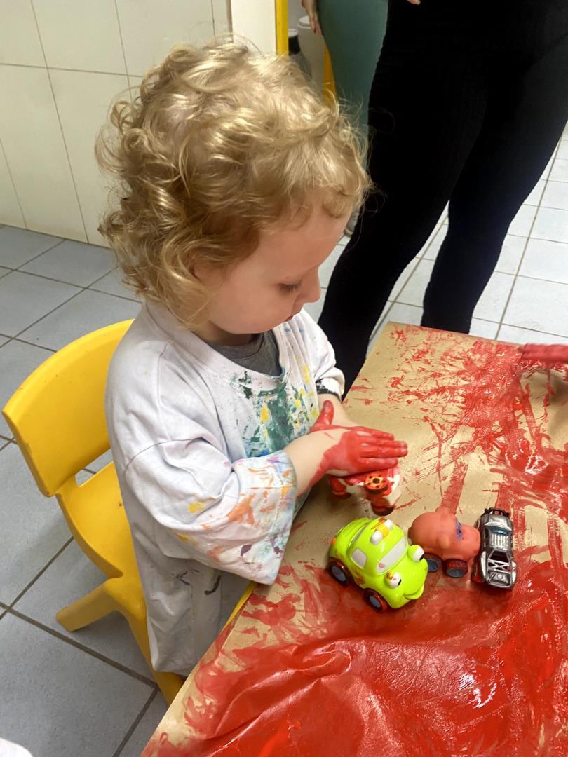 Durante as propostas, os pequenos exploraram o universo das rimas, brincaram com sons e palavras, e participaram de momentos especiais de “hora do conto” com fantoches, tornando as histórias ainda mais envolventes. Também realizaram atividades práticas, como selecionar objetos nas cores amarelo e vermelho e utilizar tintas e carrinhos para expressar suas percepções das histórias, transformando o aprendizado em uma experiência sensorial e divertida.