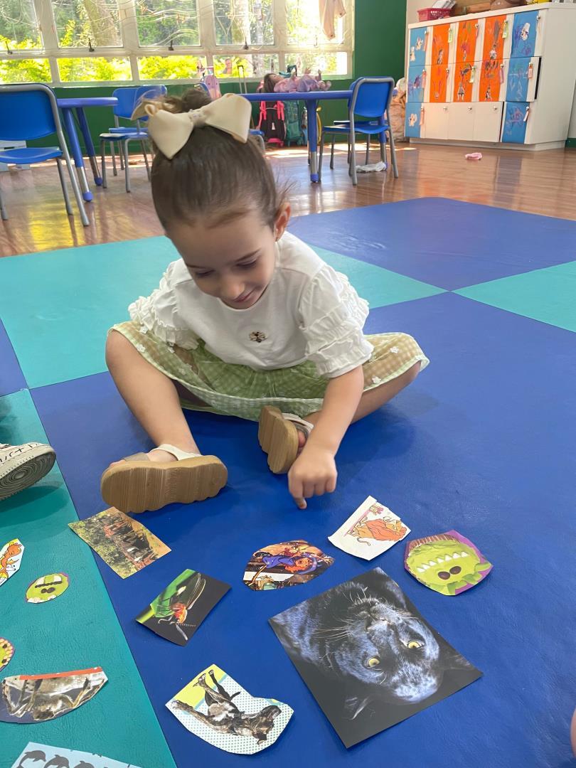 Ao longo das vivências, as crianças compartilharam suas descobertas de forma espontânea e criativa: “O lobo virou um bolo grande!”, “Ele também tem medo da Chapeuzinho!”, “Eu gosto mais da Chapeuzinho Amarelo!”, “Quando eu fico com medo, fecho os olhos assim!”. Essas expressões revelaram o encantamento e o envolvimento com as narrativas trabalhadas.