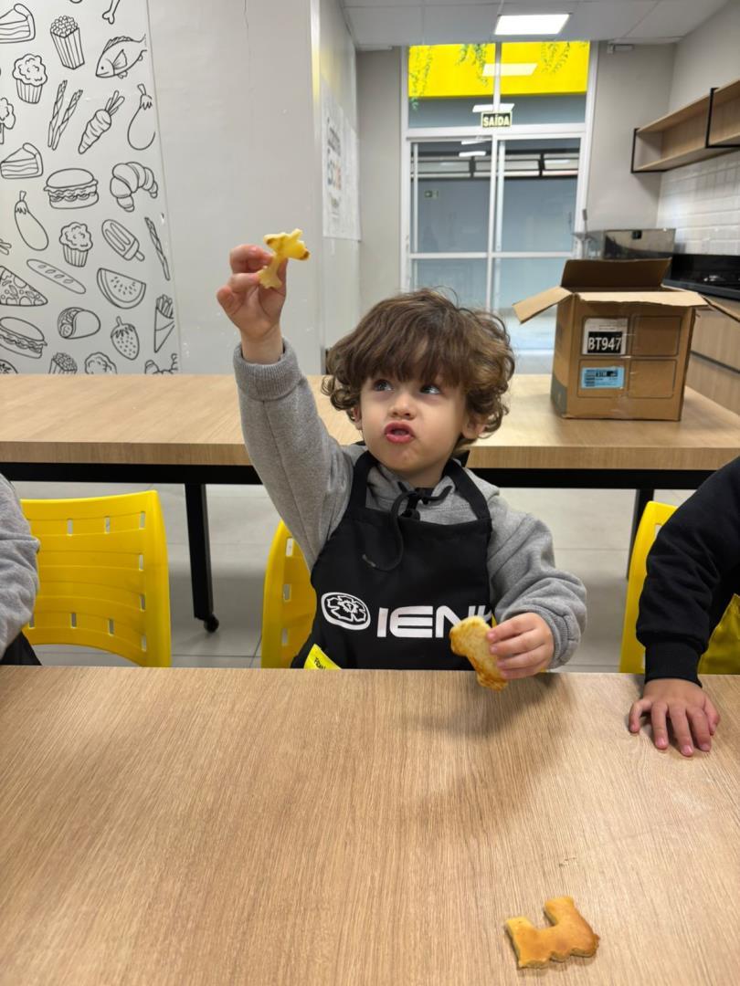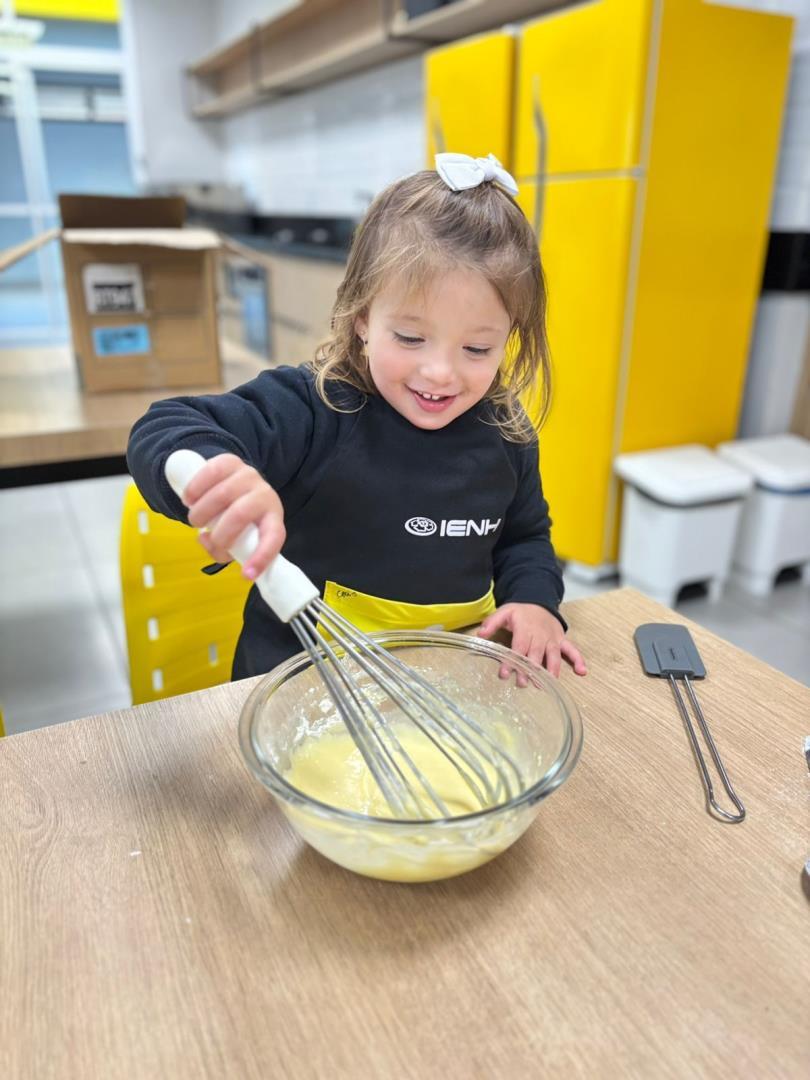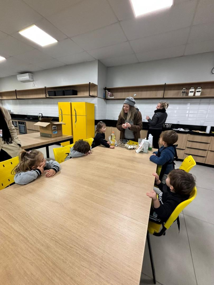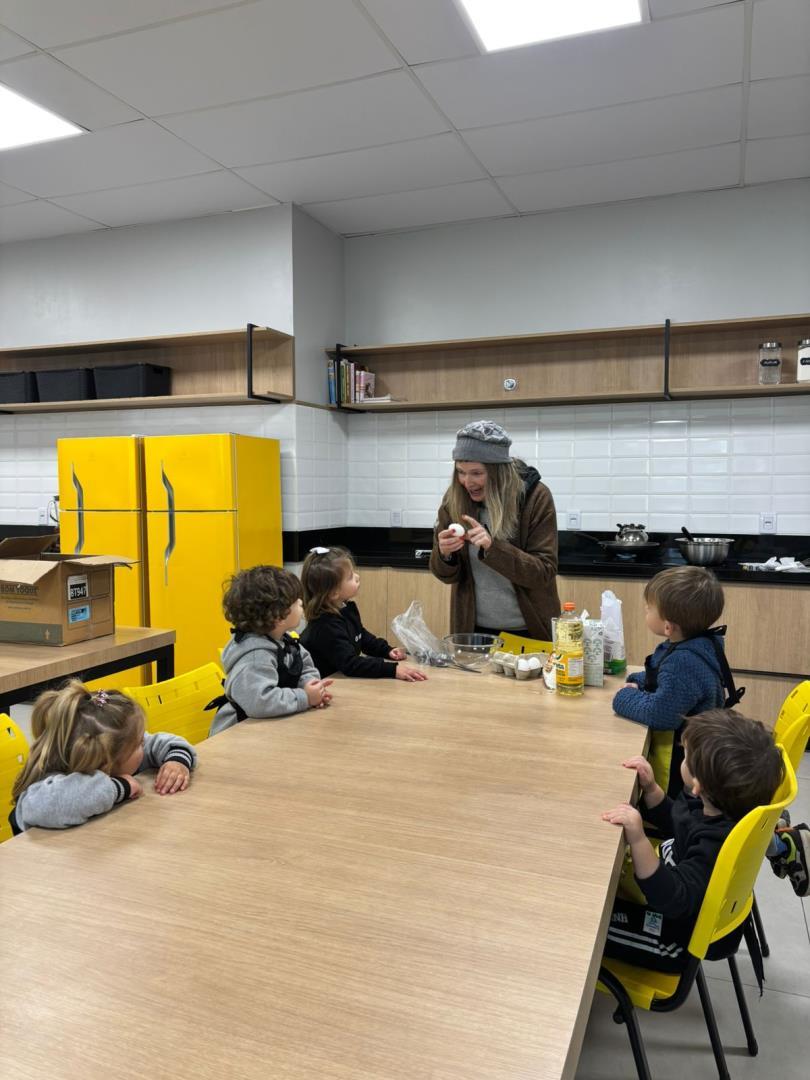 A atividade foi conduzida pela professora Bruna Rigotti e pela teacher Thami Riva, em parceria com a professora Eneida Sander, responsável pelas contações de histórias encantadoras na Unidade. Juntas, elas promoveram uma cooking class especial, que uniu culinária, diversão e conhecimento.