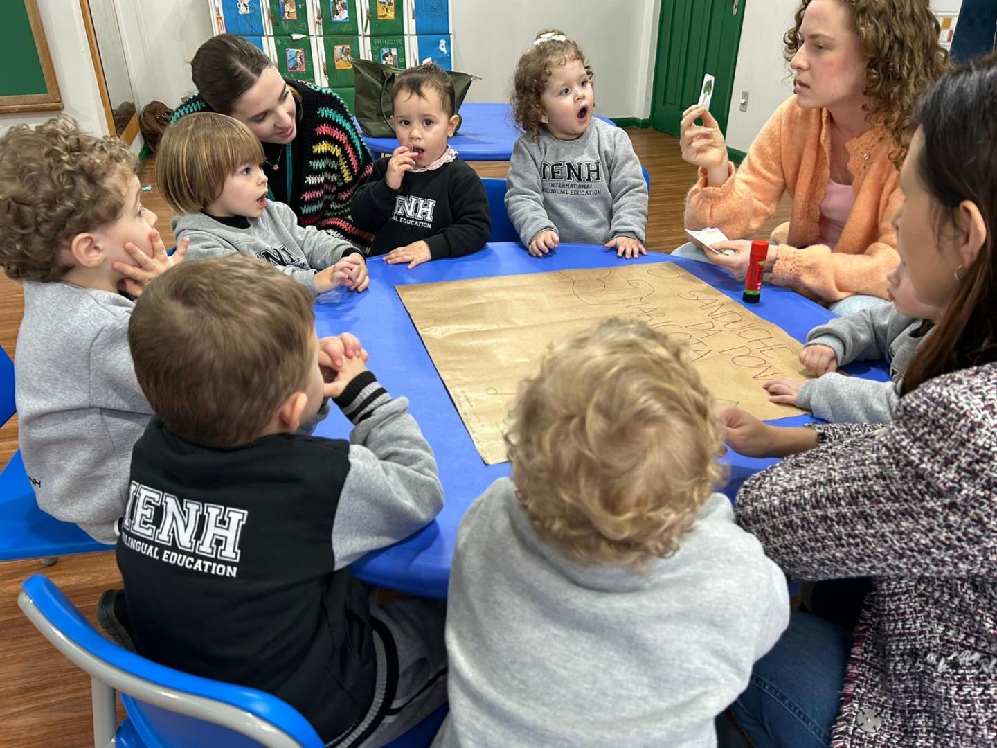 O projeto de estudos do Kindergarten 2B da Educação Infantil do Currículo Internacional Bilíngue da IENH – Unidade Pindorama, intitulado “Descobrindo os tamanhos do mundo… One size at a time!”, tem como foco principal a exploração dos tamanhos de objetos e animais, além de incentivar reflexões sobre o próprio crescimento das crianças.
