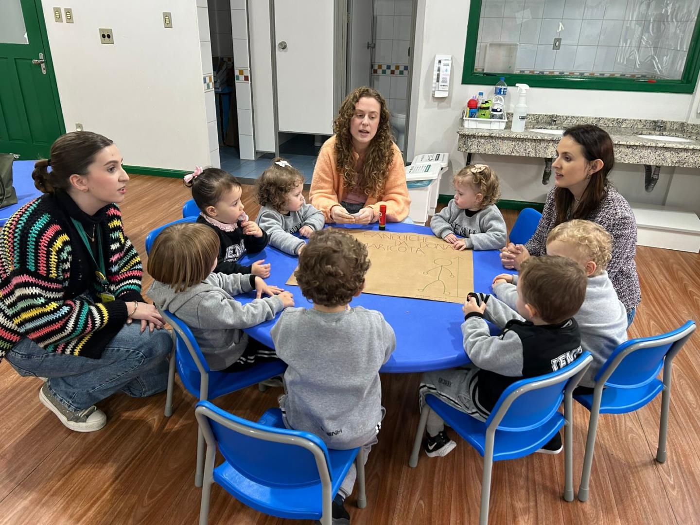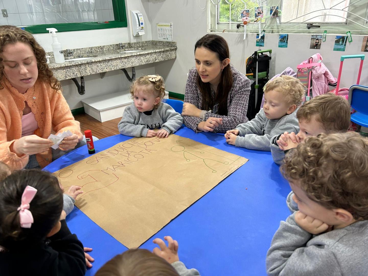 As crianças participaram ativamente dos momentos propostos, demonstrando curiosidade e interesse pelas novas aprendizagens. A atividade foi conduzida pela teacher Amanda Escobar e pela Professora Amanda Siebel.