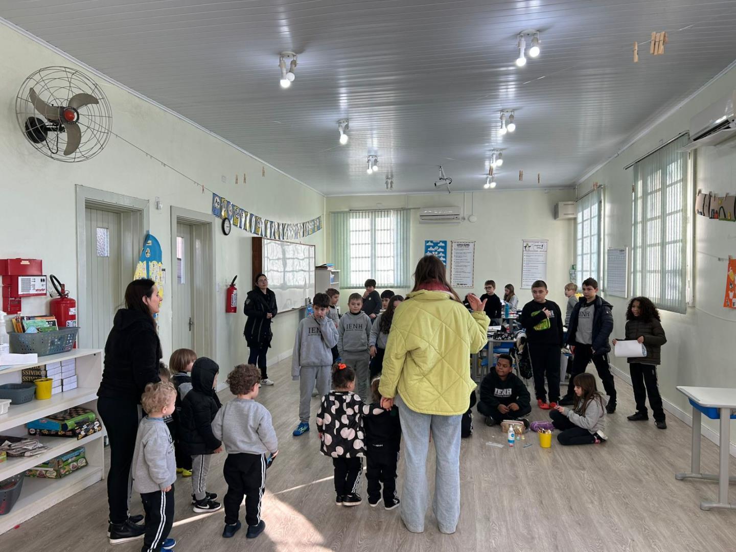 Para responder a essas questões, visitaram as turmas dos maiores, promovendo uma rica interação com outros alunos e o ambiente escolar. As atividades, conduzidas pela teacher Amanda Escobar e pela professora Amanda Siebel, possibilitaram múltiplas aprendizagens, estimulando a observação, a curiosidade e o pensamento crítico das crianças.