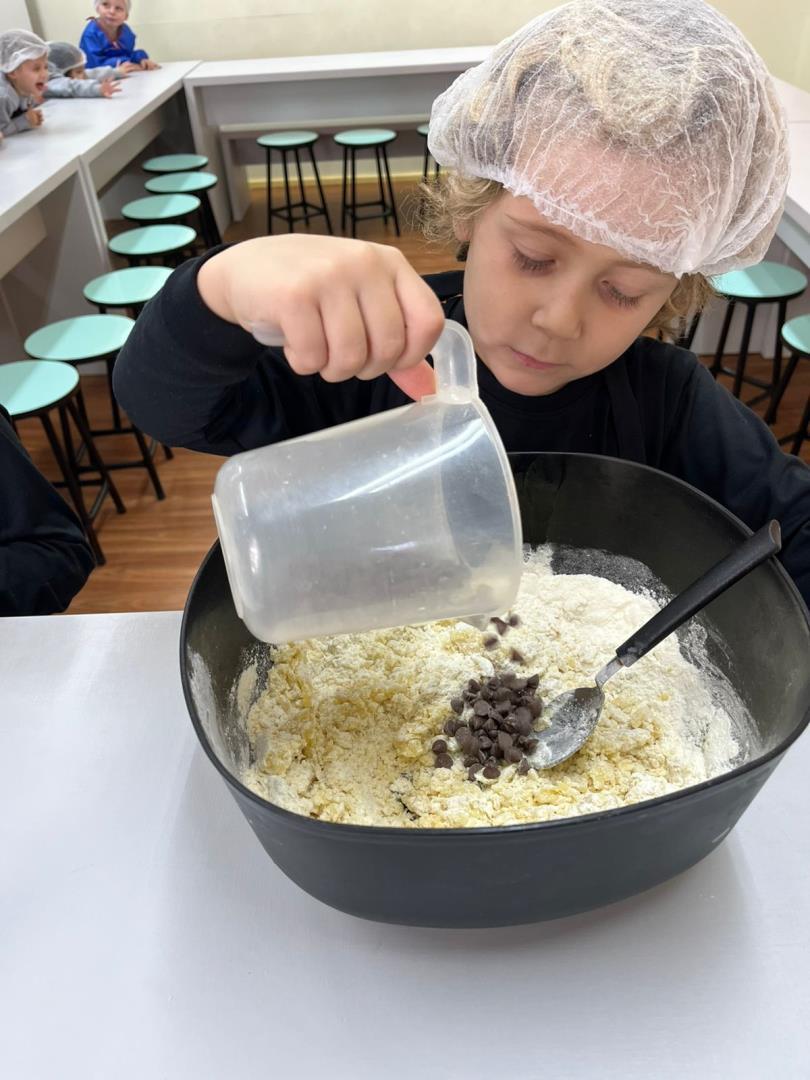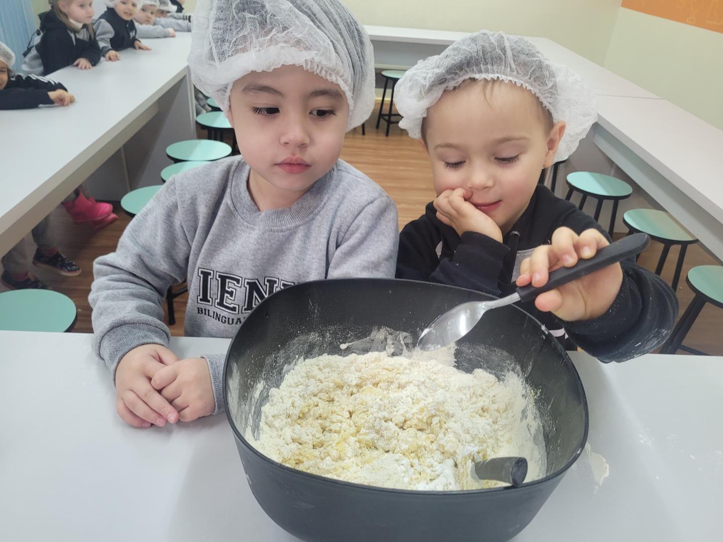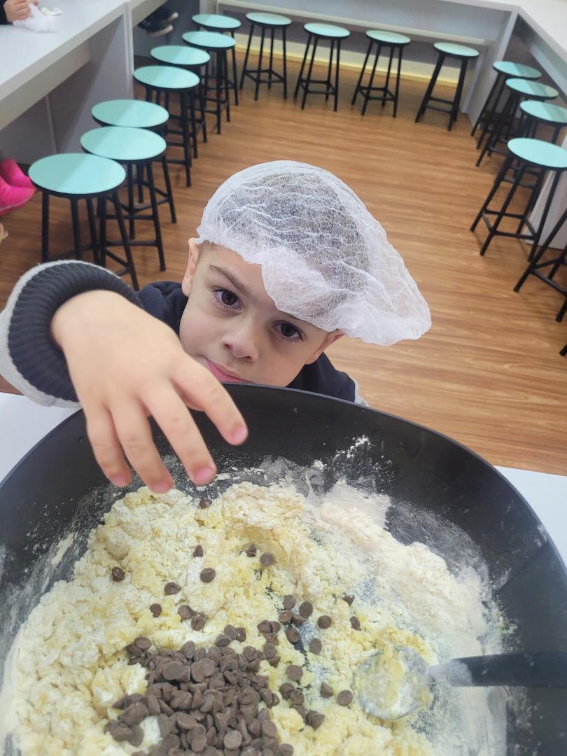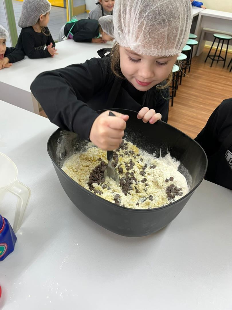 Inspirados na música “Who Took The Cookie?”, uma das favoritas das crianças das turmas de Kindergarten 3A e 3B da Educação Infantil do Currículo Internacional Bilíngue da IENH - Unidade Pindorama, as turmas participaram de uma deliciosa Cooking Class, no dia 14 de julho. A atividade marcou o encerramento do semestre com muito aprendizado, diversão e olhinhos atentos em cada etapa do preparo dos cookies americanos.
