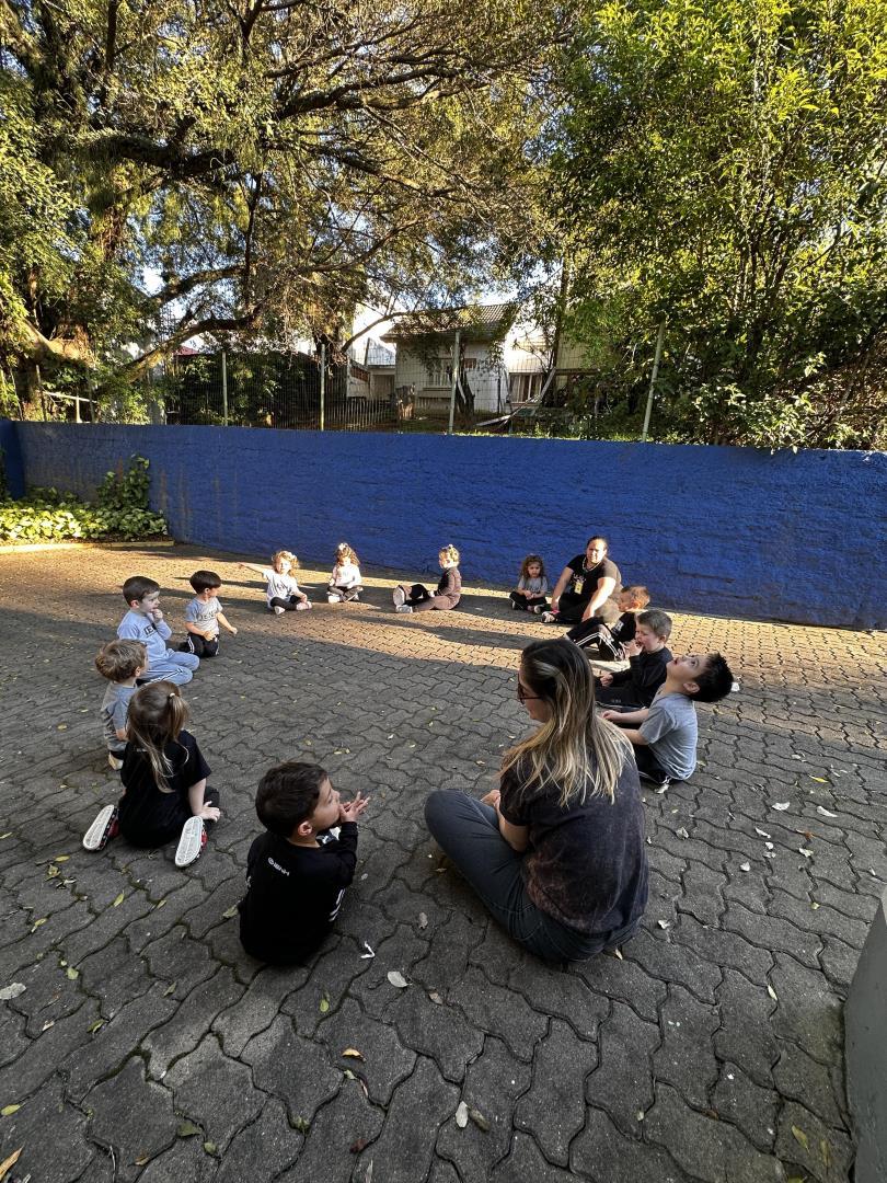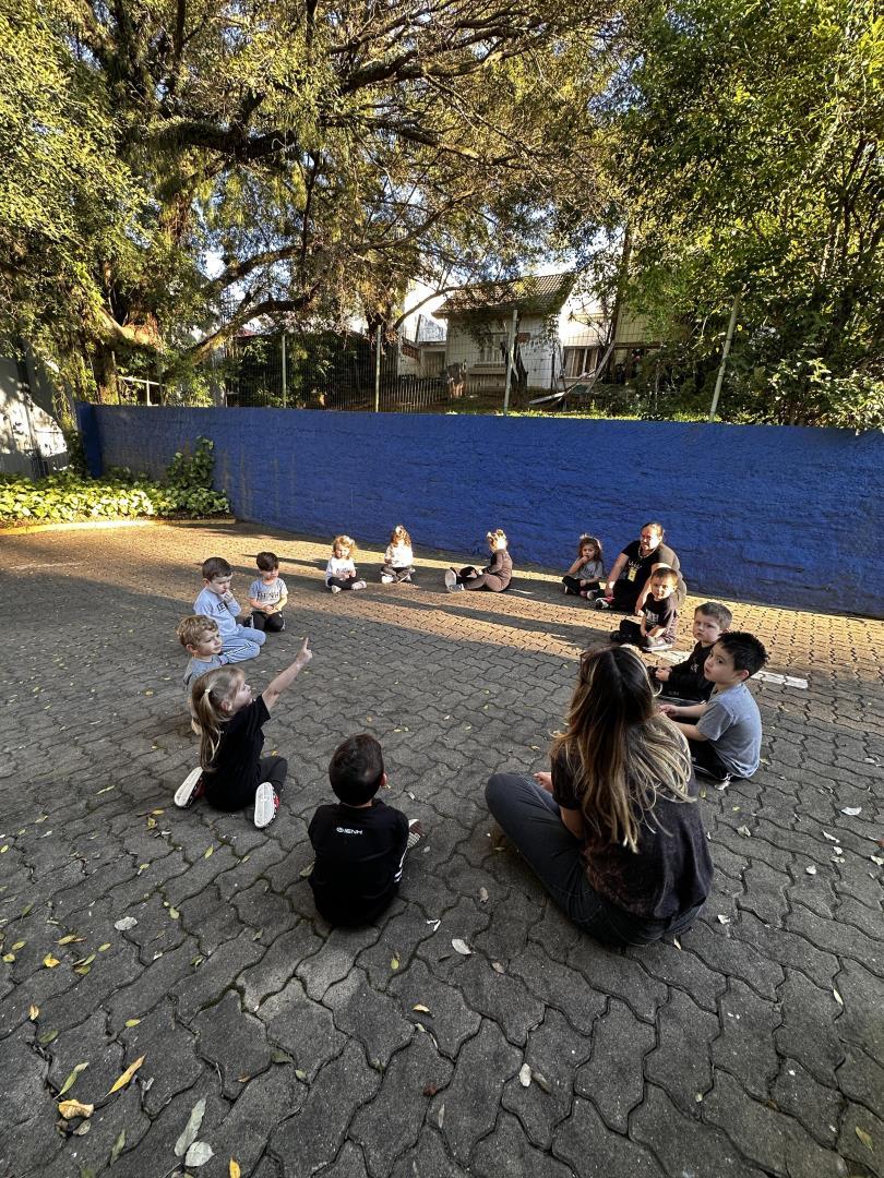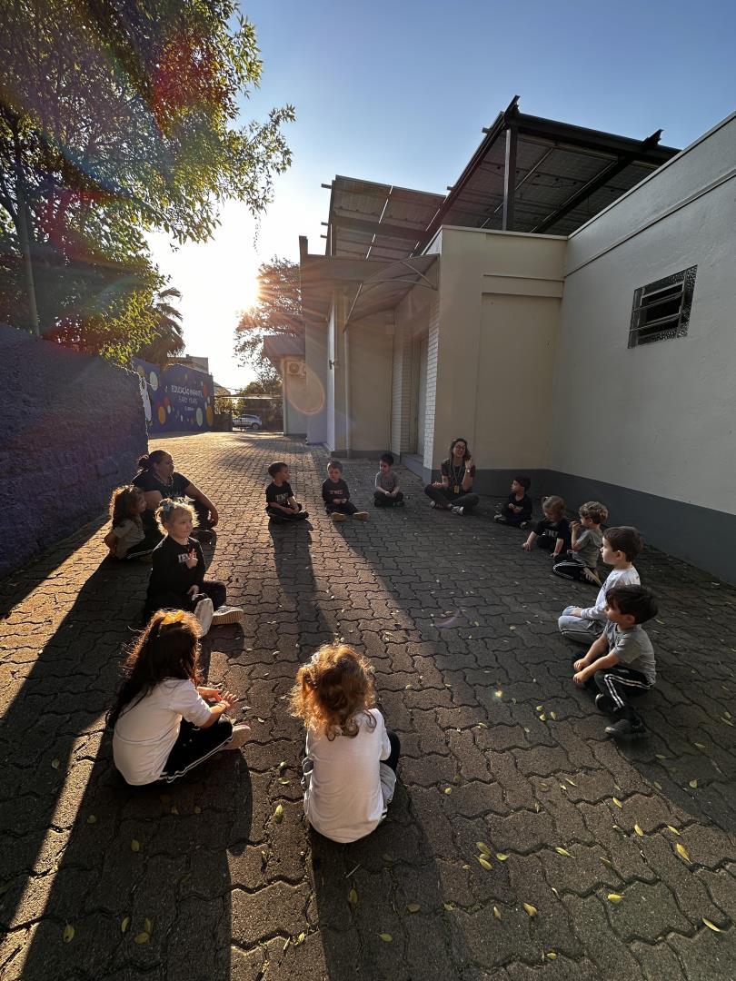 As crianças do Kindergarten 3A da Educação Infantil do Currículo Internacional Bilíngue da IENH – Unidade Pindorama participaram de uma vivência especial durante o período de Wellbeing. A turma foi convidada a ir até a rótula da Educação Infantil, um espaço externo ao ar livre, para explorar a chamada paisagem sonora. A atividade iniciou com a observação do local, que ocorreu no dia 29 de agosto.