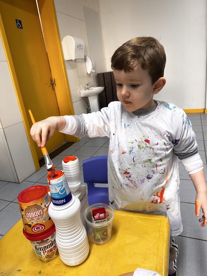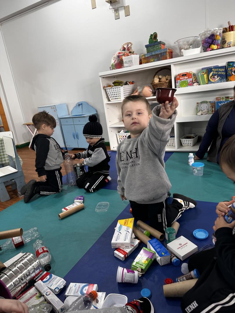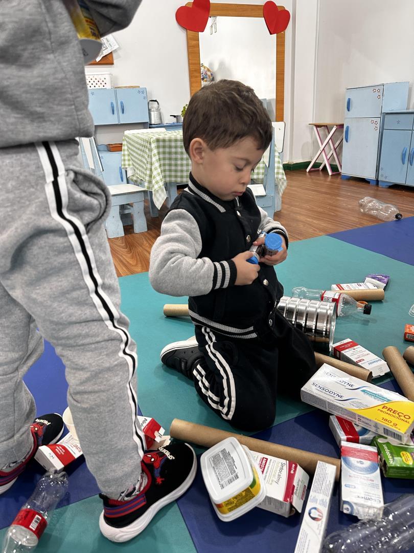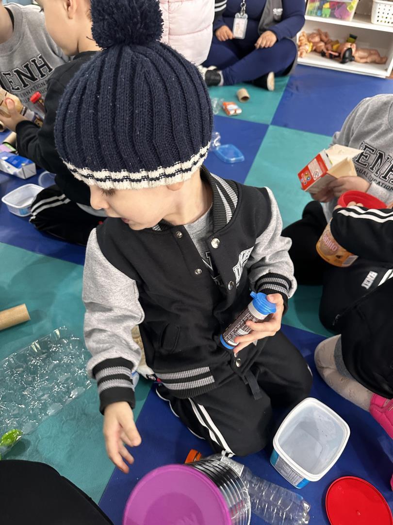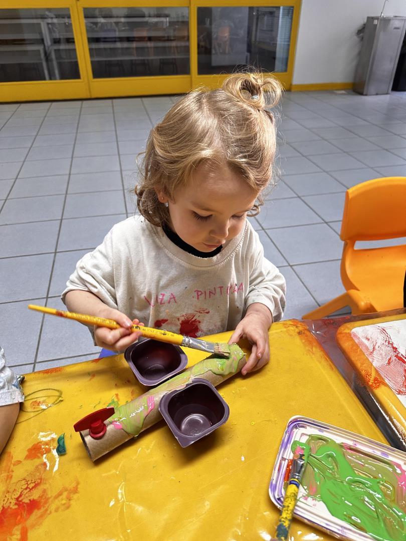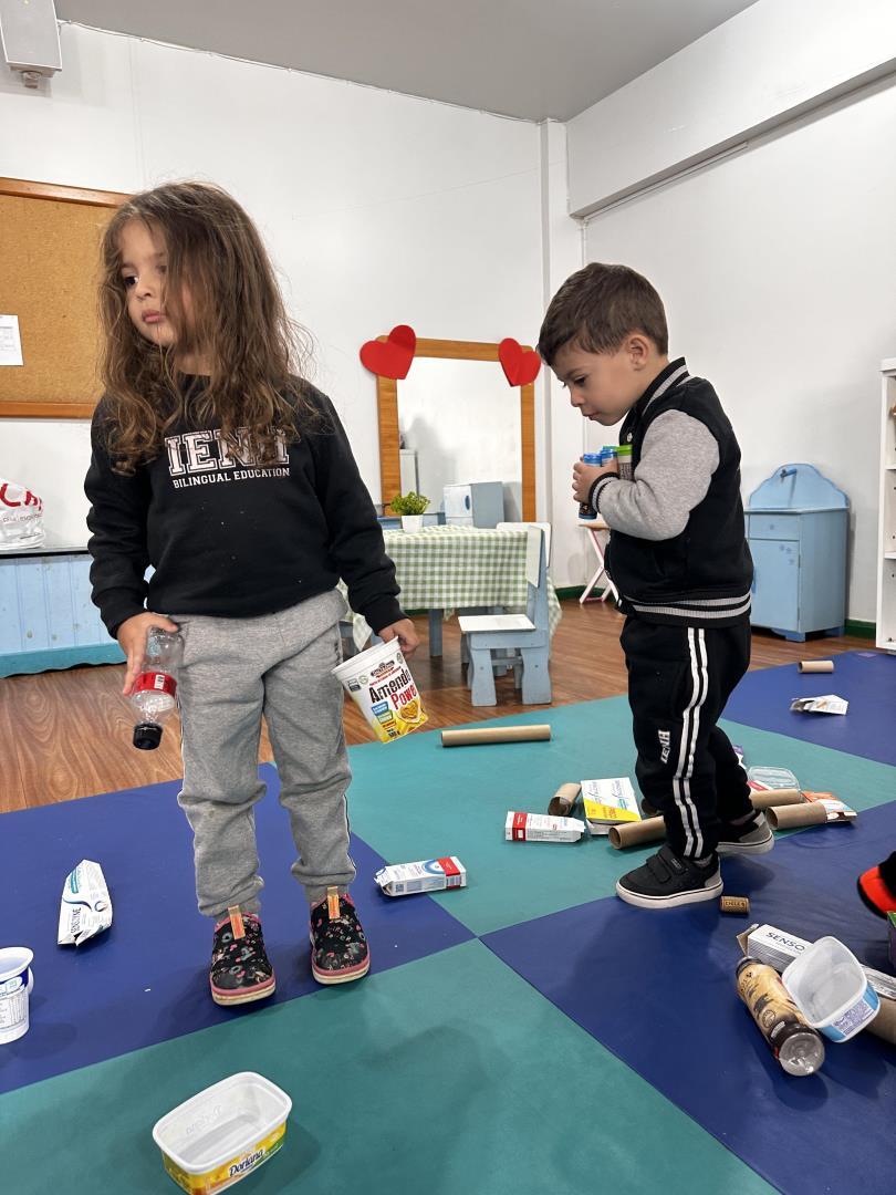 Cada criança escolheu o que gostaria de representar com as sucatas e, com apoio da professora, montou sua escultura. Finalizada a estrutura, as criações foram pintadas com tinta acrílica, resultando em peças artísticas únicas e cheias de significado.