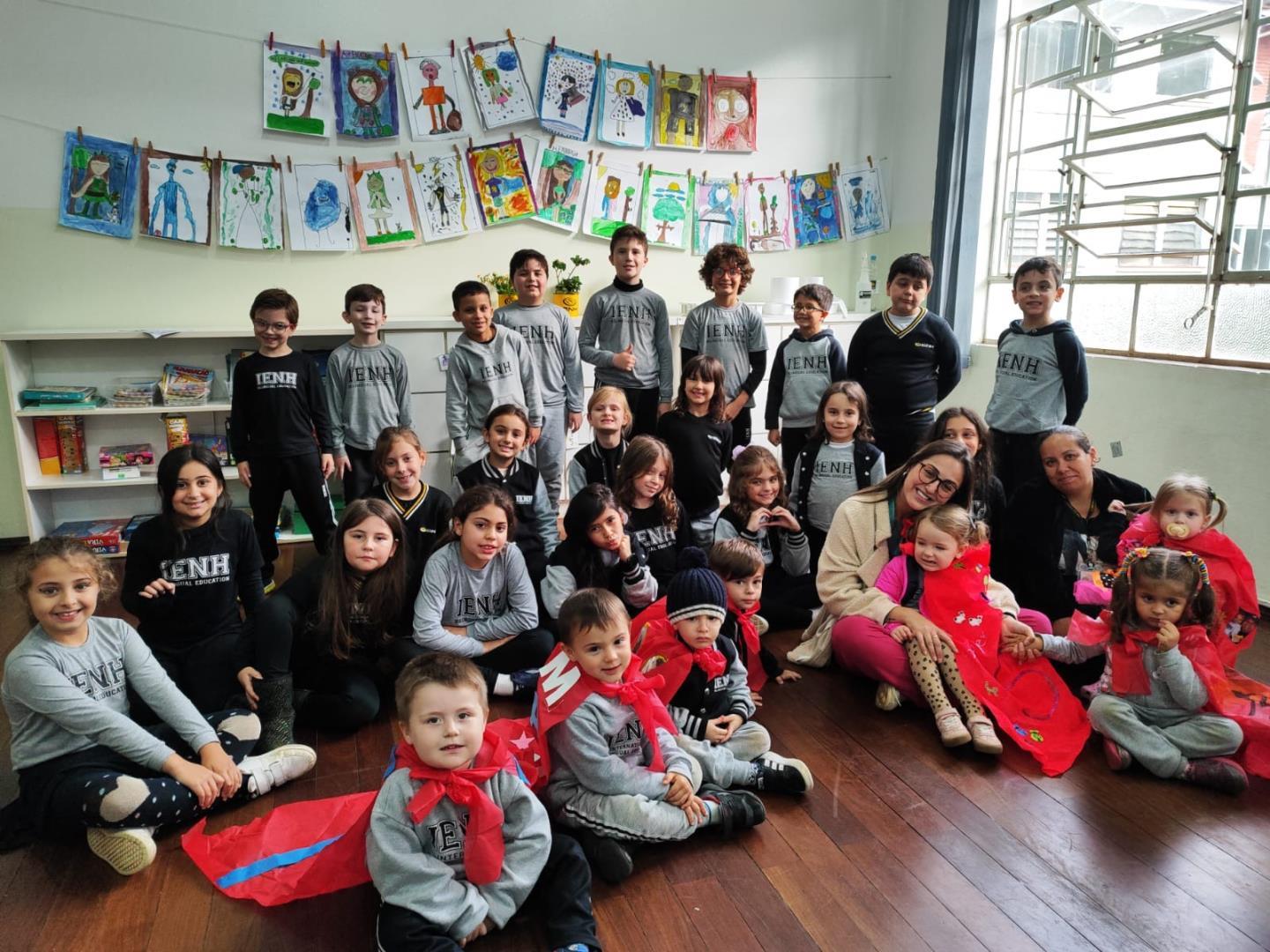 No dia 06 de junho, os estudantes do Kindergarten 3A da Educação Infantil do Currículo Internacional Bilíngue da IENH – Unidade Pindorama, acompanhados de suas professoras, realizaram uma visita às salas das turmas de Year 2 do Ensino Fundamental do Currículo Internacional Bilíngue, onde foram recepcionados pelos Monitores Ecológicos, projeto desenvolvido pelos próprios alunos do Year 2.