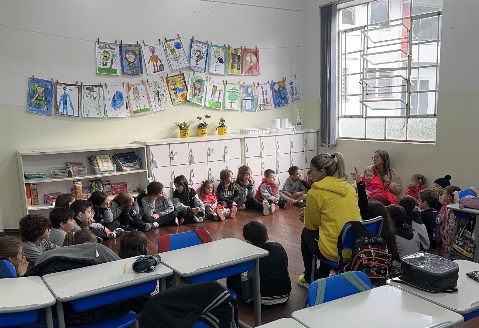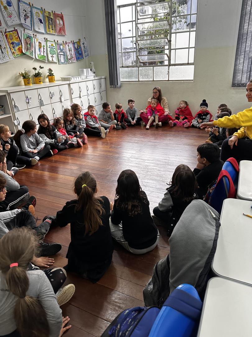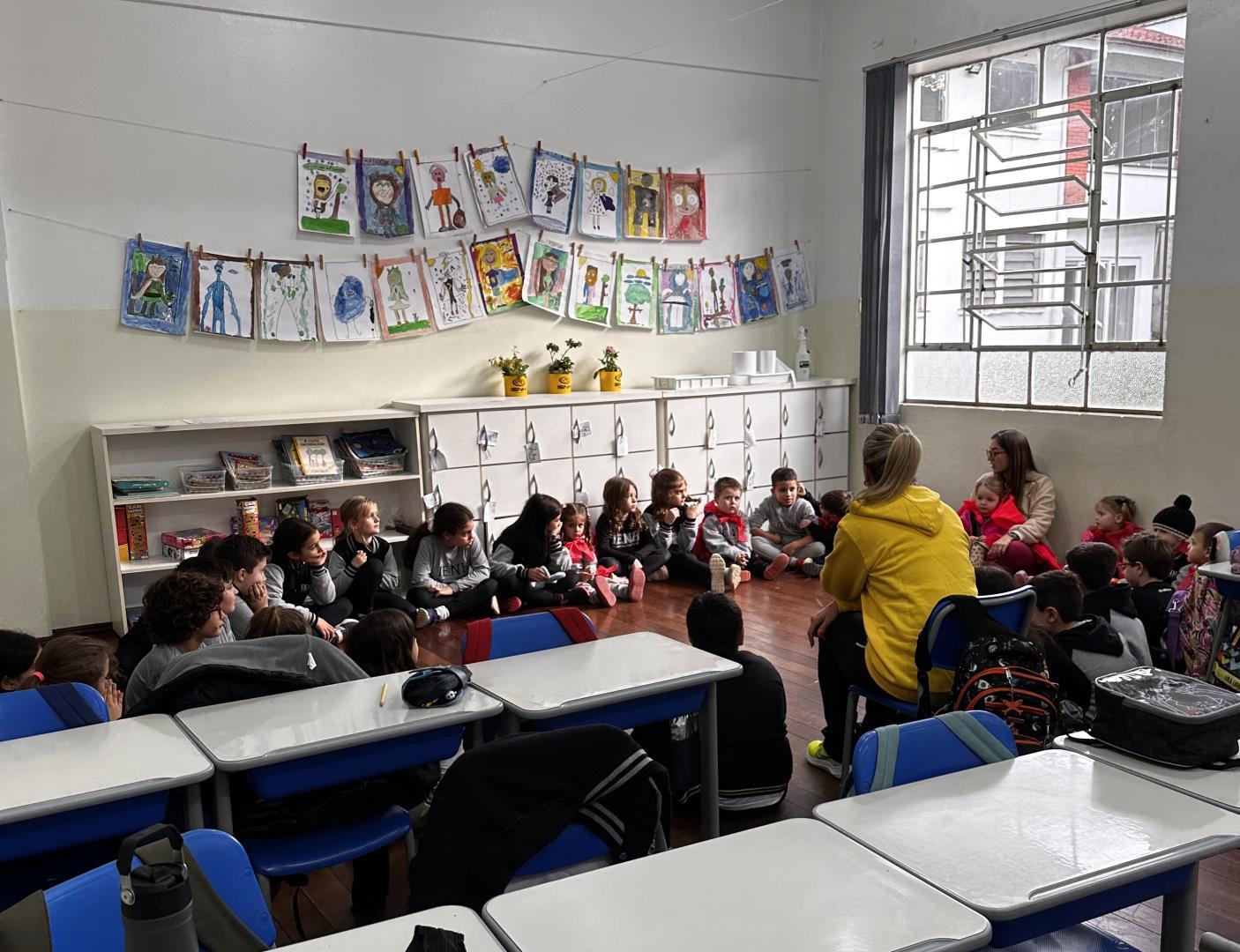 Para o momento especial, os pequenos vestiram capas de super-heróis confeccionadas em casa, representando o compromisso com as boas ações. Durante a visita, os Monitores Ecológicos apresentaram seus desenhos de super-heróis da natureza, criados para representar quem protege e cuida do Planeta. Cada aluno explicou o nome e os poderes do seu personagem, destacando sua importância na preservação ambiental.