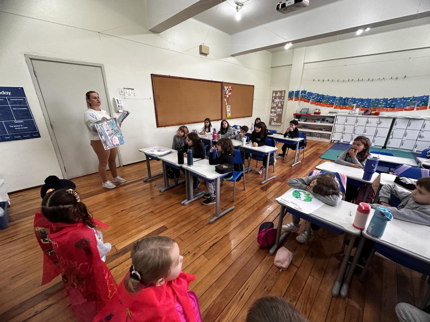 Encantados, os alunos do Kindergarten 3A também compartilharam seus conhecimentos, falando sobre os super-heróis da vida real, como médicos, bombeiros e policiais. Eles também convidaram os colegas dos Year 2 para que visitem sua sala e conheçam tudo o que já foi desenvolvido sobre o tema.