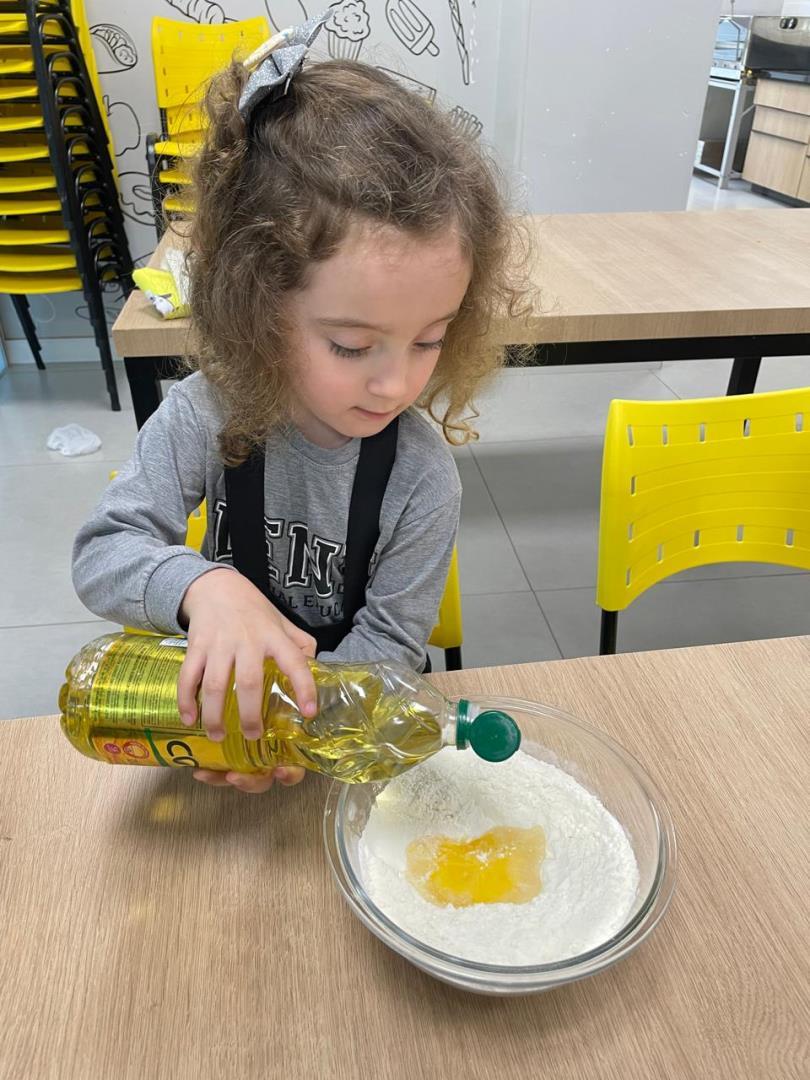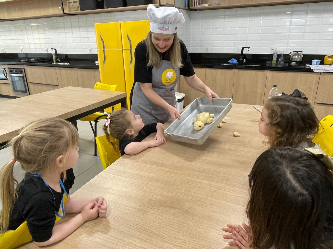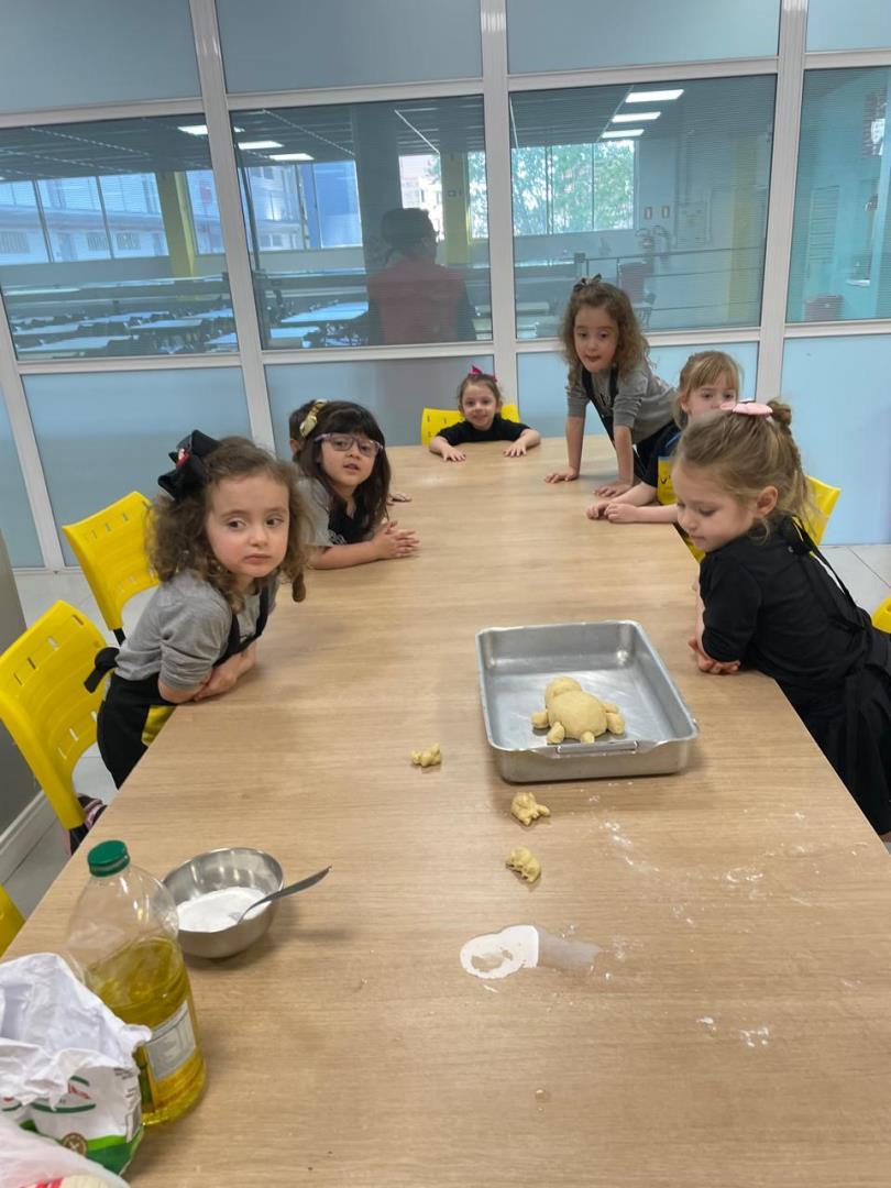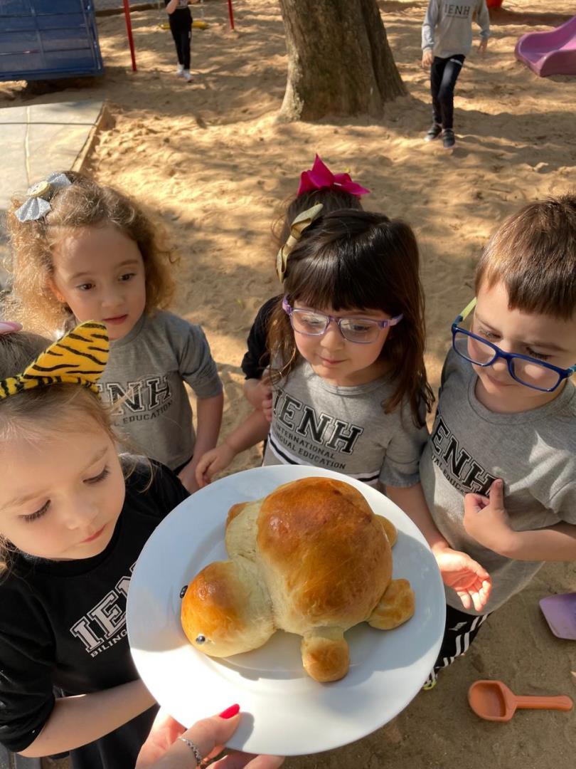 O Kindergarten 3B da Educação Infantil do Currículo Internacional Bilíngue da IENH - Unidade Oswaldo Cruz realizou uma atividade culinária em que as crianças prepararam um delicioso pãozinho caseiro com um detalhe muito especial: o pão se transformou em tartarugas. A atividade ocorreu no dia 26 de setembro, na Cozinha Escola, e foi proposta pela professora Cláudia Nis.
