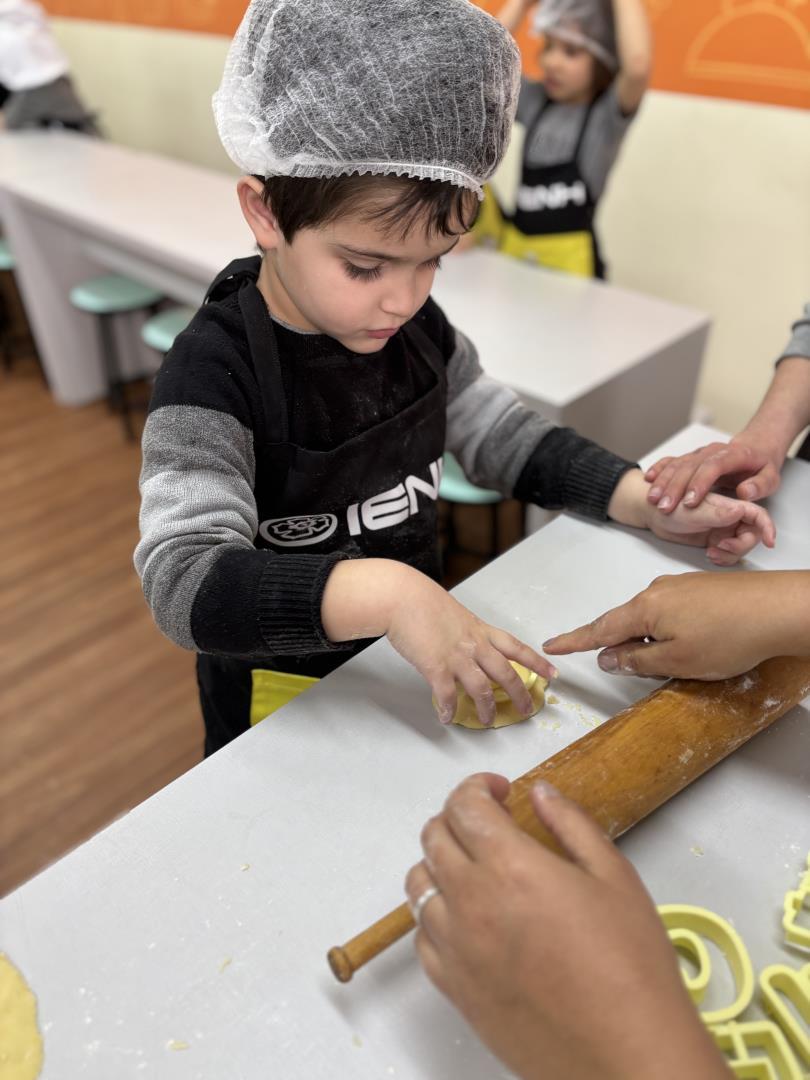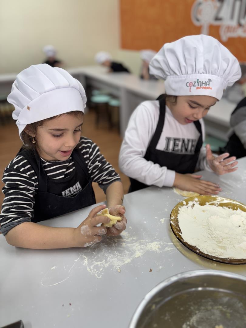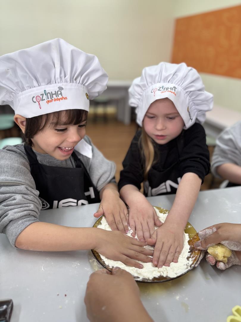 Para a abertura, os alunos participaram de uma hora do conto sobre os primeiros registros da humanidade e criaram hipóteses de símbolos utilizando giz carvão. A atividade foi acompanhada de uma deliciosa cooking class, em que produziram biscoitos amanteigados em formato das letras do próprio nome. Na sequência, levaram como tarefa de casa uma pesquisa sobre a origem e o significado de seus nomes, que foi apresentada em sala com registros, colagens e pinturas.