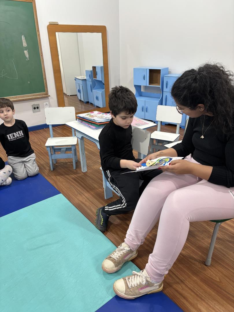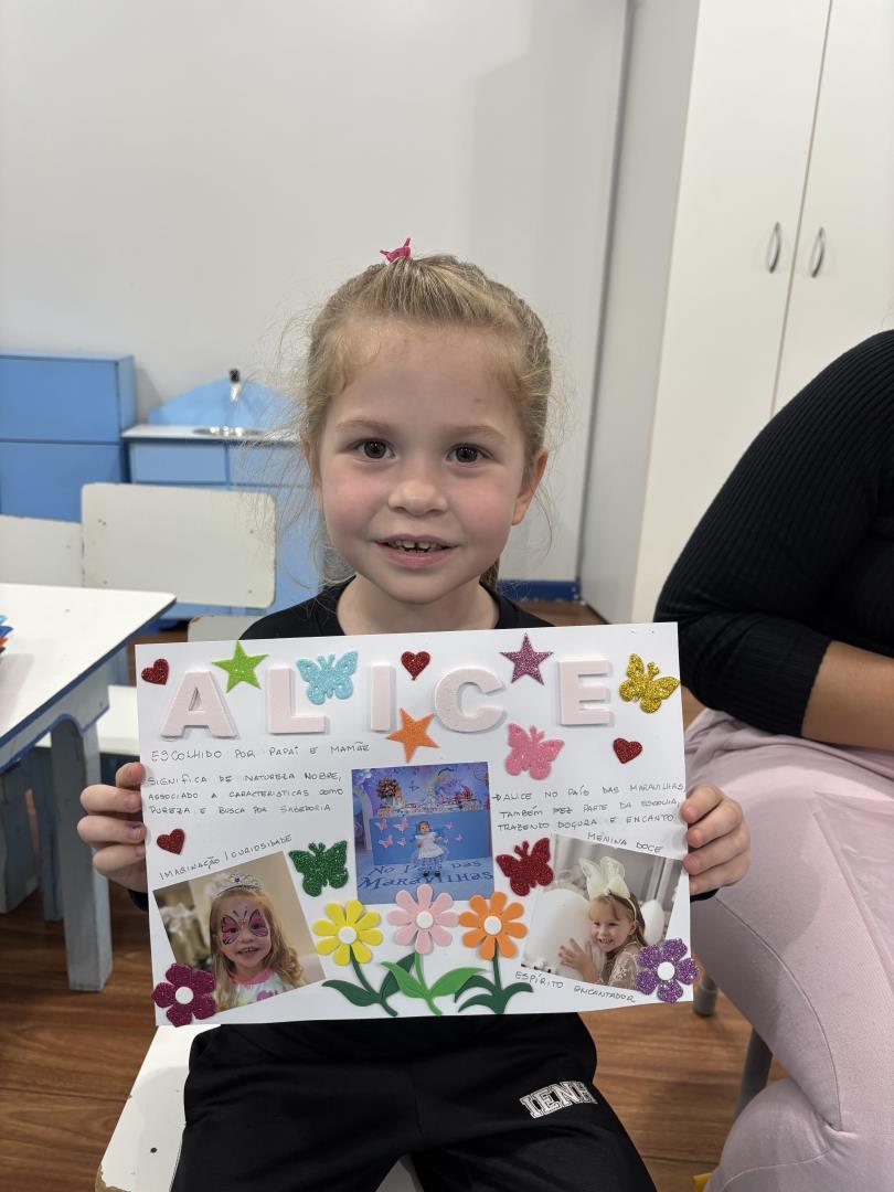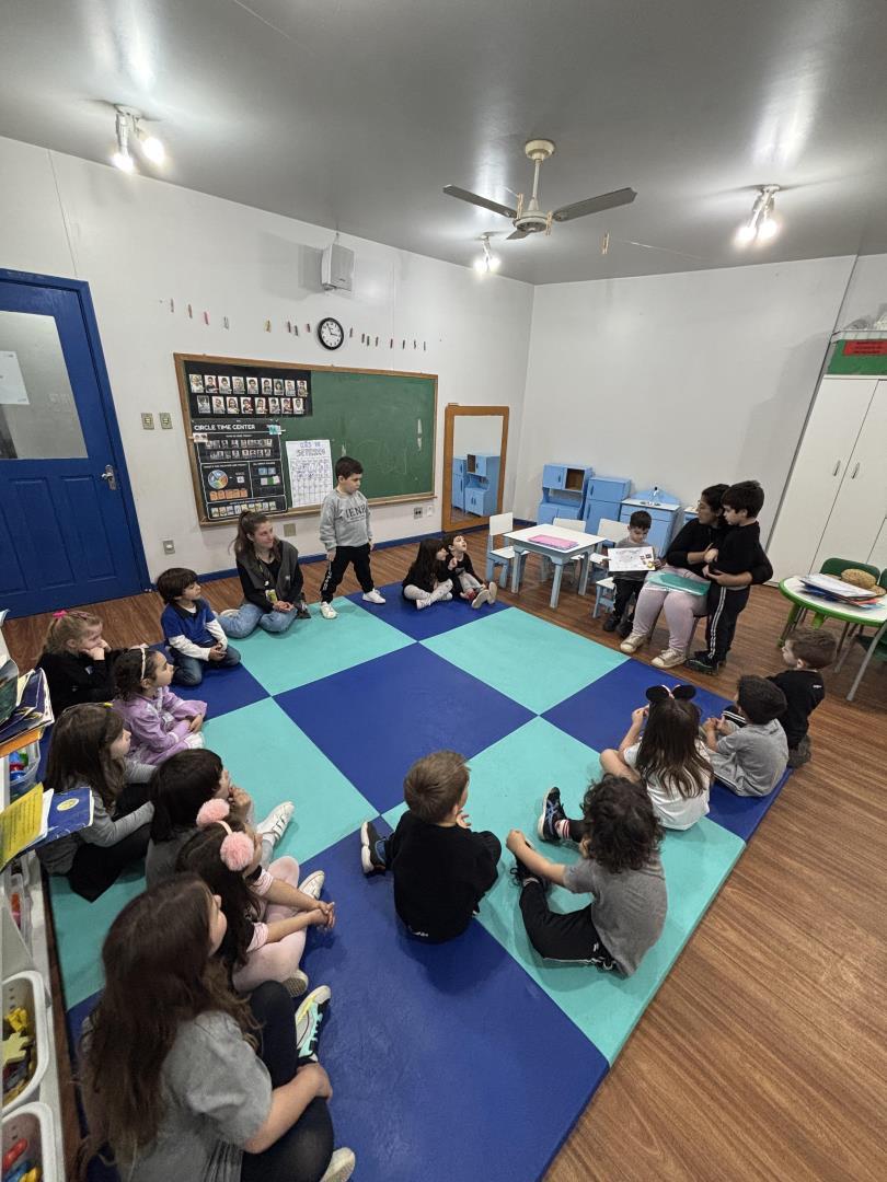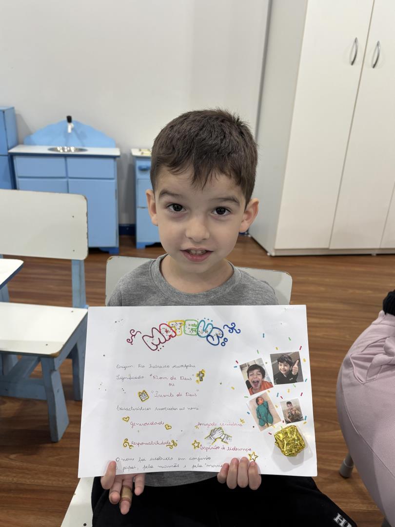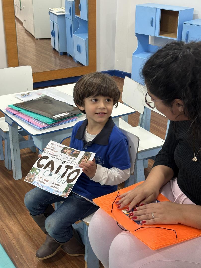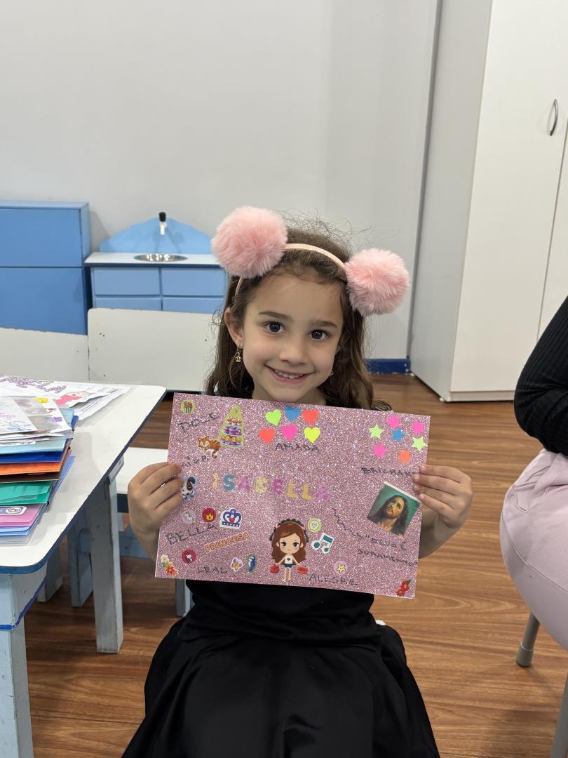 O momento das apresentações foi marcado por significado e pertencimento, com cada criança compartilhando sua identidade e história. A professora auxiliou na leitura dos relatos enviados pelas famílias, enriquecendo ainda mais a troca, o respeito e a empatia no grupo.