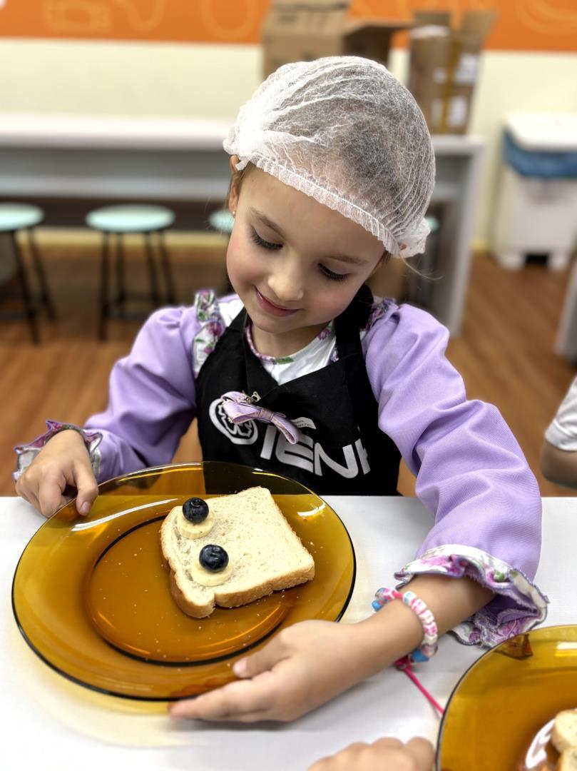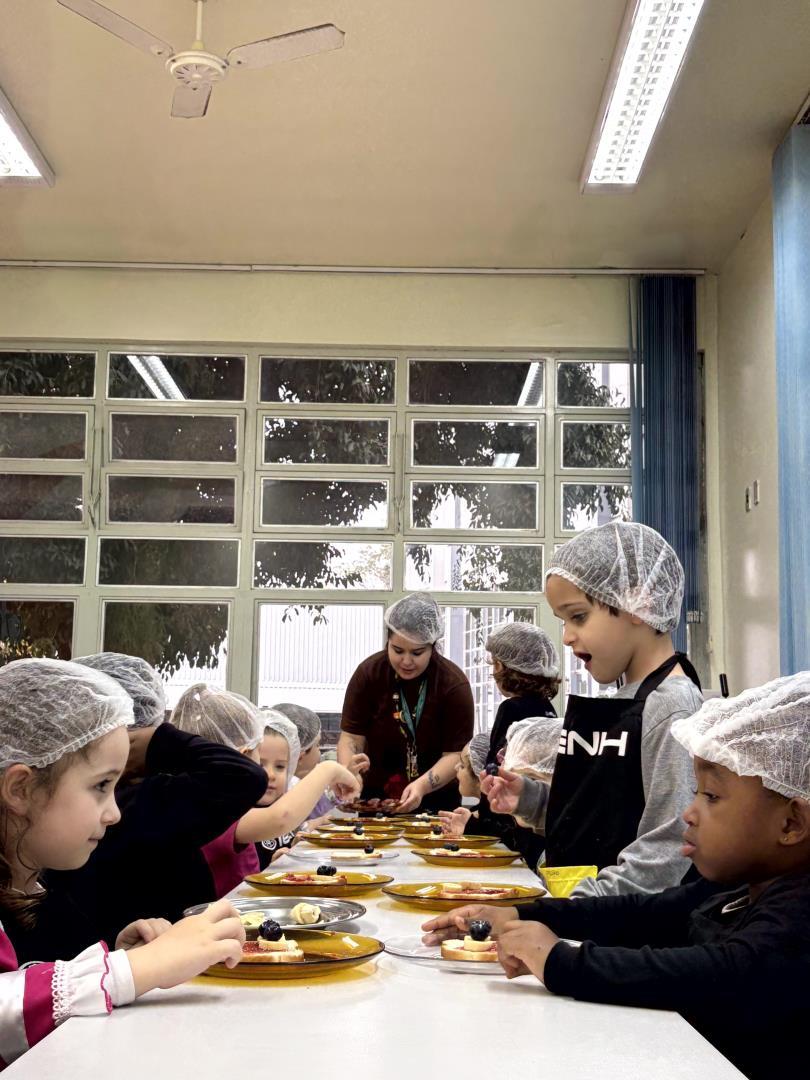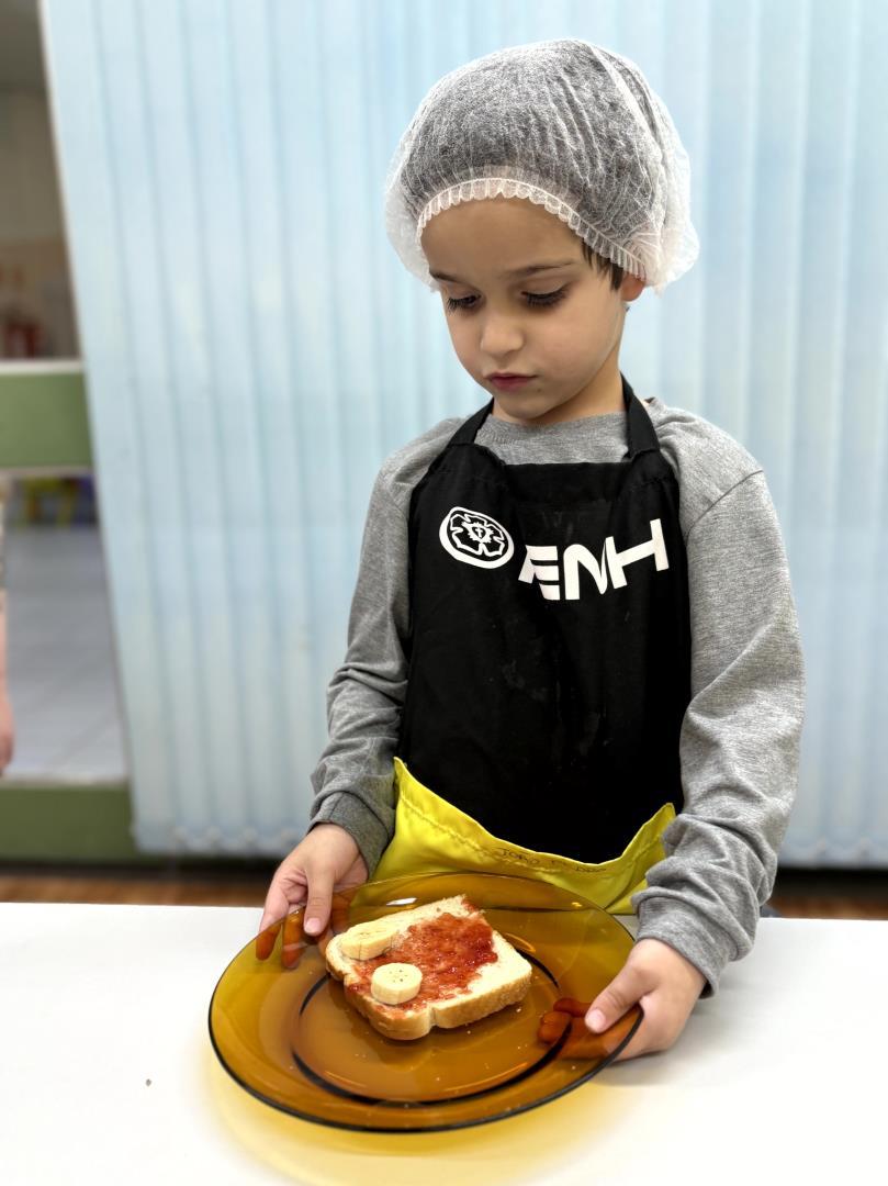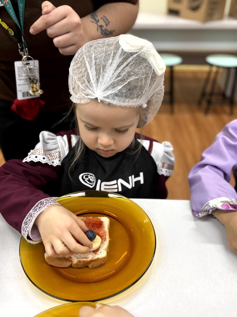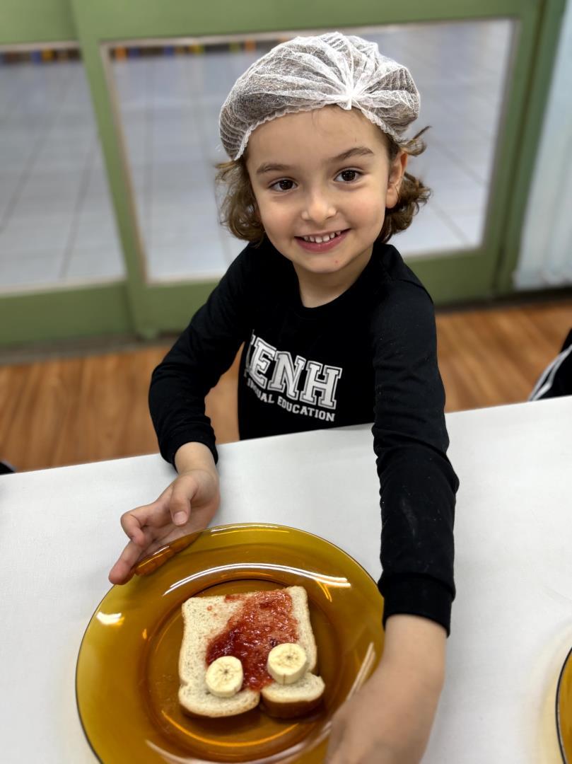 Durante a Cooking Class, realizada dia 15 de setembro, as crianças do Kindergarten 4C da Educação Infantil do Currículo Internacional Bilíngue da IENH - Unidade Pindorama participaram da proposta Funny Face Toasts – Exploring the Body Parts. A atividade teve como objetivo integrar o aprendizado do inglês ao cotidiano das crianças, por meio do contato com alimentos, da criatividade e da exploração do vocabulário relacionado às partes do corpo.
