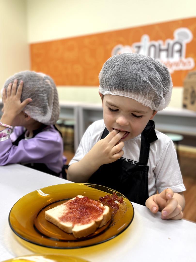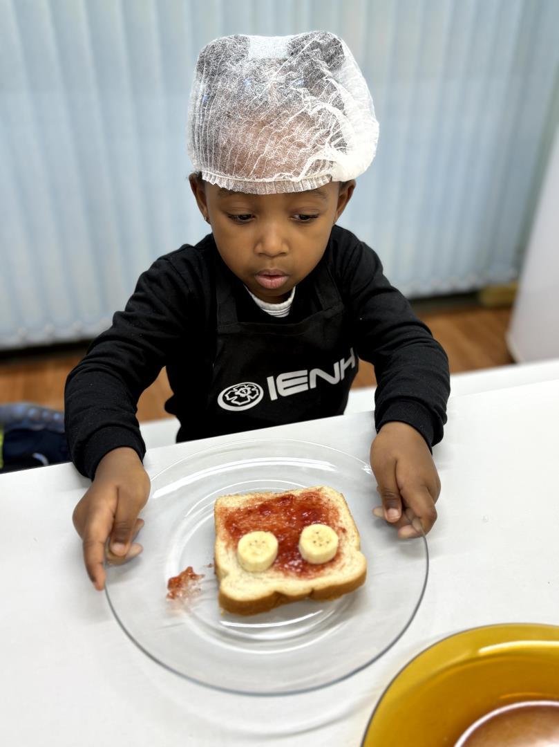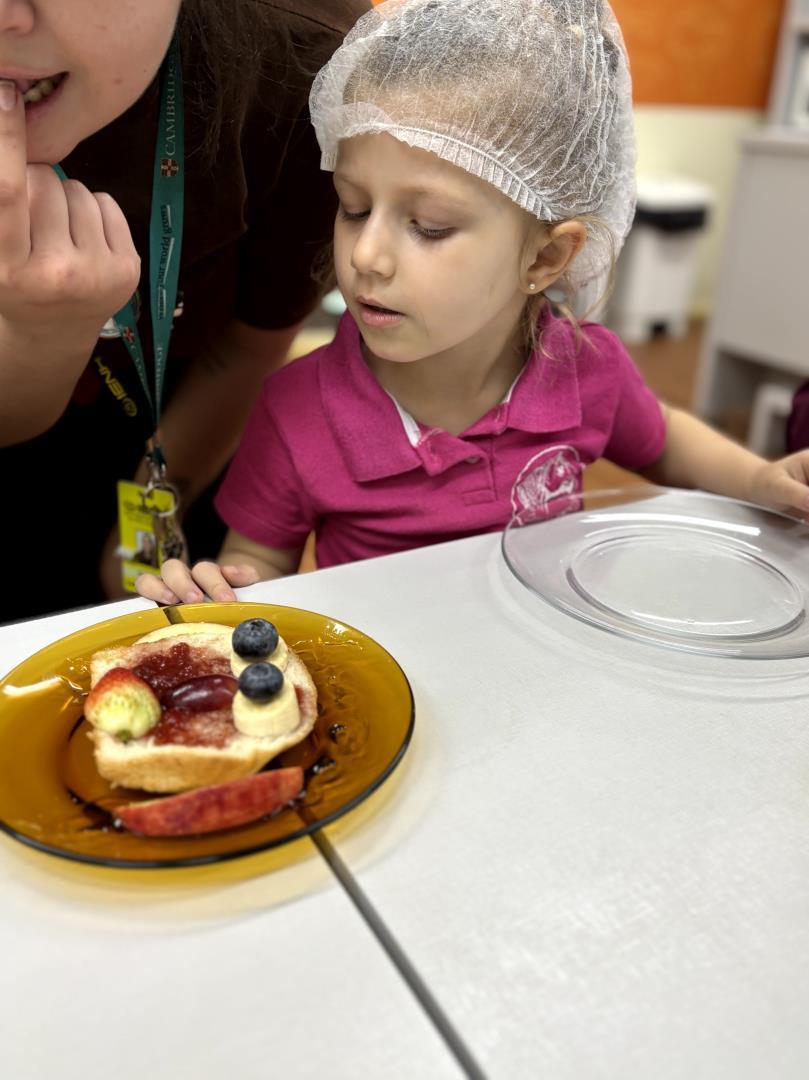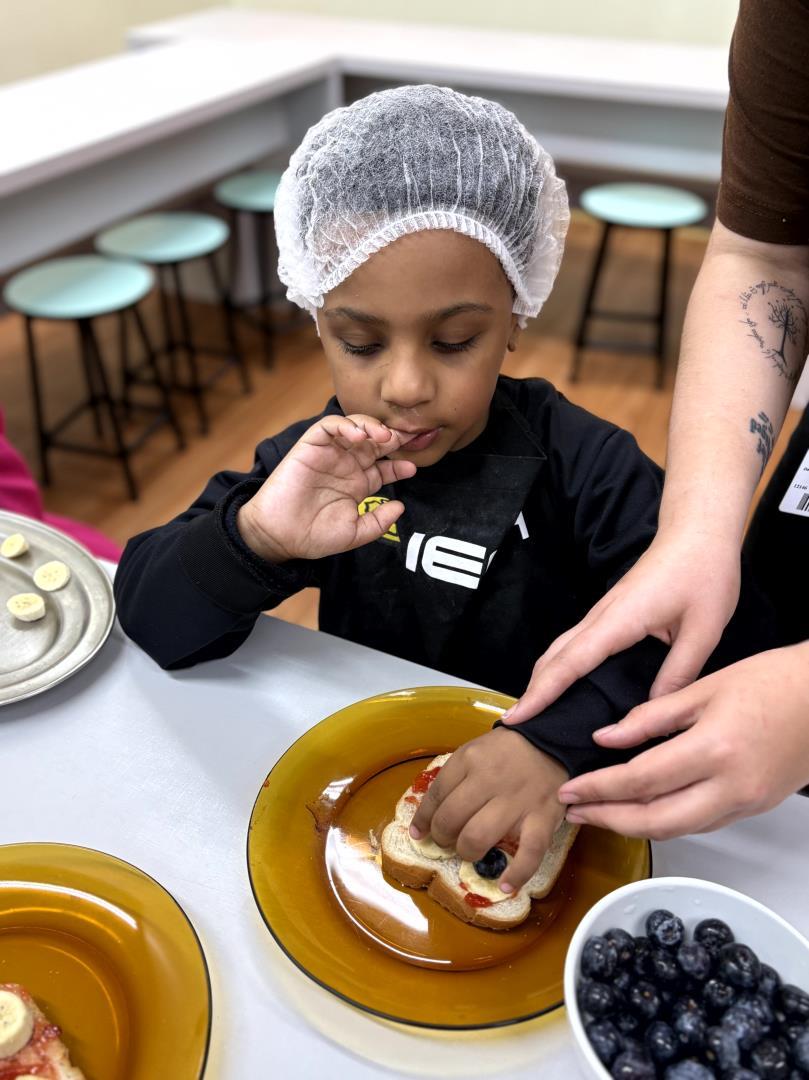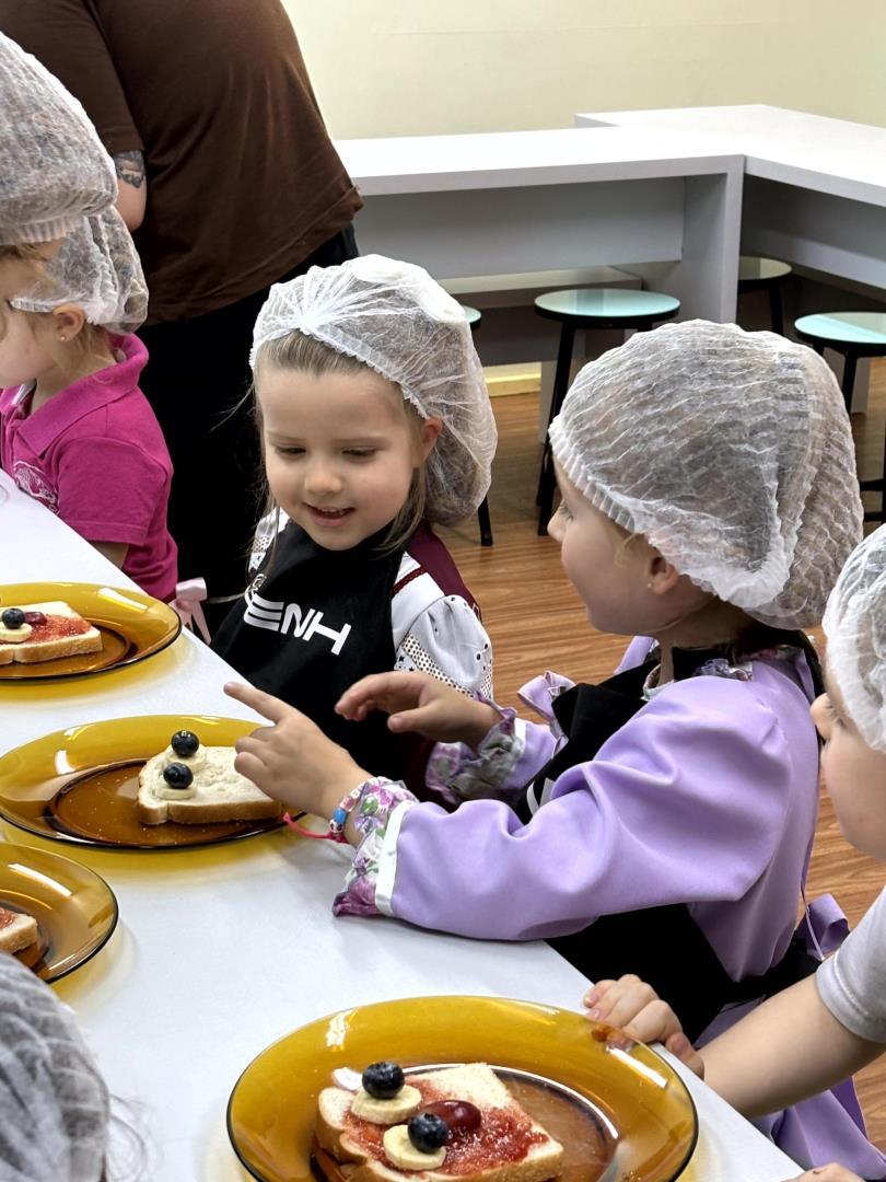 Durante a Cooking Class, realizada dia 15 de setembro, as crianças do Kindergarten 4C da Educação Infantil do Currículo Internacional Bilíngue da IENH - Unidade Pindorama participaram da proposta Funny Face Toasts – Exploring the Body Parts. A atividade teve como objetivo integrar o aprendizado do inglês ao cotidiano das crianças, por meio do contato com alimentos, da criatividade e da exploração do vocabulário relacionado às partes do corpo.