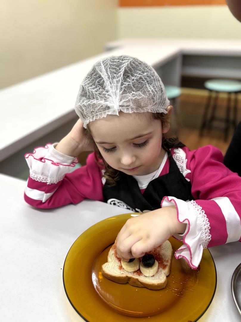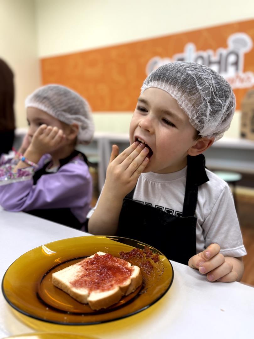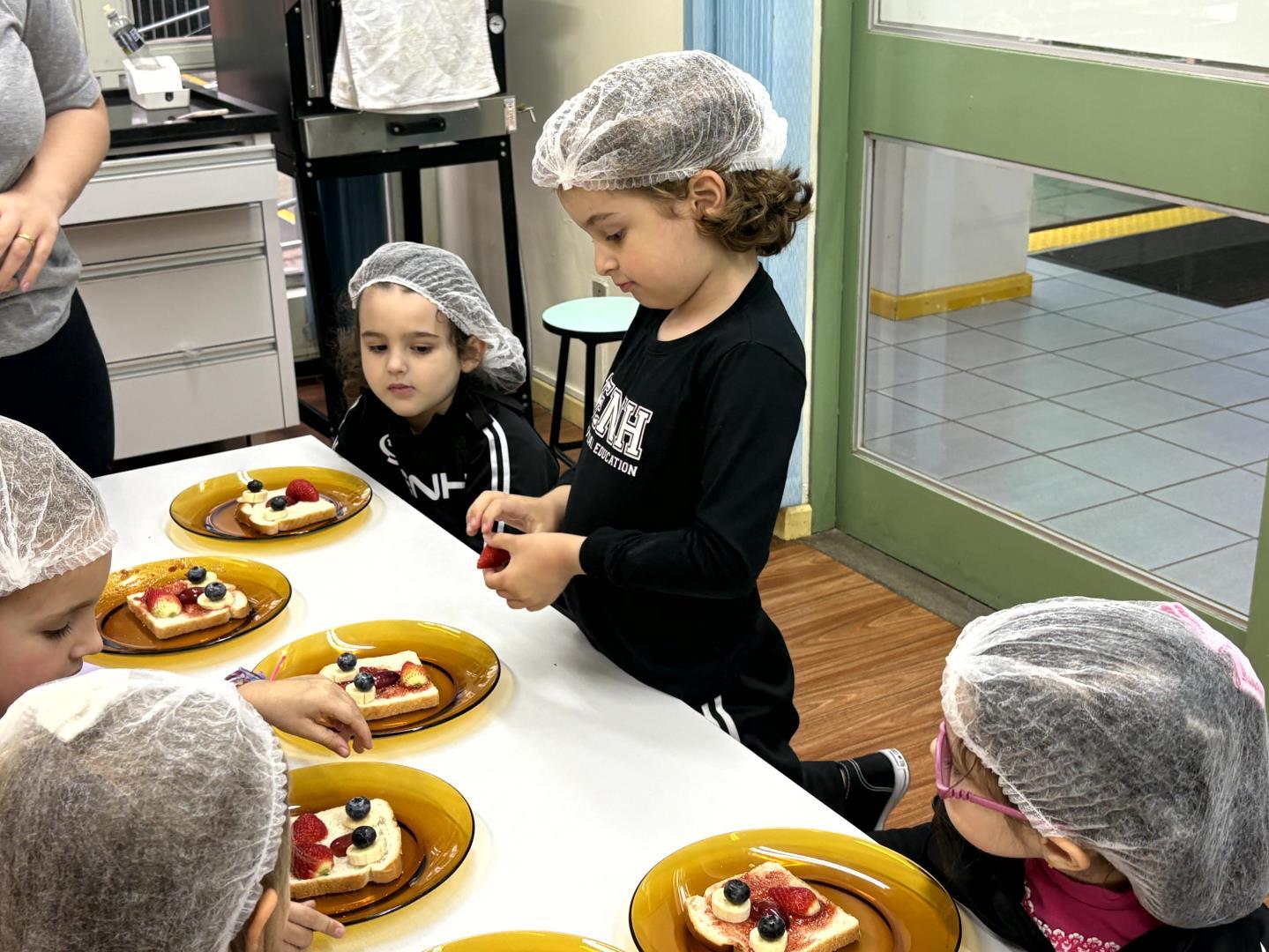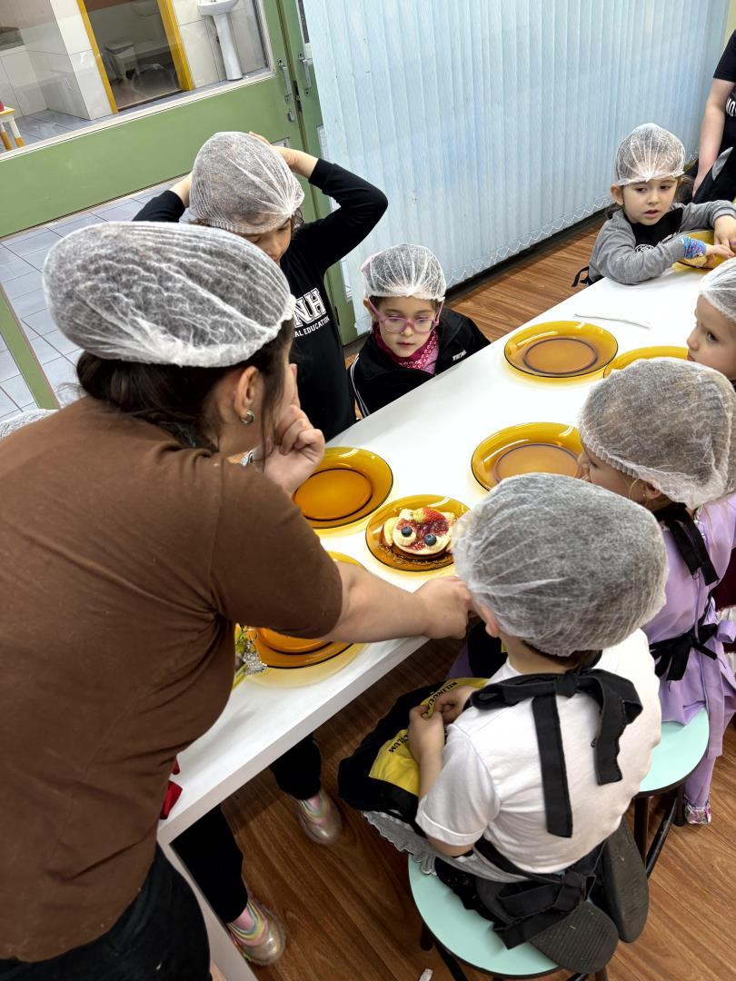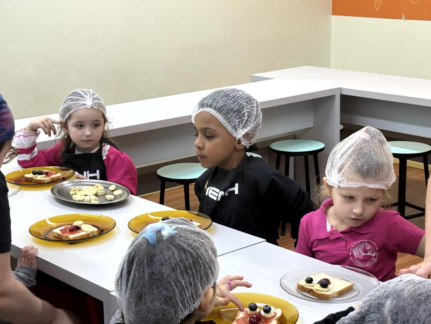 Durante a Cooking Class, realizada dia 15 de setembro, as crianças do Kindergarten 4C da Educação Infantil do Currículo Internacional Bilíngue da IENH - Unidade Pindorama participaram da proposta Funny Face Toasts – Exploring the Body Parts. A atividade teve como objetivo integrar o aprendizado do inglês ao cotidiano das crianças, por meio do contato com alimentos, da criatividade e da exploração do vocabulário relacionado às partes do corpo.