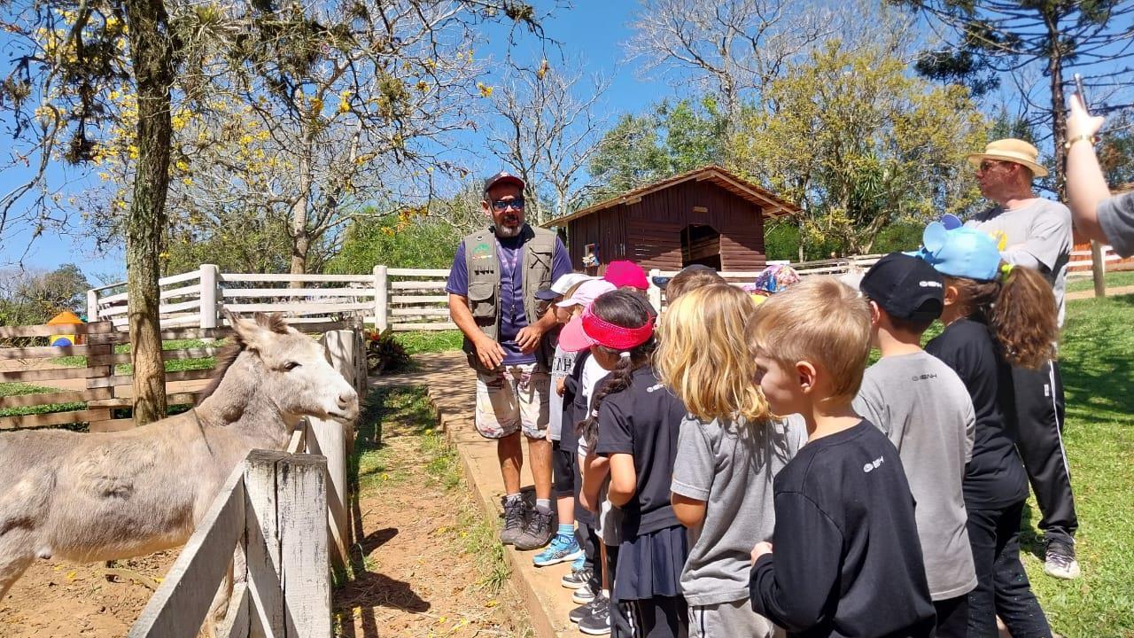 As turmas do Kindergarten 5 da Educação Infantil do Currículo Internacional Bilíngue da IENH - Unidade Oswaldo Cruz participaram, no dia 26 de setembro, de um passeio especial para a Quinta da Estância, em Viamão. A atividade, teve como objetivo proporcionar diversão, aprendizagem e muito conhecimento sobre o meio ambiente, através do contato direto com a natureza e com espécies da fauna e da flora, incentivando a reflexão sobre os cuidados e a preservação da vida.