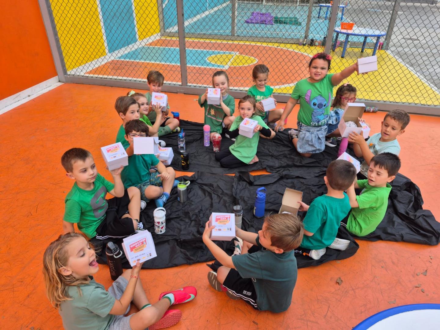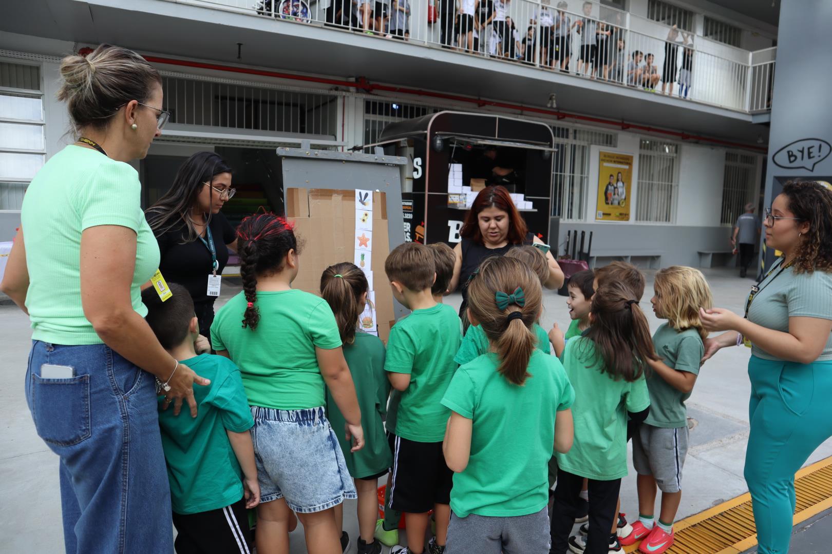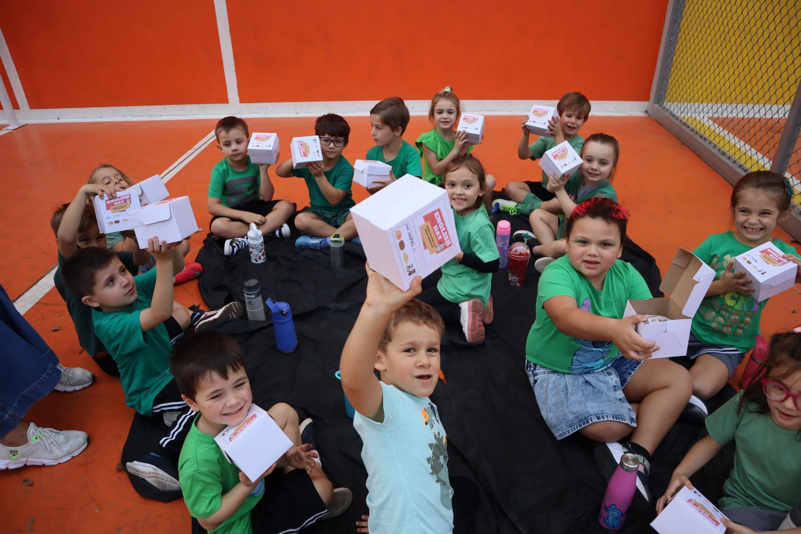 Após a programação de atividades, foi hora de recarregar as energias com um lanche especial: hambúrgueres preparados pelo food truck Buenas Burger. Em seguida, os pequenos tiveram um momento de brincadeira livre, aproveitando o espaço ao ar livre do parque.