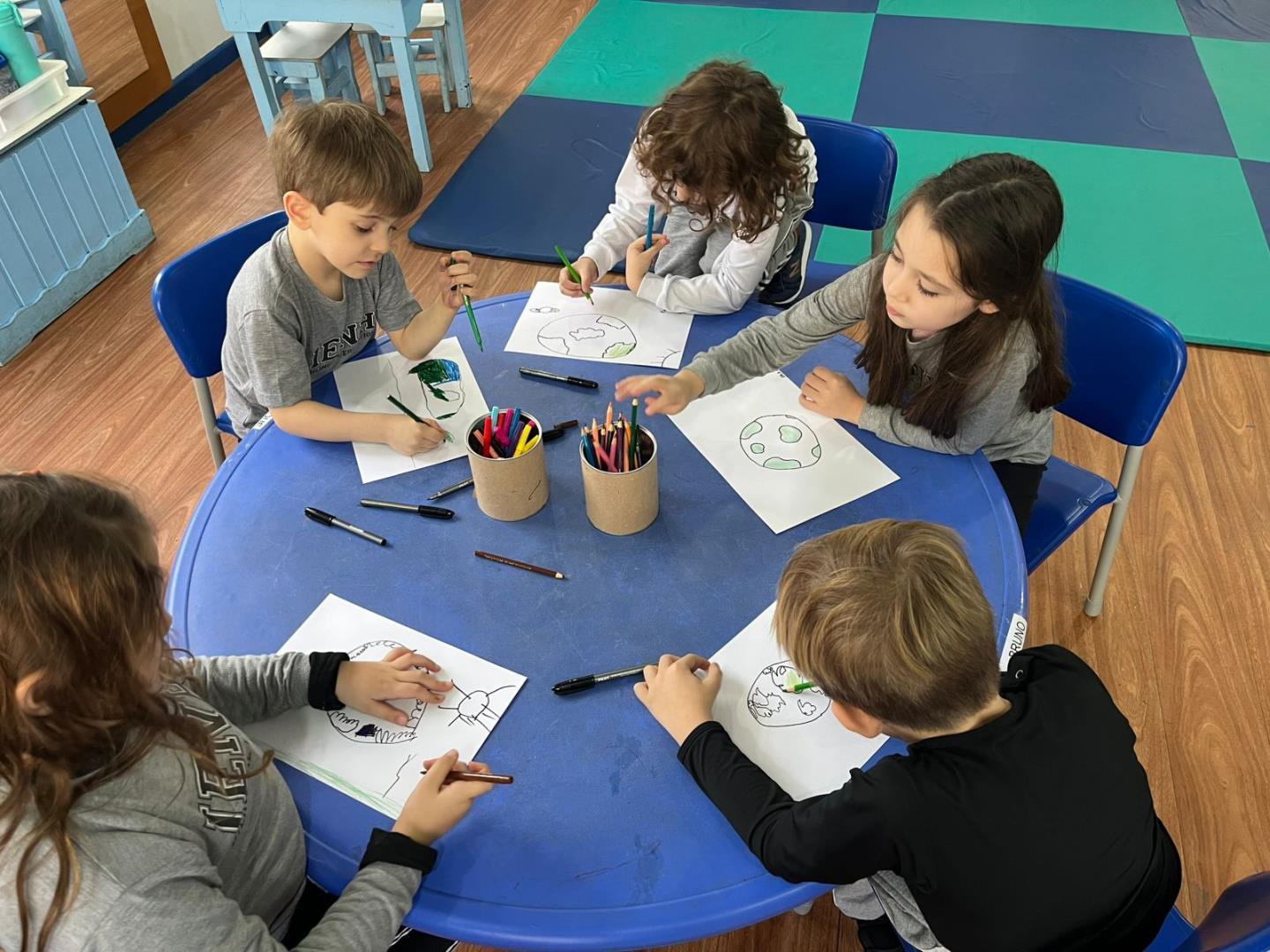 Além disso, as crianças realizaram desenhos de conscientização ambiental e compartilharam suas produções com os colegas, fortalecendo a compreensão de que cada um tem um papel fundamental na preservação do planeta Terra.