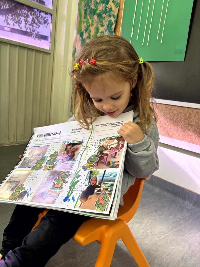 As crianças do Kindergarten 2A da Educação Infantil do Currículo Internacional Bilíngue da IENH – Unidade Oswaldo Cruz embarcaram em uma experiência repleta de imaginação, criatividade e vínculos afetivos. Com o objetivo de estimular a curiosidade, o gosto pela pesquisa e o envolvimento das famílias nas propostas trabalhadas em sala de aula, a turma, acompanhada pela professora Eduarda Fragoso e pela teacher Thami Riva, desenvolveu o projeto “Meu primeiro tema de casa!”.