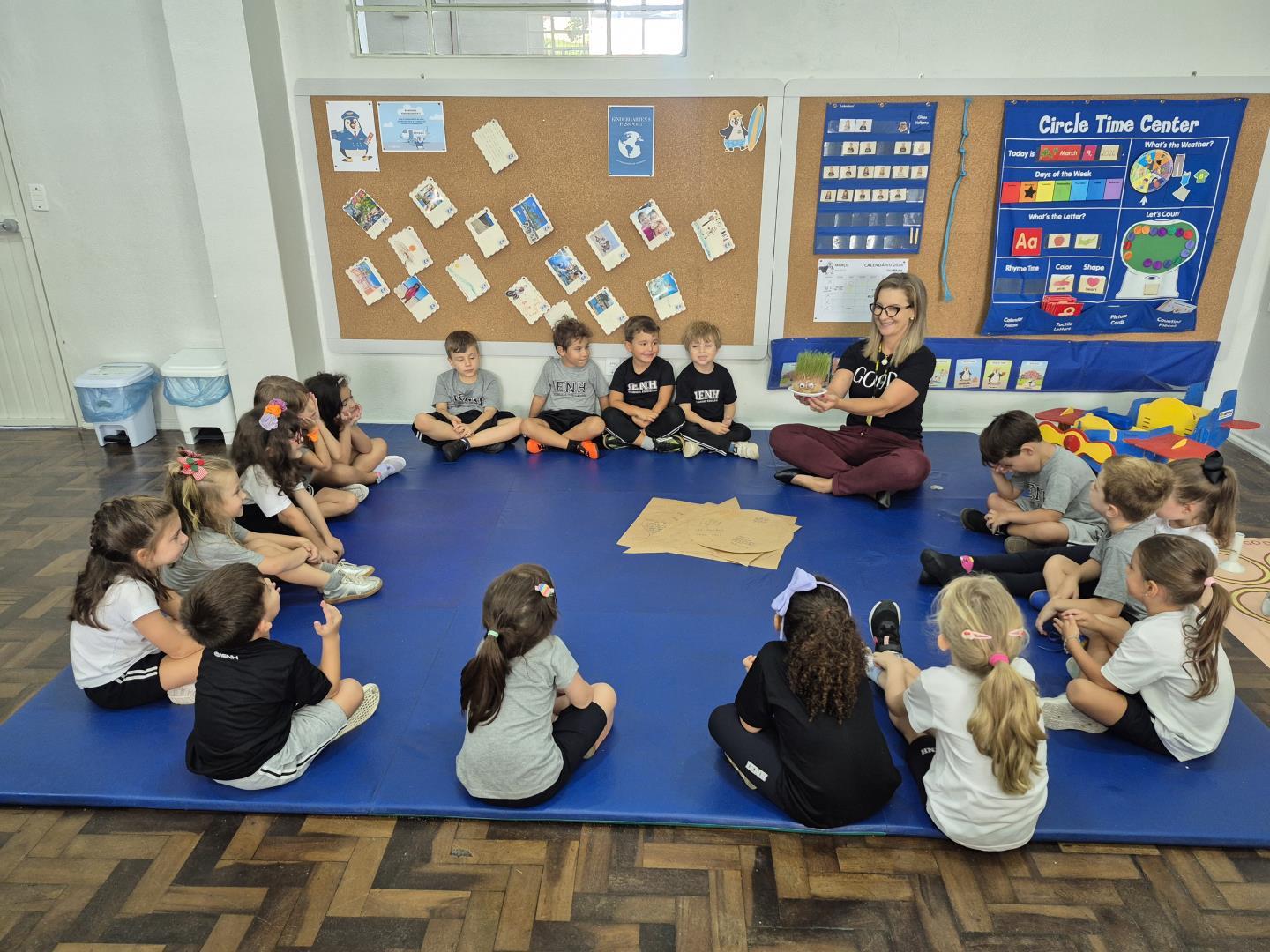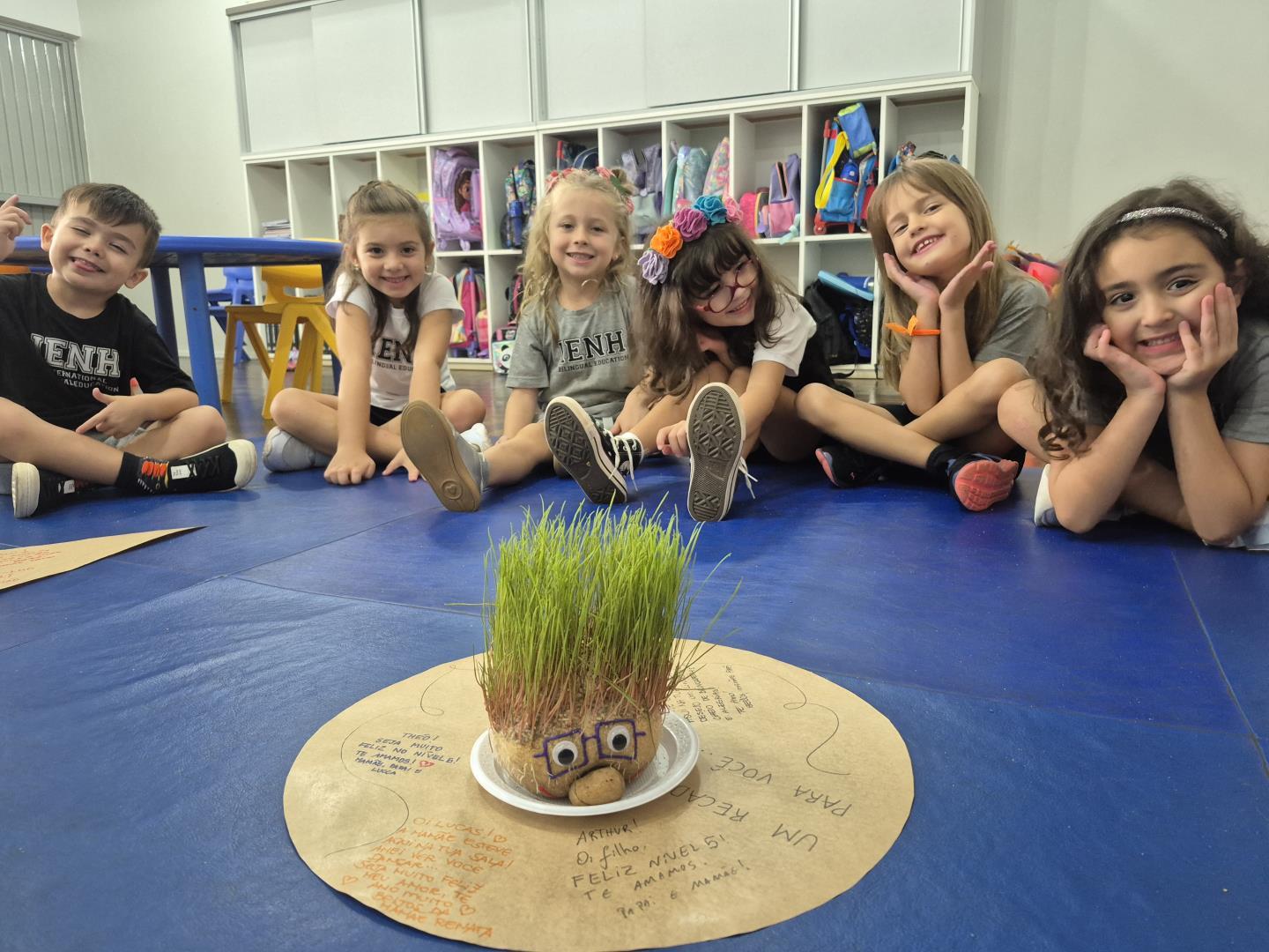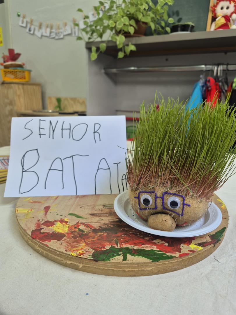 No Kindergarten 5A, o personagem recebeu o nome de Senhor Fofinho. Já no Kindergarten 5B, o mascote foi batizado de Senhor Batata. Durante a semana, as crianças acompanharam com entusiasmo os cuidados com o boneco e puderam observar uma transformação especial: o crescimento de seus “cabelos” de alpiste.