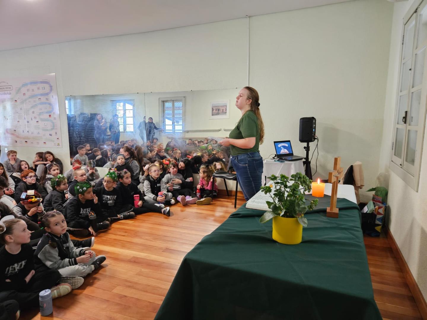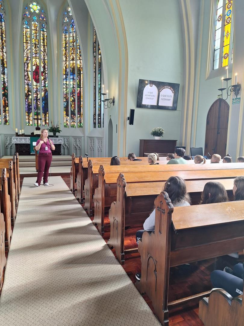 O encontro foi realizado em diferentes espaços: os estudantes da IENH - Unidade Pindorama se reuniram na Igreja Três Reis Magos e na sala Multiuso, os da Unidade Oswaldo Cruz, na Igreja da Ascensão e na sala interativa, e os estudantes da Unidade Fundação Evangélica, na sala de Conferências. Cada espaço foi cuidadosamente preparado para acolher os grupos em um ambiente de espiritualidade, escuta e reflexão.