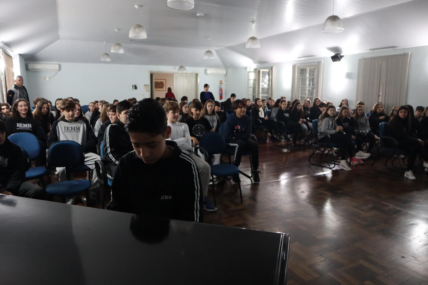 O encontro foi finalizado com a bênção cantada “Deus te abençoe, Deus te proteja, Deus te dê a paz”, encerrando o momento com alegria, comunhão e gratidão. A meditação reafirmou os valores cristãos luteranos que permeiam o cotidiano da IENH, fortalecendo os laços de amizade e fé entre os estudantes.