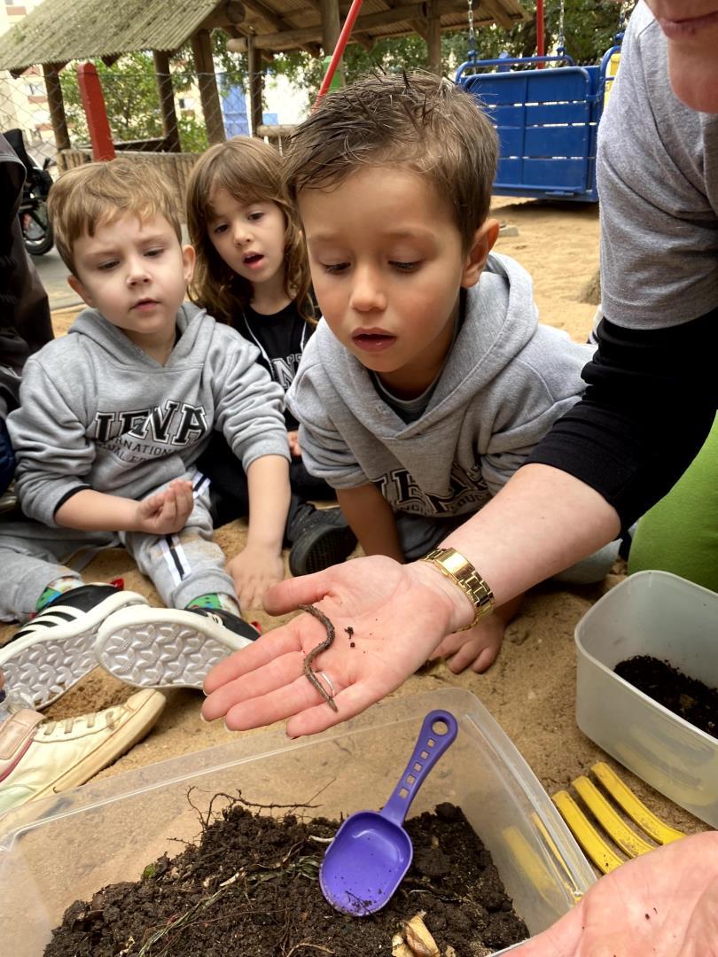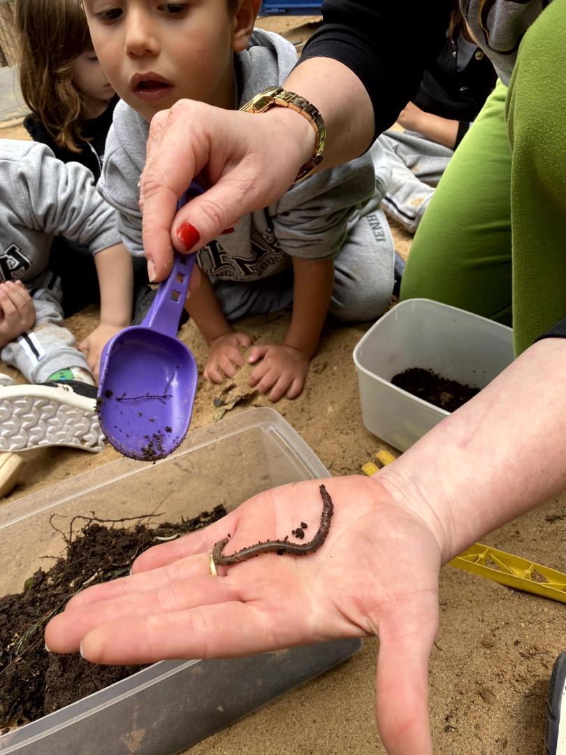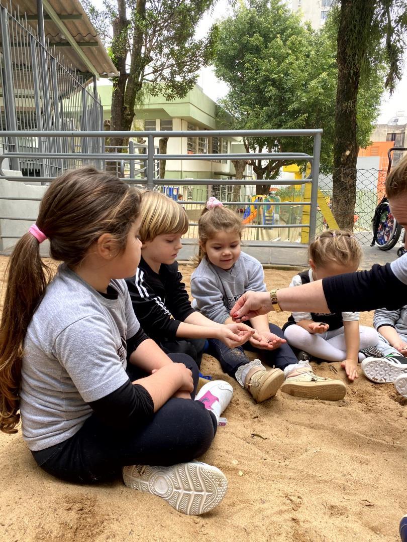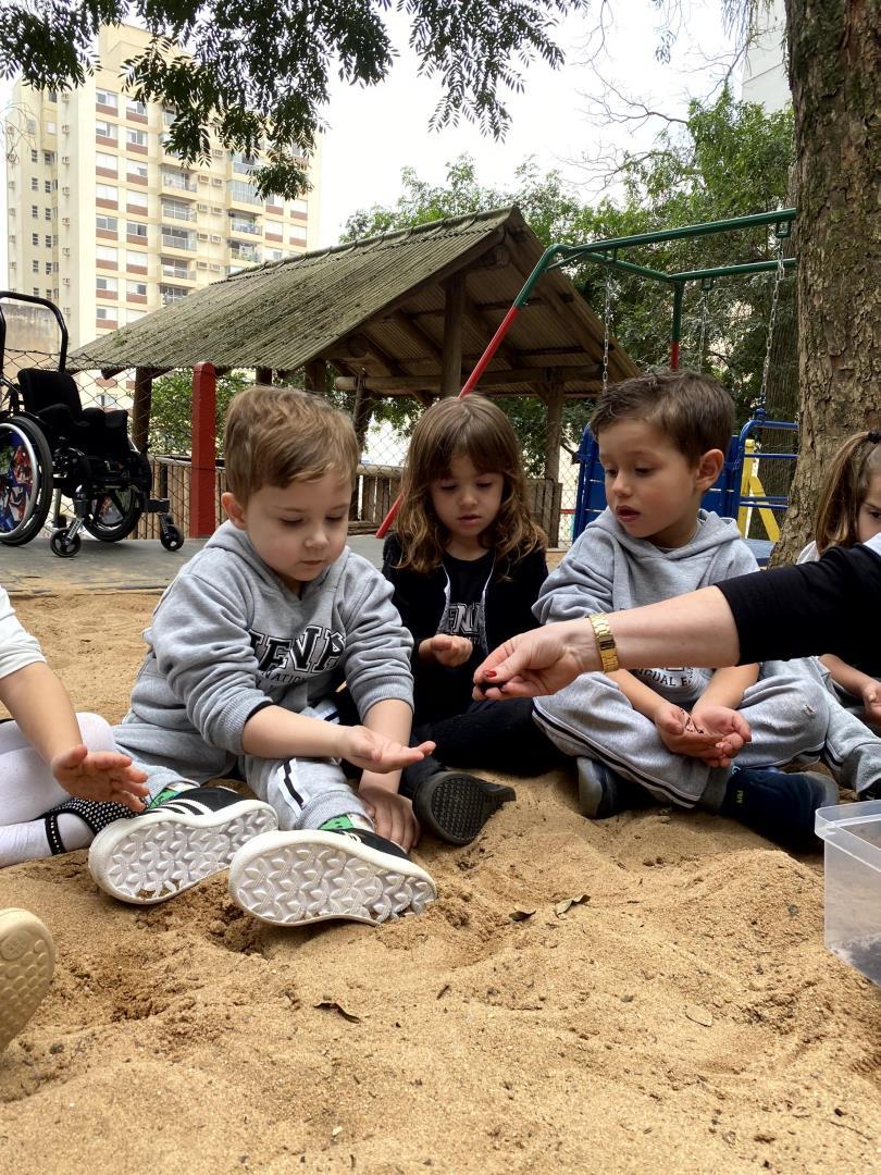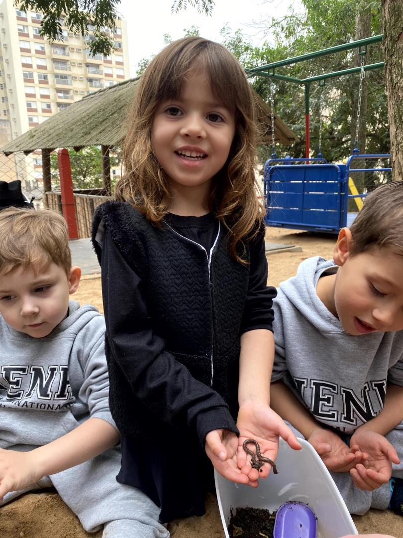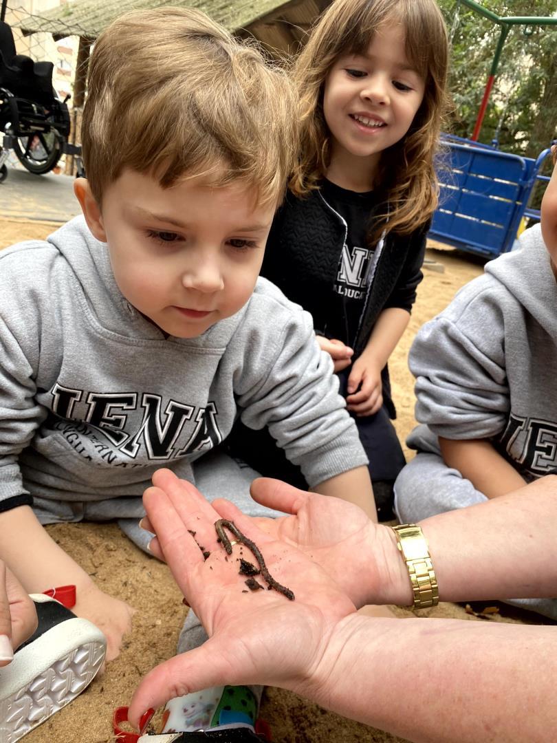 Durante três dias, o minhocário permaneceu na turma e se transformou em um verdadeiro espaço de investigação. As crianças observaram como as minhocas se movimentam, como vivem embaixo da terra e como ajudam a transformar restos de alimentos em um solo mais fértil. Para tornar a experiência prática, utilizaram os restinhos do lanche, aprendendo que aquilo que sobra pode se transformar e ganhar uma nova função.