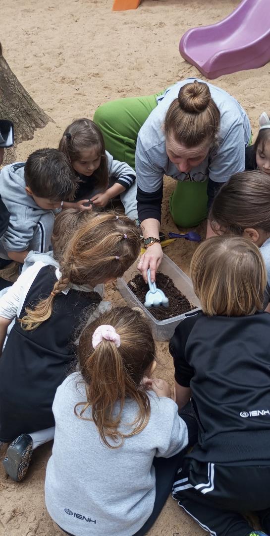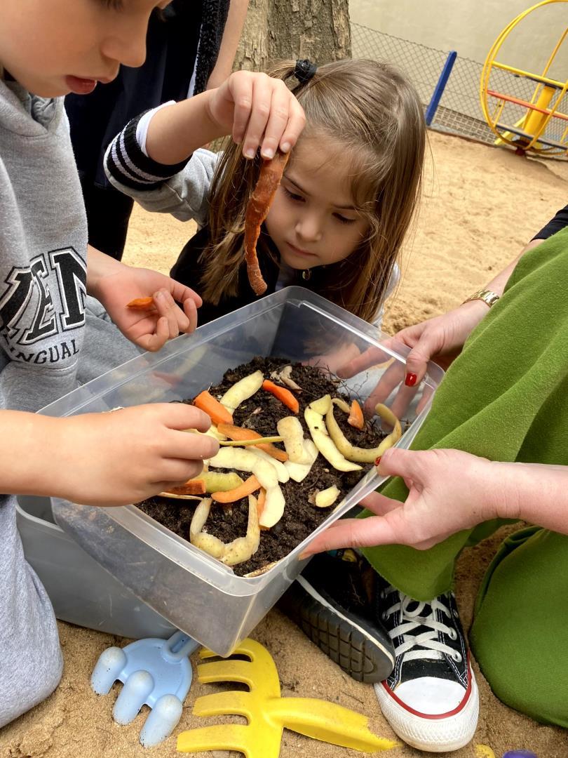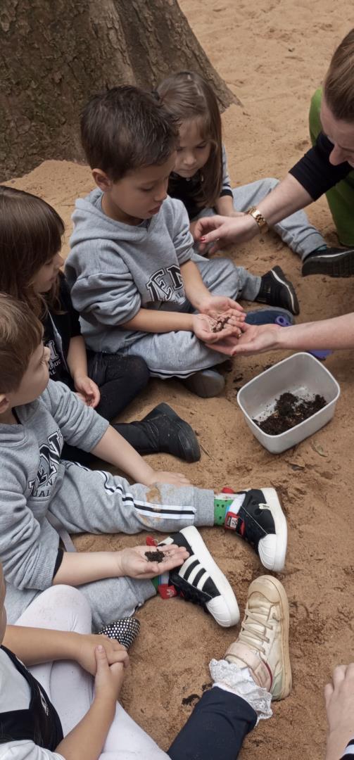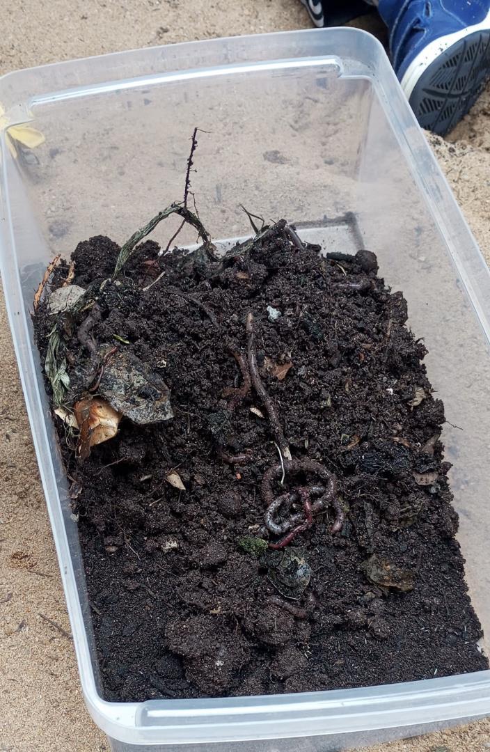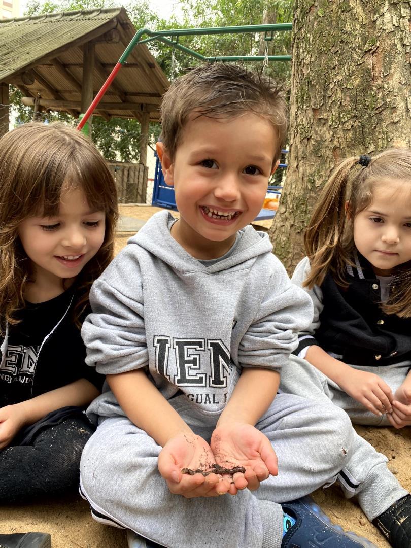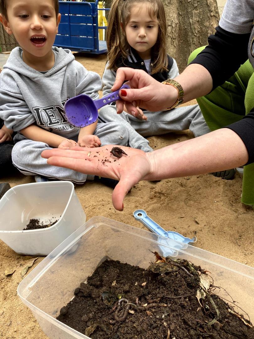 Durante três dias, o minhocário permaneceu na turma e se transformou em um verdadeiro espaço de investigação. As crianças observaram como as minhocas se movimentam, como vivem embaixo da terra e como ajudam a transformar restos de alimentos em um solo mais fértil. Para tornar a experiência prática, utilizaram os restinhos do lanche, aprendendo que aquilo que sobra pode se transformar e ganhar uma nova função.