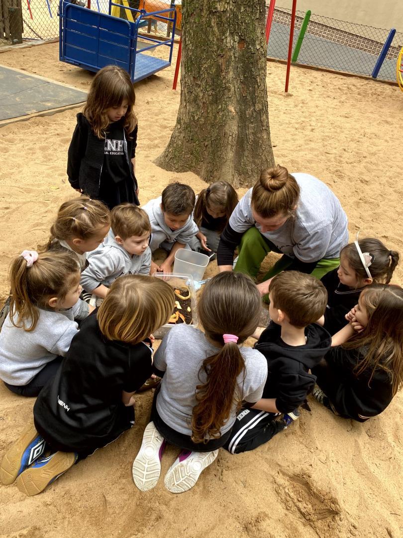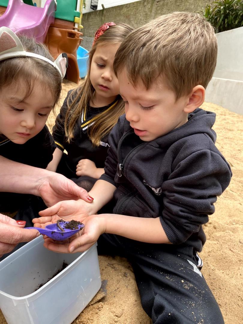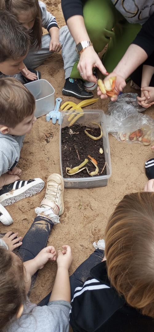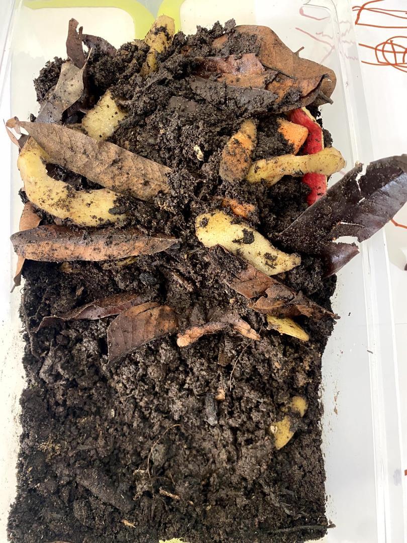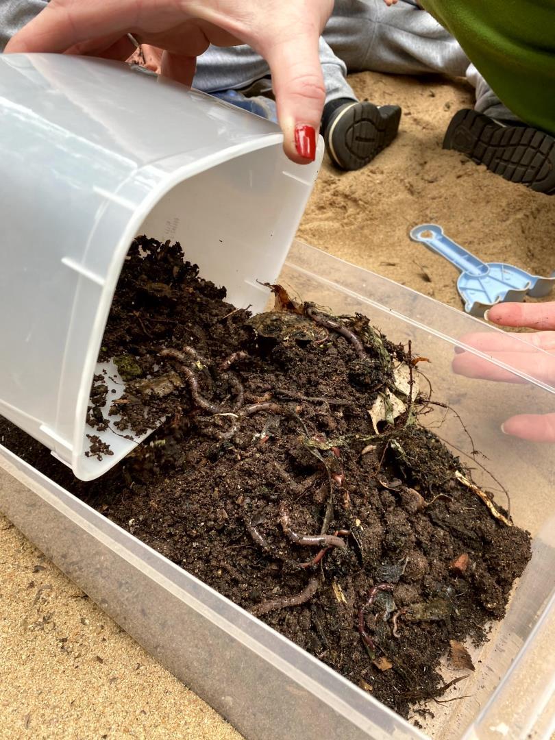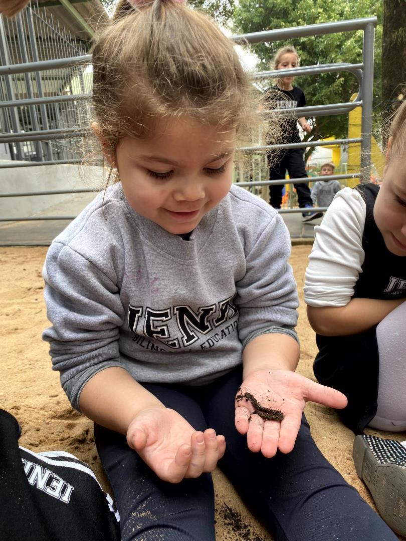 Durante três dias, o minhocário permaneceu na turma e se transformou em um verdadeiro espaço de investigação. As crianças observaram como as minhocas se movimentam, como vivem embaixo da terra e como ajudam a transformar restos de alimentos em um solo mais fértil. Para tornar a experiência prática, utilizaram os restinhos do lanche, aprendendo que aquilo que sobra pode se transformar e ganhar uma nova função.