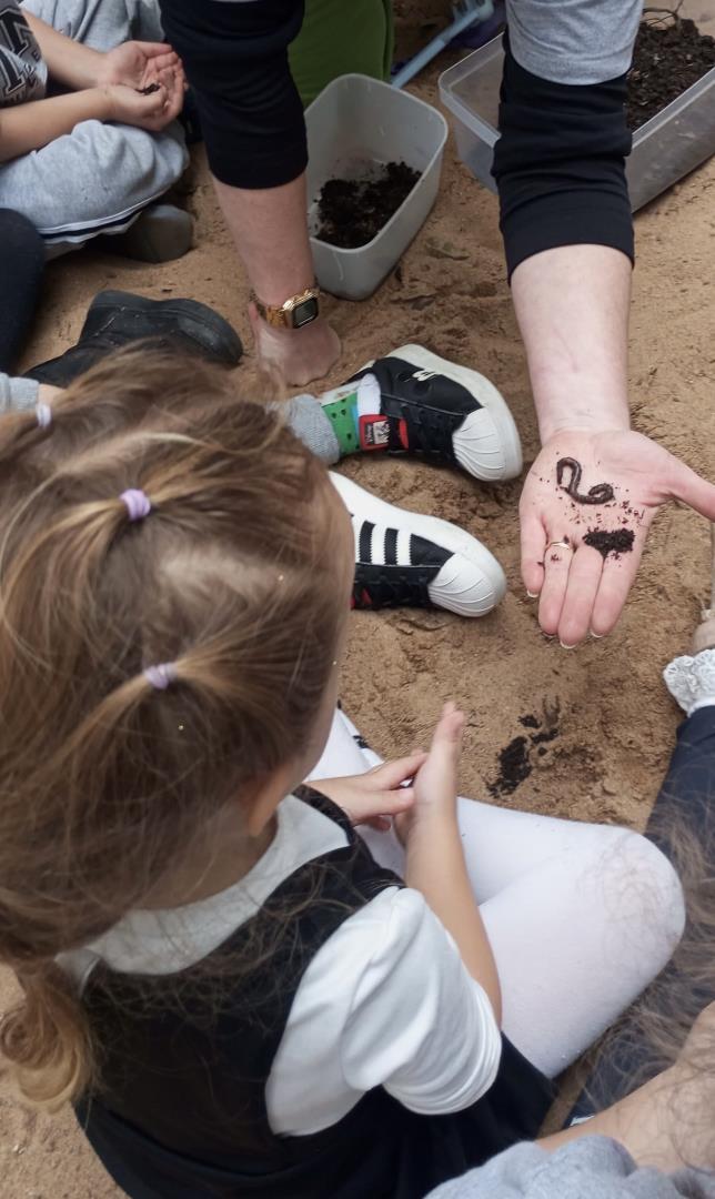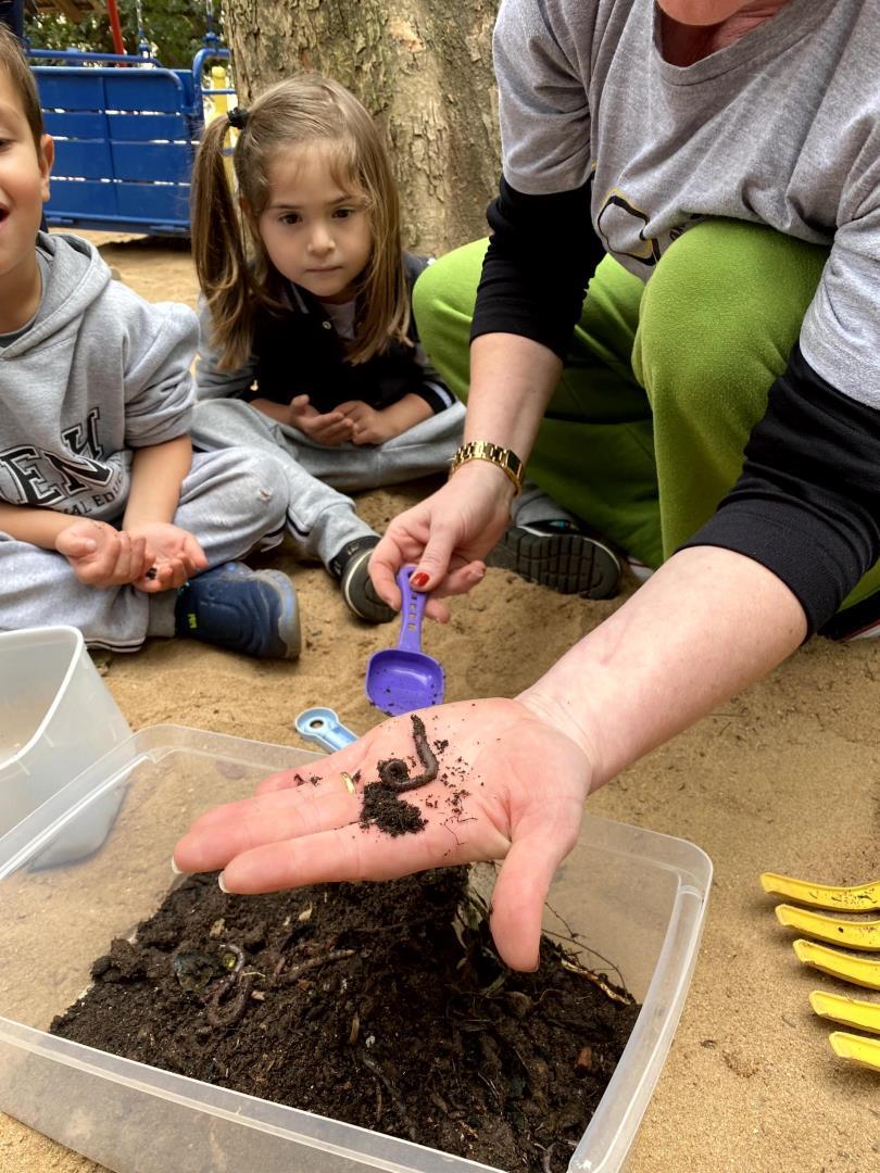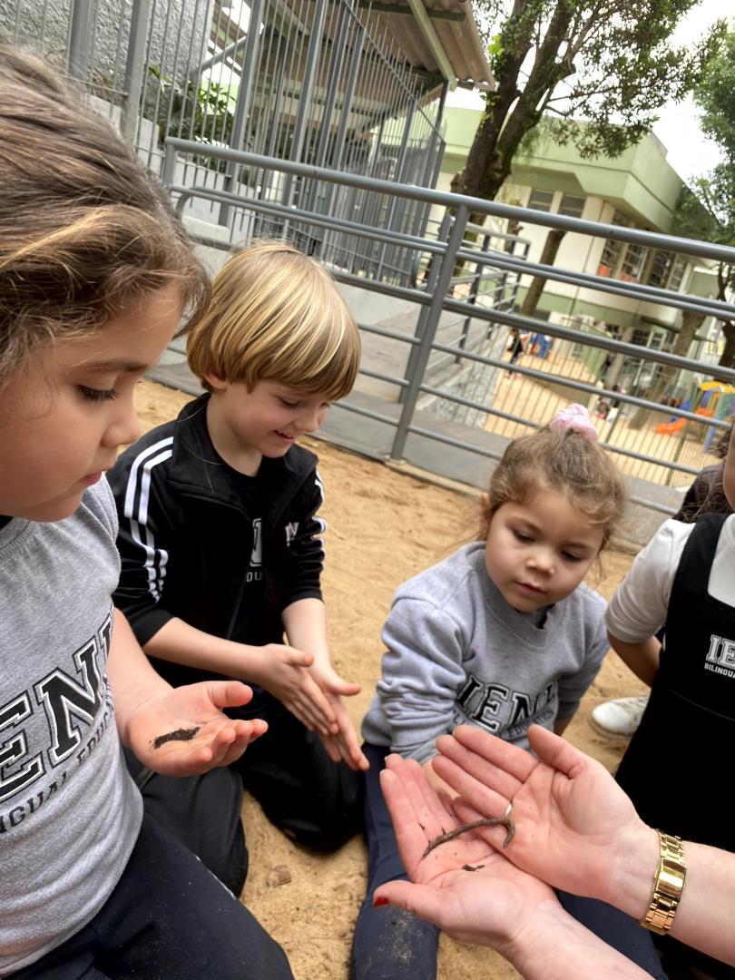 Além disso, descobriram que as minhocas são animais invertebrados, não possuem dentes e, quando colocadas na mão, causam apenas uma cosquinha divertida, uma experiência que encantou os pequenos.