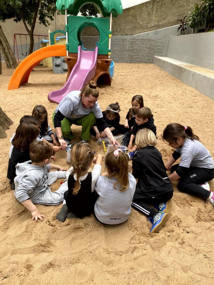 As crianças do Kindergarten 3A da Educação Infantil do Currículo Internacional Bilíngue da IENH - Unidade Oswaldo Cruz viveram uma experiência única entre os dias 18 e 21 de agosto: a construção de um minhocário. A proposta teve como objetivo despertar a curiosidade, incentivar o cuidado com os animais, mesmo os pequenos e muitas vezes “escondidos” da terra e compreender a importância das minhocas na produção do húmus, fundamental para o crescimento das plantas.