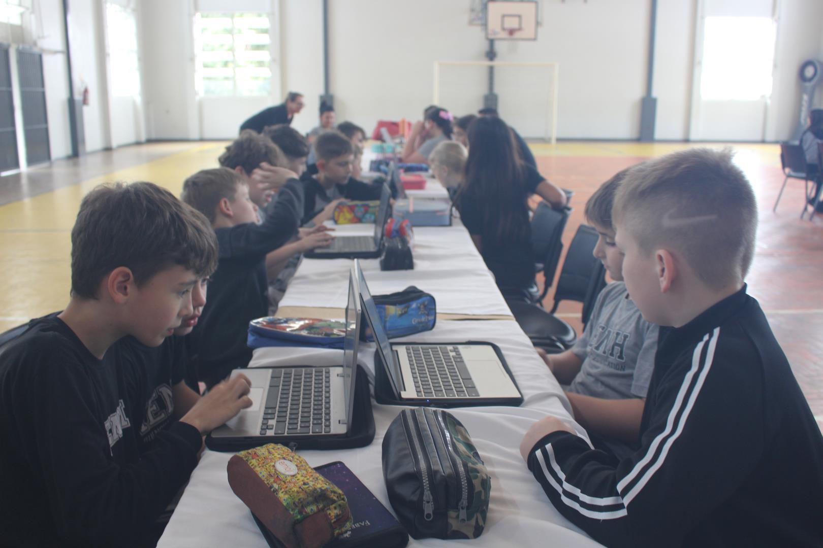 Em seguida, os estudantes foram desafiados a jogar o Gridlock Buster, um game, todo em língua inglesa, que simula a organização do fluxo de veículos e pedestres, incentivando a reflexão sobre o impacto da tecnologia no trânsito.