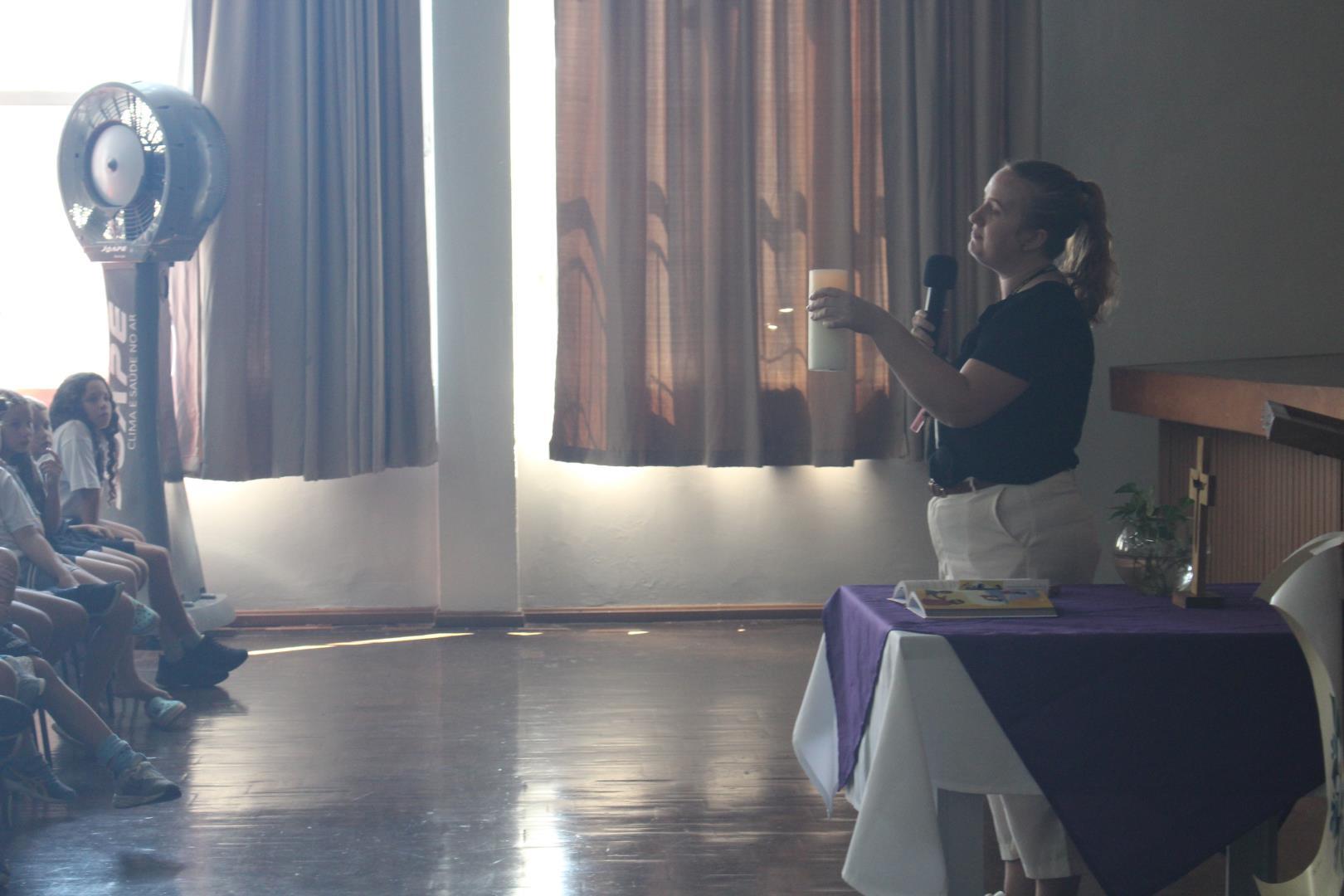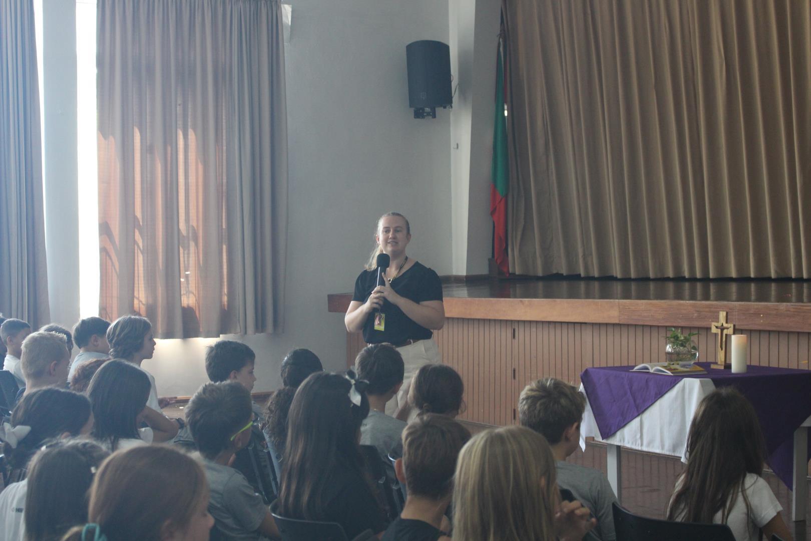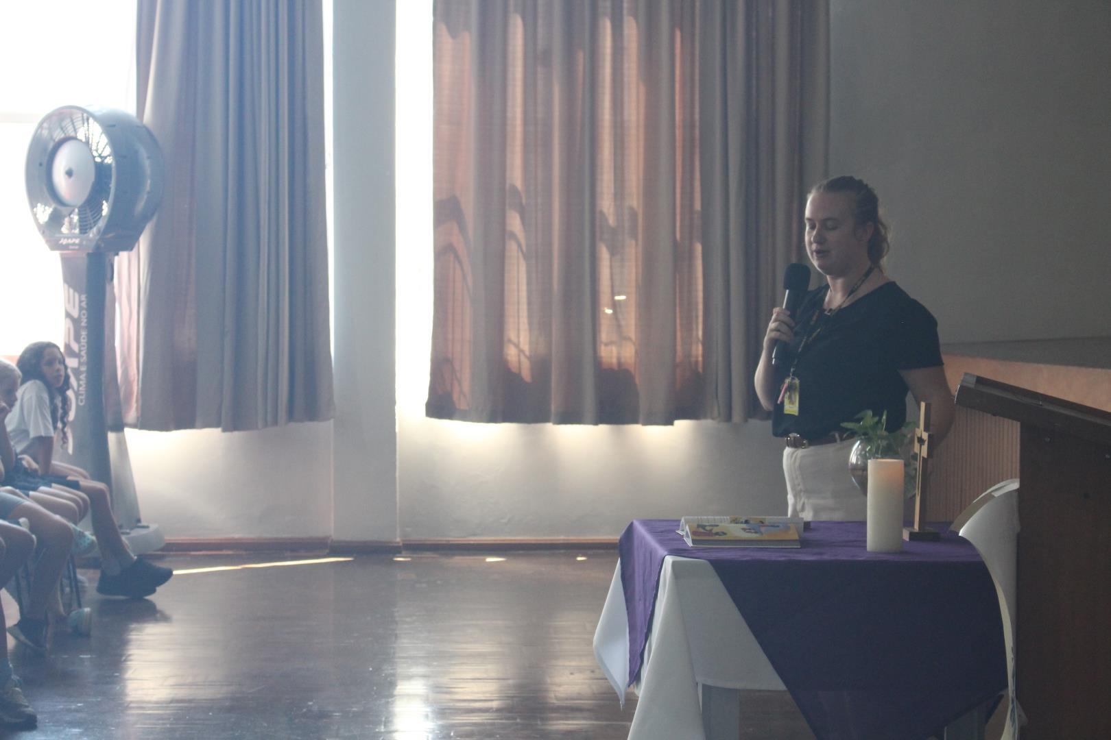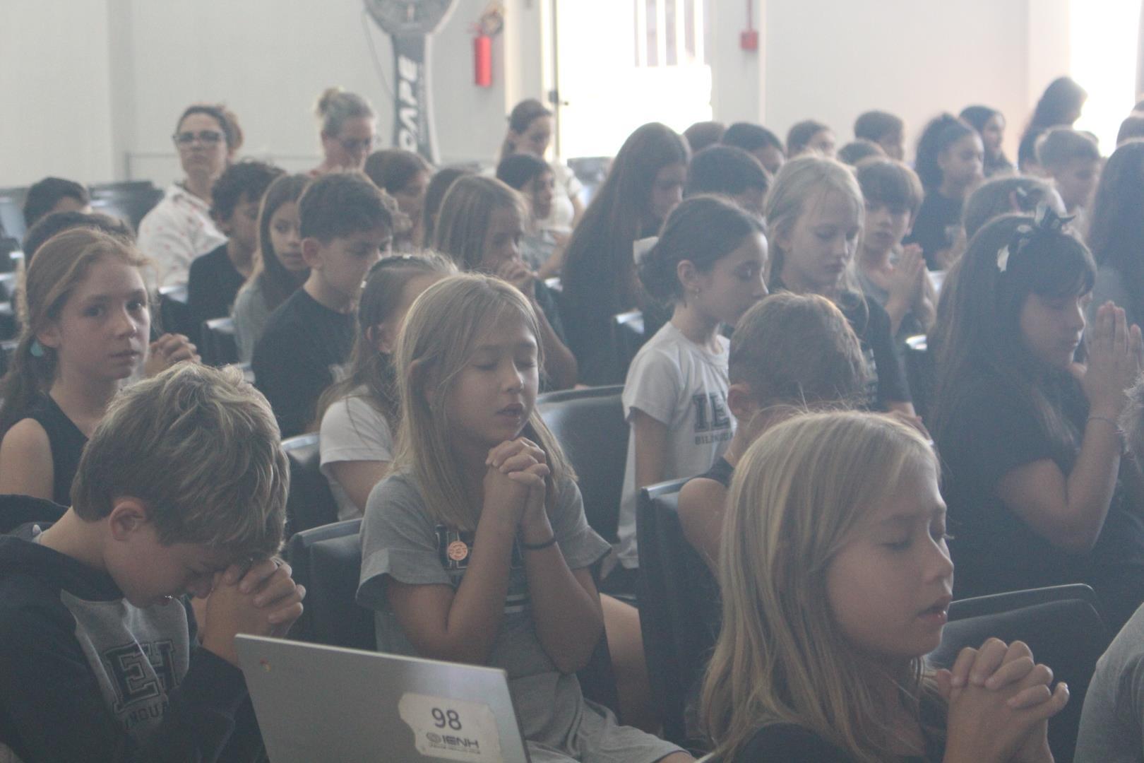 No dia 02 de março, o salão da Unidade Oswaldo Cruz foi espaço de encontro, acolhida e reflexão para os estudantes das turmas do Kindergarten 4 ao Year 5. O momento foi conduzido pela Pastoral Escolar, representada pela pastora Raquel Marques, marcando o início do ano letivo com uma proposta significativa e inspiradora.