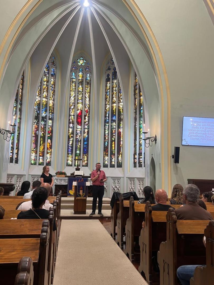 A programação teve início com a acolhida do pastor Matheus Tasso da Igreja da Ascensão, que compartilhou palavras de esperança e renovação. Na sequência, a Pastoral Escolar, representada pela pastora Raquel Marques, conduziu o momento celebrativo, reforçando o verdadeiro sentido do Natal. A professora Michele Andrioli, da área da Música, acompanhou as canções com sensibilidade, criando um clima de harmonia que envolveu todos os presentes.