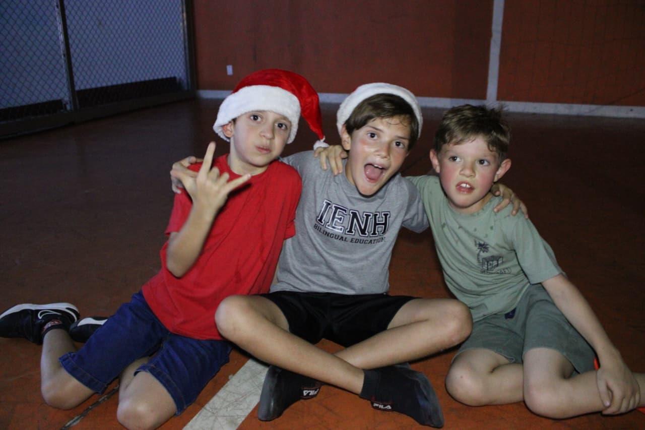 Na chegada à escola, a magia tomou conta do ambiente com a presença do Papai Noel, que tirou fotos, distribuiu abraços e encantou as crianças. Em um ato de solidariedade, também foram entregues os presentes destinados às entidades assistidas pela IENH.