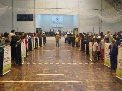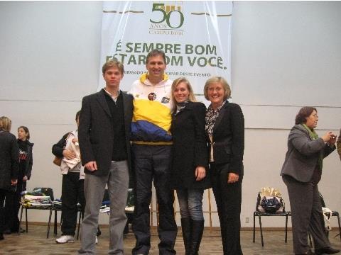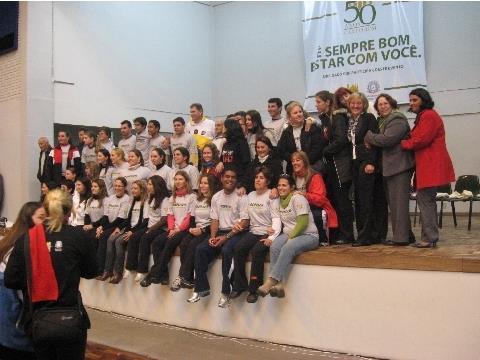 Durante a abertura da XXV Olimpíada Estudantil de Campo Bom, a professora da Instituição, que já foi supervisora e responsável pela área de Educação Física do Município, recebeu o reconhecimento por suas ações em prol do esporte na cidade.