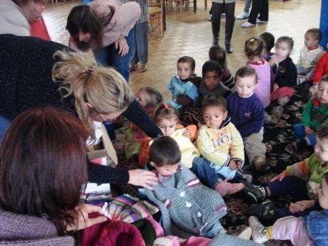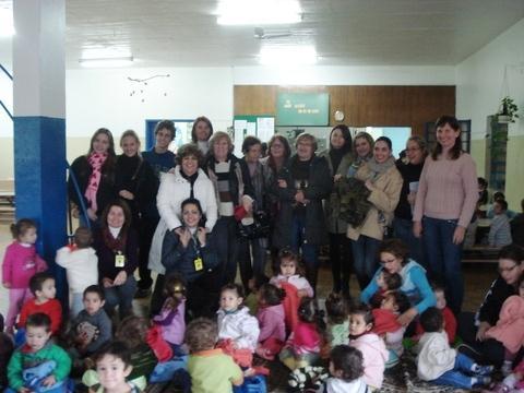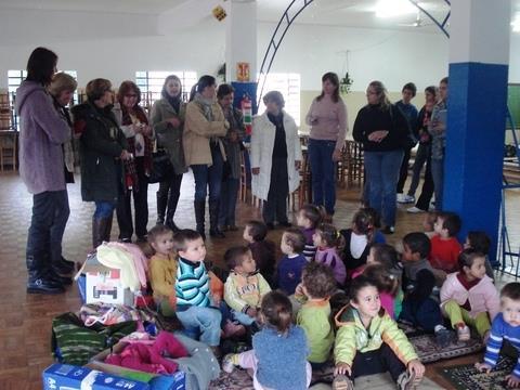 Com o propósito de aquecer a vida das crianças de berçário a 06 anos da Associação Beneficente Evangélica da Floresta Imperial – ABEFI, no dia 18 de maio, o Grupo entregou 97 peças de roupas confeccionadas em tricô para as crianças, com a presença das professoras e da senhora Mara Klein, Diretora da Associação.