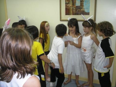 No dia 1º de abril, os alunos participaram da festa “Entre chocolates e cenouras”, onde foram em busca de seus ninhos, seguindo as pistas deixadas pelo coelho. Em seguida registraram, em duplas, os mapas do caminho percorrido para encontrar os chocolates deixados pelo coelho.