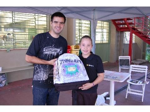 Dos 80 participantes, os mais criativos na hora de criar uma estampa para mochila foram Luiza Alves da 6ª série A e Homar Taha da 2ª série B.