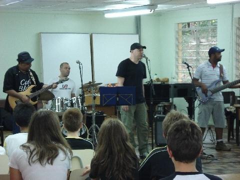Com o objetivo de oportunizar a experiência de tocar e cantar com uma banda real, os alunos puderam se aproximar de uma realidade musical diferente da que conheciam.