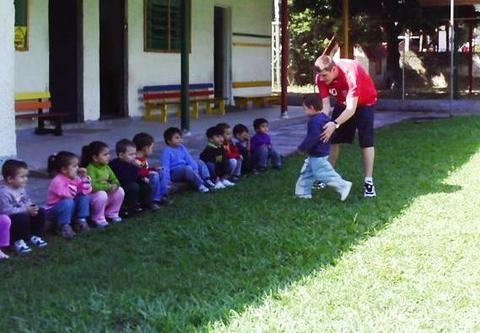 O professor de Educação Física – Gustavo Paraboni Cerveira realiza semanalmente atividades de psicomotricidade com as crianças, com propostas que auxiliam no desenvolvimento de diferentes habilidades. É um momento muito esperado, pois os participantes “curtem” as brincadeiras com entusiasmo. Segundo a professora do Berçário, Saionara Kostrychi, “para as crianças é muito importante a presença do professor, porque aos poucos vão explorando diferentes movimentos... além de elas adorarem o professor!” Gustavo também faz, junto com a nutricionista da Escola, o acompanhamento nutricional das crianças.
